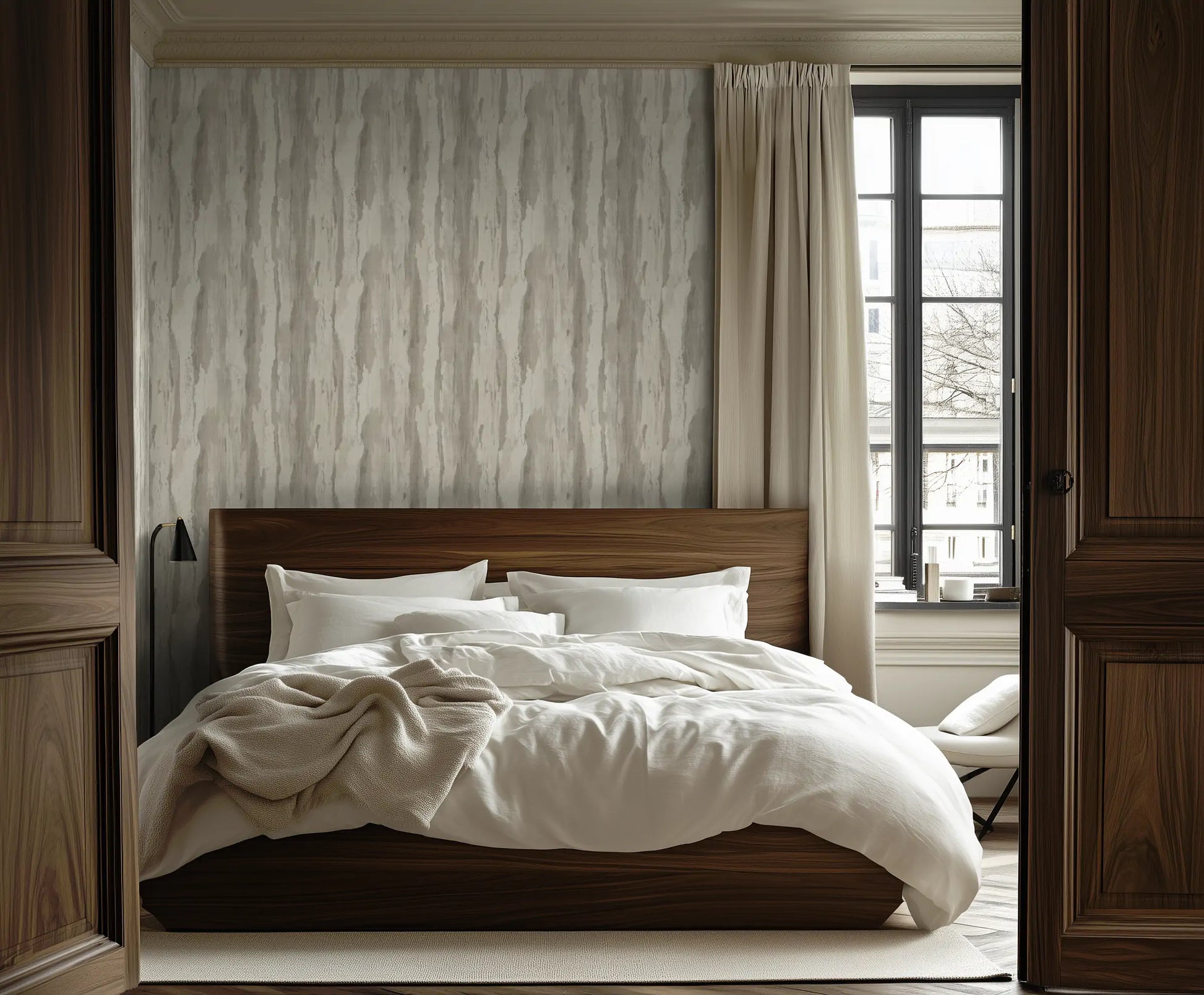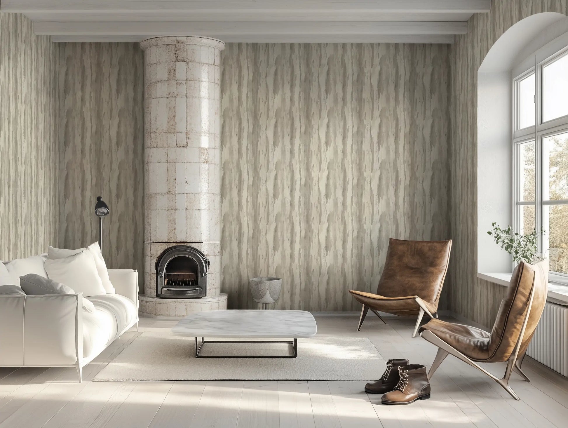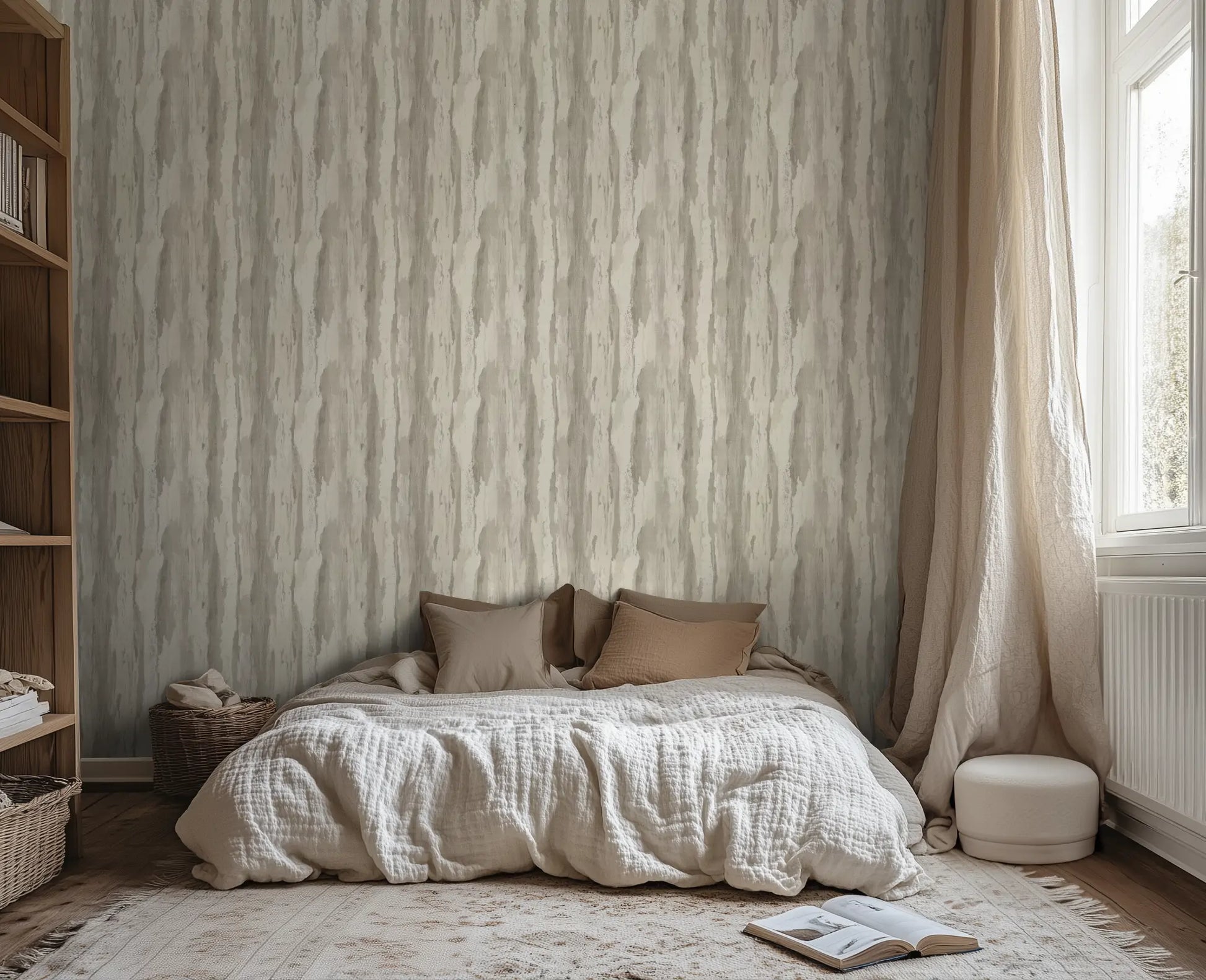 There’s a serenity in stone—Whispering Ridge reflects the subtle, wind-worn beauty of soft limestone cliffs. Delicate greys and muted whites form vertical striations, evoking the gentle erosion of time on towering ridges. This wallpaper is perfect for calm, contemporary interiors that seek texture without overpowering the space.