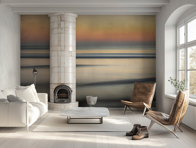 The last light of the day pools across the water in shades of sand, smoke, and slate. Low Dusk is a slow fade—where time softens and the world grows quiet. This ambient dusk ocean wallpaper wraps your walls in a palette of warmth and ease.
