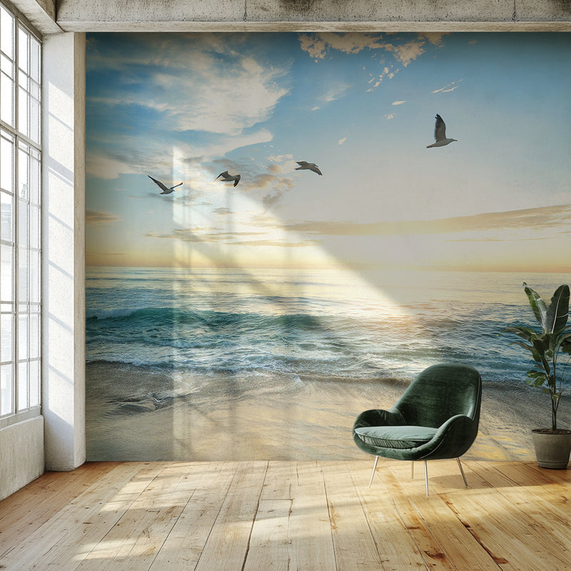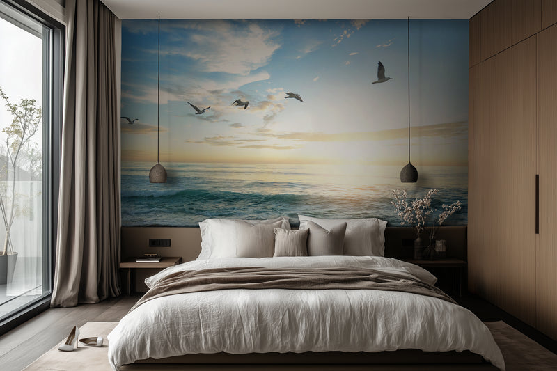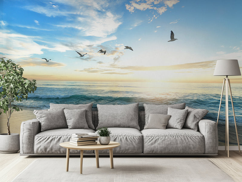How it fits into current design trends: Ocean photography and sky-focused beach wall murals are key in modern coastal interiors. Seabirds blends motion with calm for an effortlessly serene aesthetic.