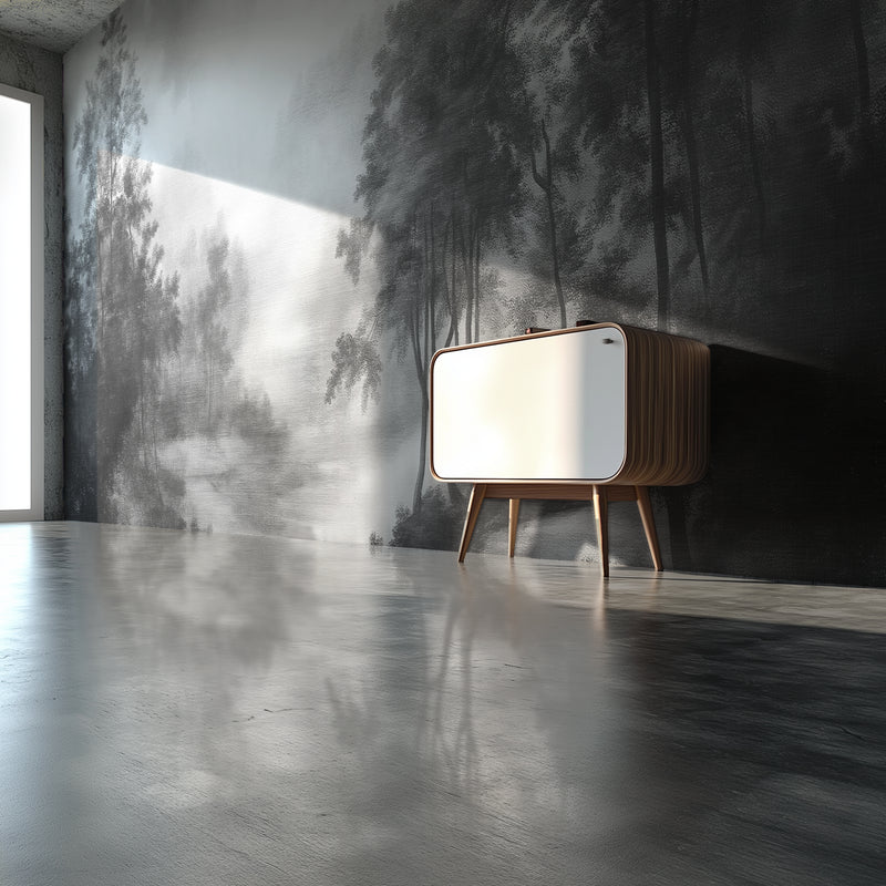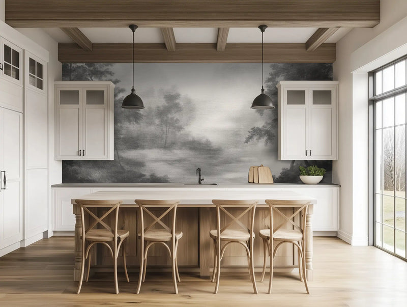 Why it’s great: The deep black-and-white tones amplify a space’s character, offering both vintage charm and modern edge. Its soft shading mimics film photography, making walls feel like an art installation.