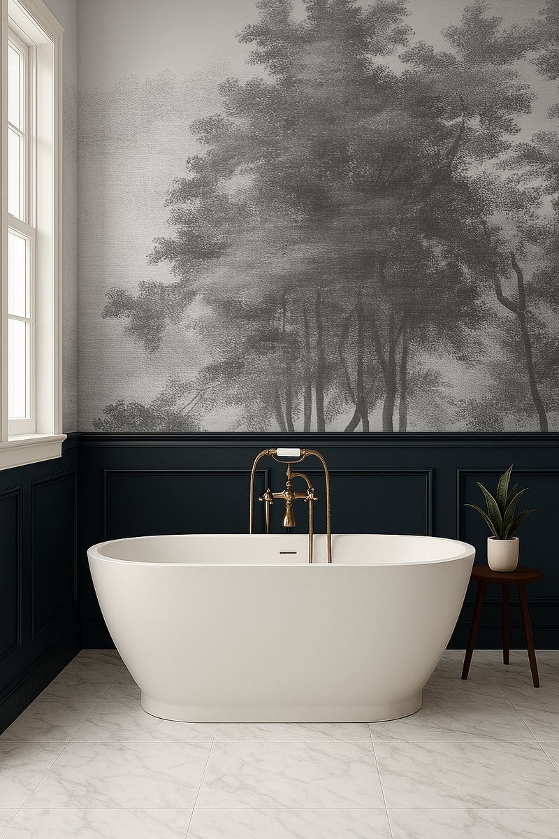 How it fits trends: The growing love for moody interiors has made dark, nature-inspired wallpapers a go-to for designers looking to create depth and drama. This piece bridges the gap between classic noir elegance and modern forest design trends.