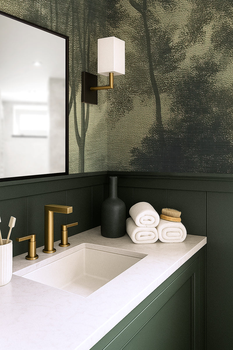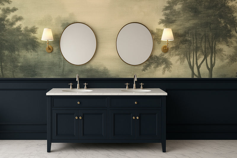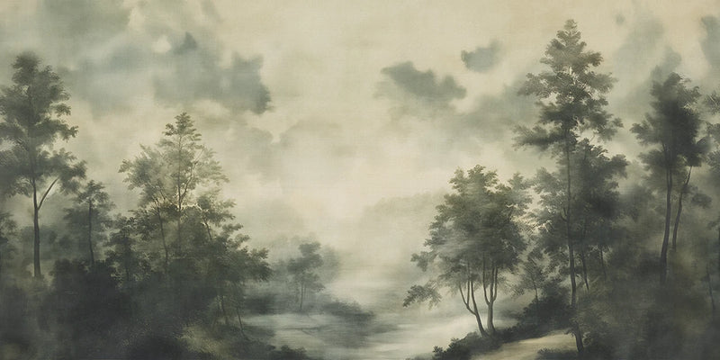 A hazy morning, the kind that blurs the line between dream and waking. The forest hums with soft light, rolling mist, and the quiet rustling of unseen creatures. Verdant Reverie is a whisper from another era, a hand-painted landscape frozen in time. Part of the Vintage Forest Collection, this design blends soft greens, antique golds, and aged brushstrokes to bring a storybook woodland scene into your home.