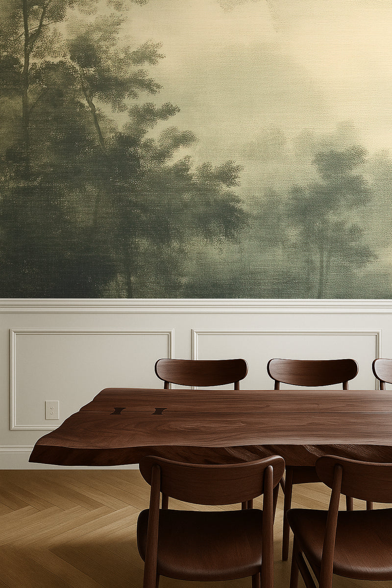 How it fits trends: The return of romanticized nature in interior design has fueled demand for vintage botanical wallpapers, and ethereal forest landscapes like this one fit seamlessly into the movement toward nostalgic, nature-inspired aesthetics.