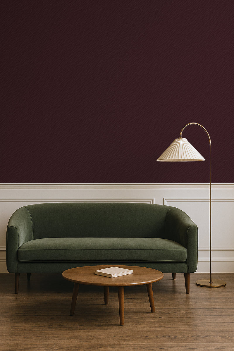Tannery Mist – Burgundy is a wallpaper that channels the rich, tactile feel of finely treated leather — the kind you’d expect on the armrest of a vintage sports car or the surface of a Birkin bag. A deep red coffee tone with subtle warmth, it creates a cocooning effect perfect for moody bedrooms, library walls, or dramatic dining spaces.
