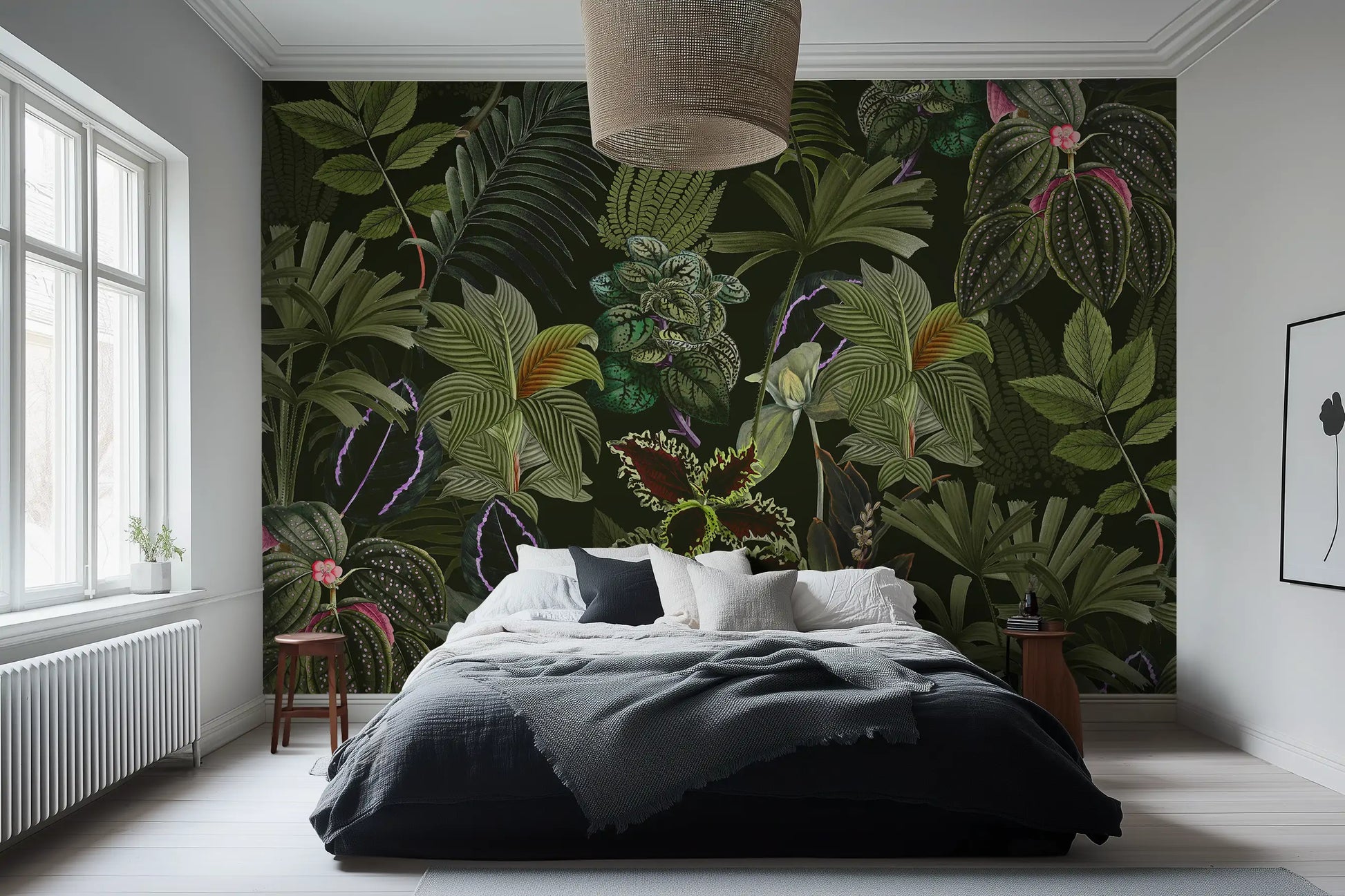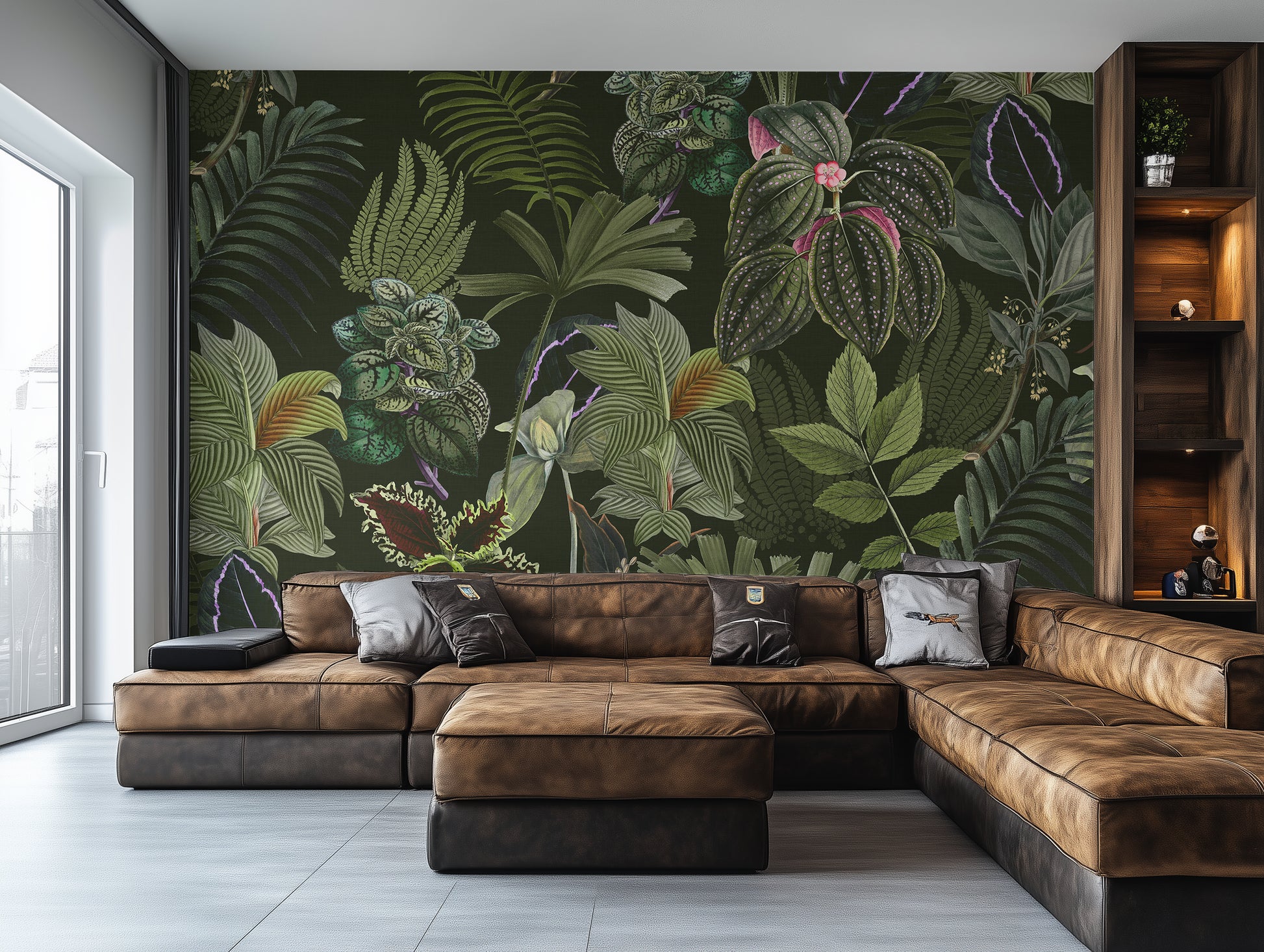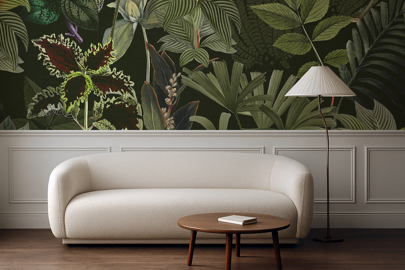 Why it’s great: The layered botanical detailing and rich, moody palette create a deeply immersive design, perfect for statement walls, boutique interiors, and spaces that crave a touch of the exotic.