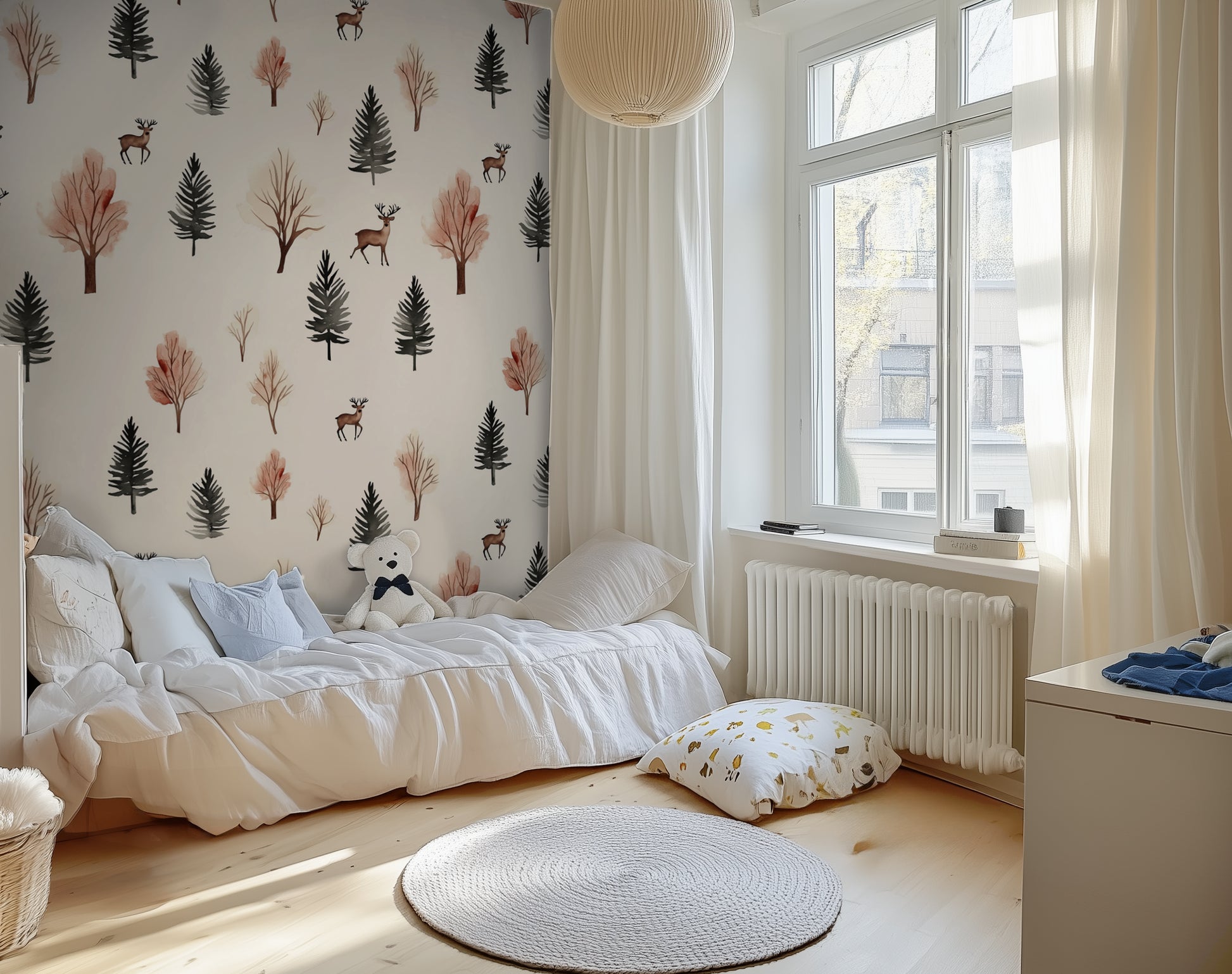 Woodland motifs are a kids’ interior classic, but this version is fresh and refined. It taps into the Scandi-nature aesthetic—organic, gentle, and endlessly calming.