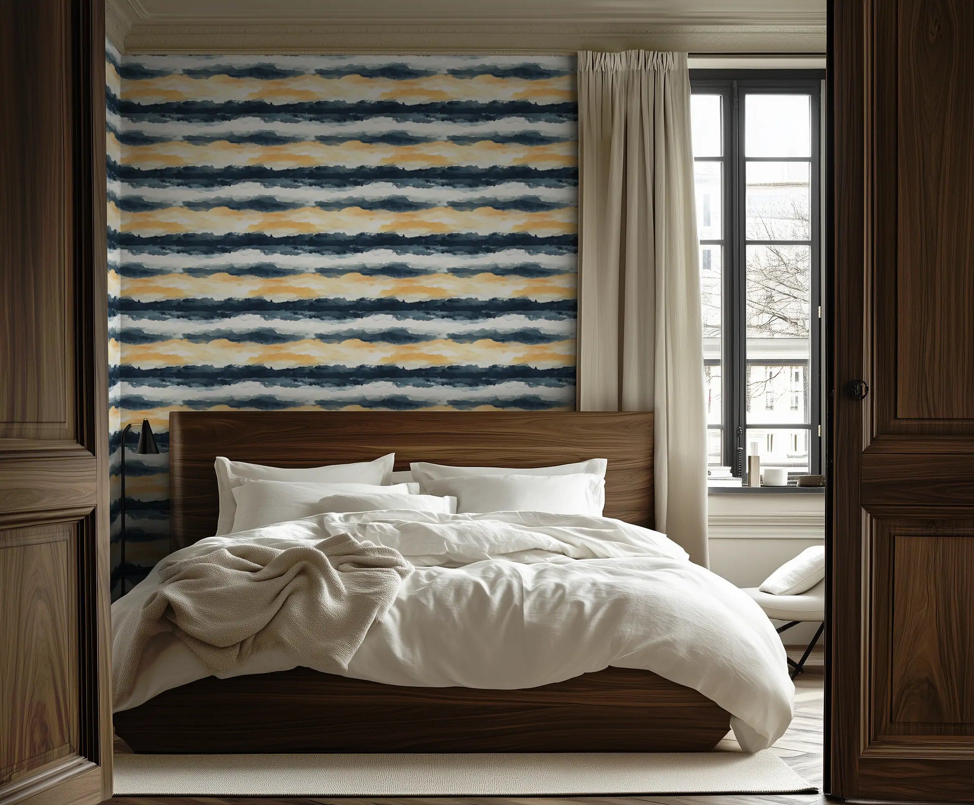 A dramatic piece in Ocean Palettes, this wallpaper brings an enigmatic elegance to bold interiors.