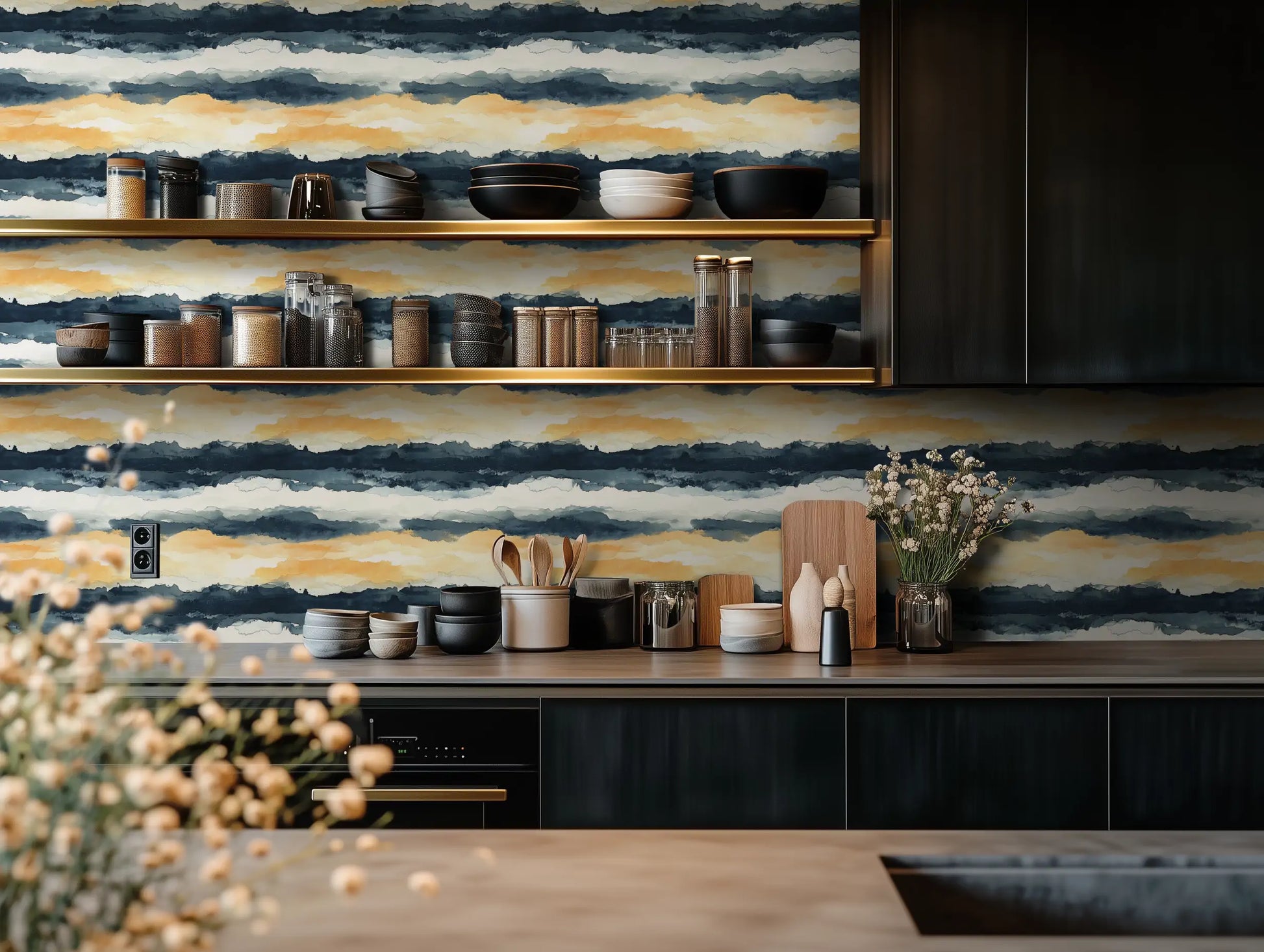 Why it’s great: The deep, moody tones punctuated by soft highlights make this wallpaper perfect for contemporary interiors that lean into rich, atmospheric storytelling.