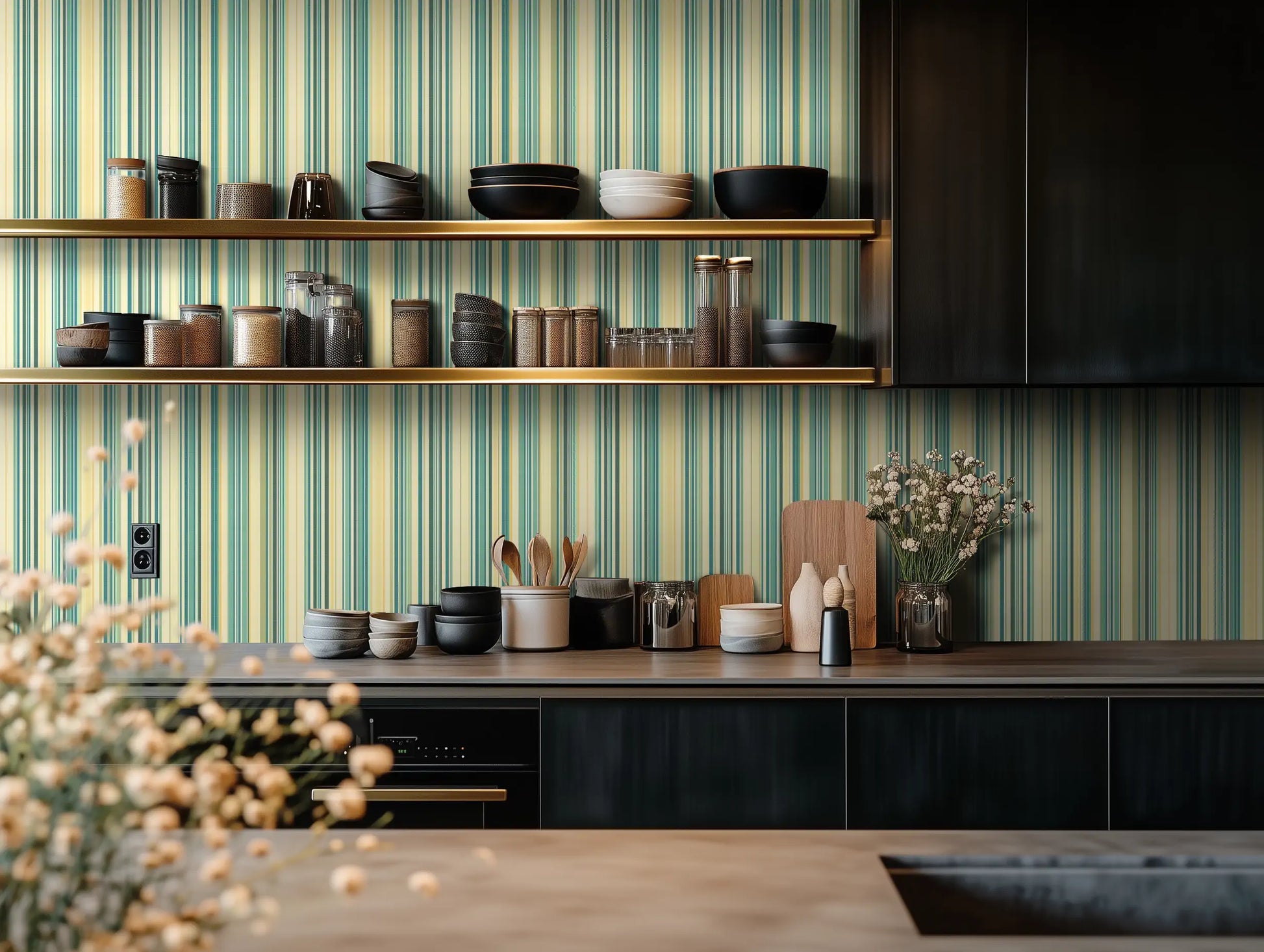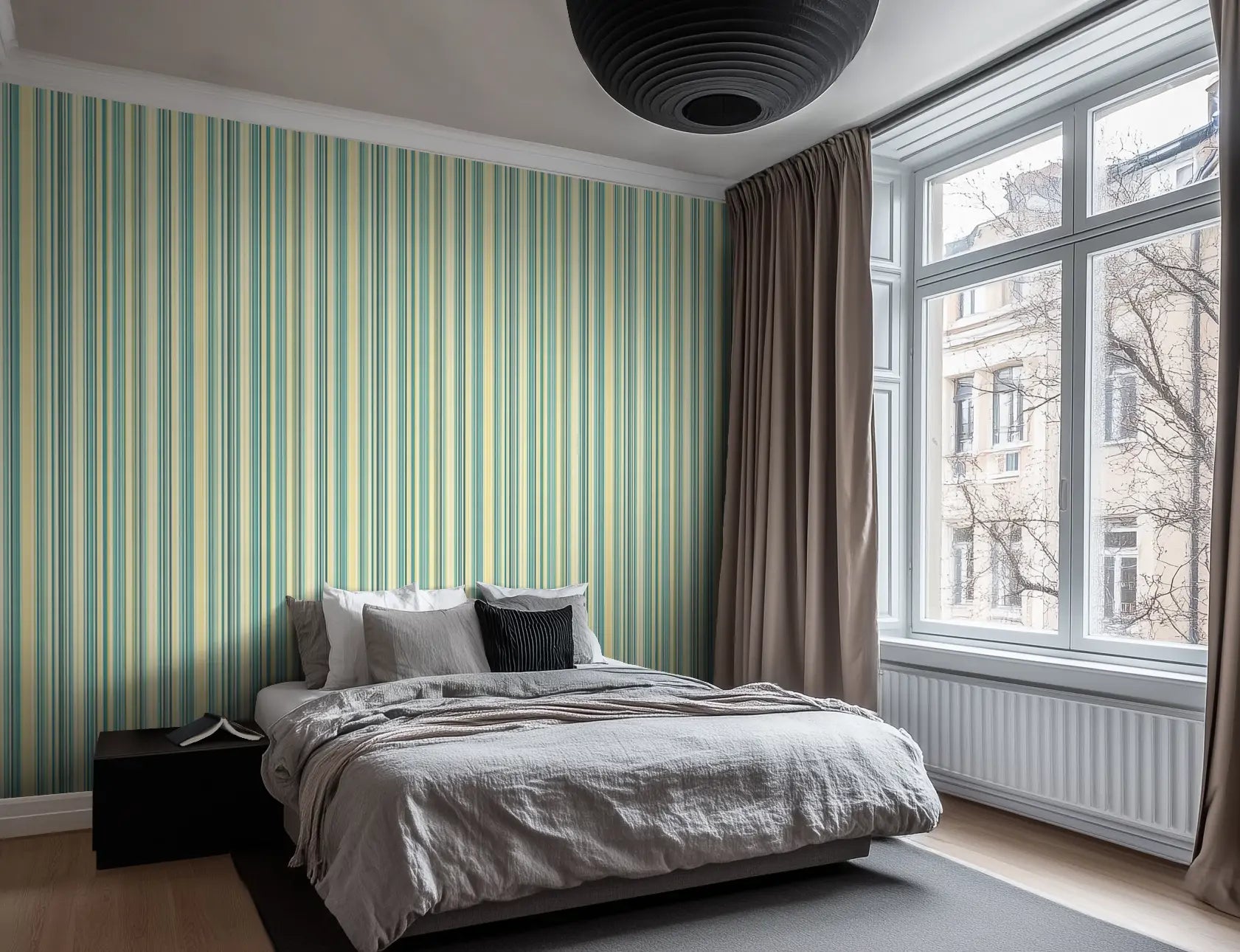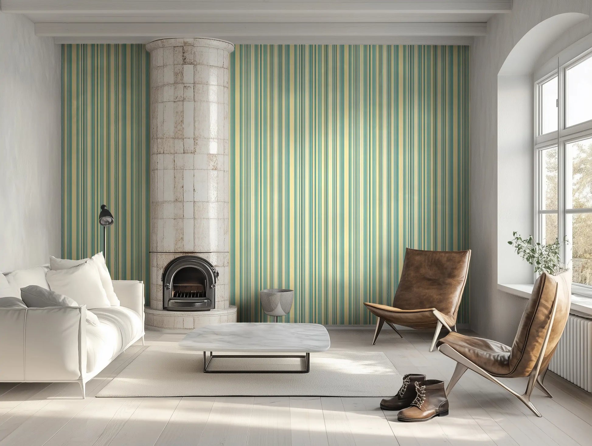 Perfect for coastal retreats, spa-like bathrooms, or bright, airy bedrooms, this soft blue striped wallpaper pairs beautifully with natural wood, white linen, and handwoven textiles, bringing the effortless elegance of Greek island living into your home.