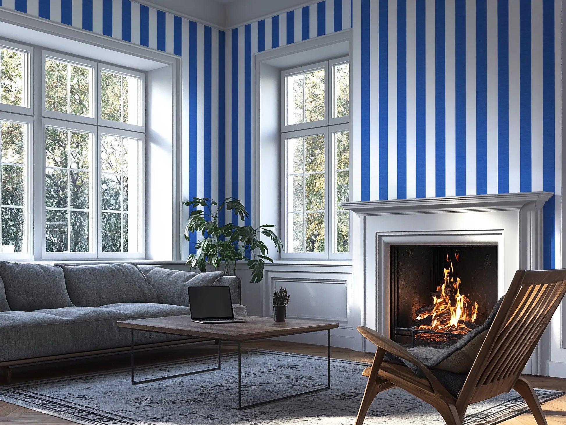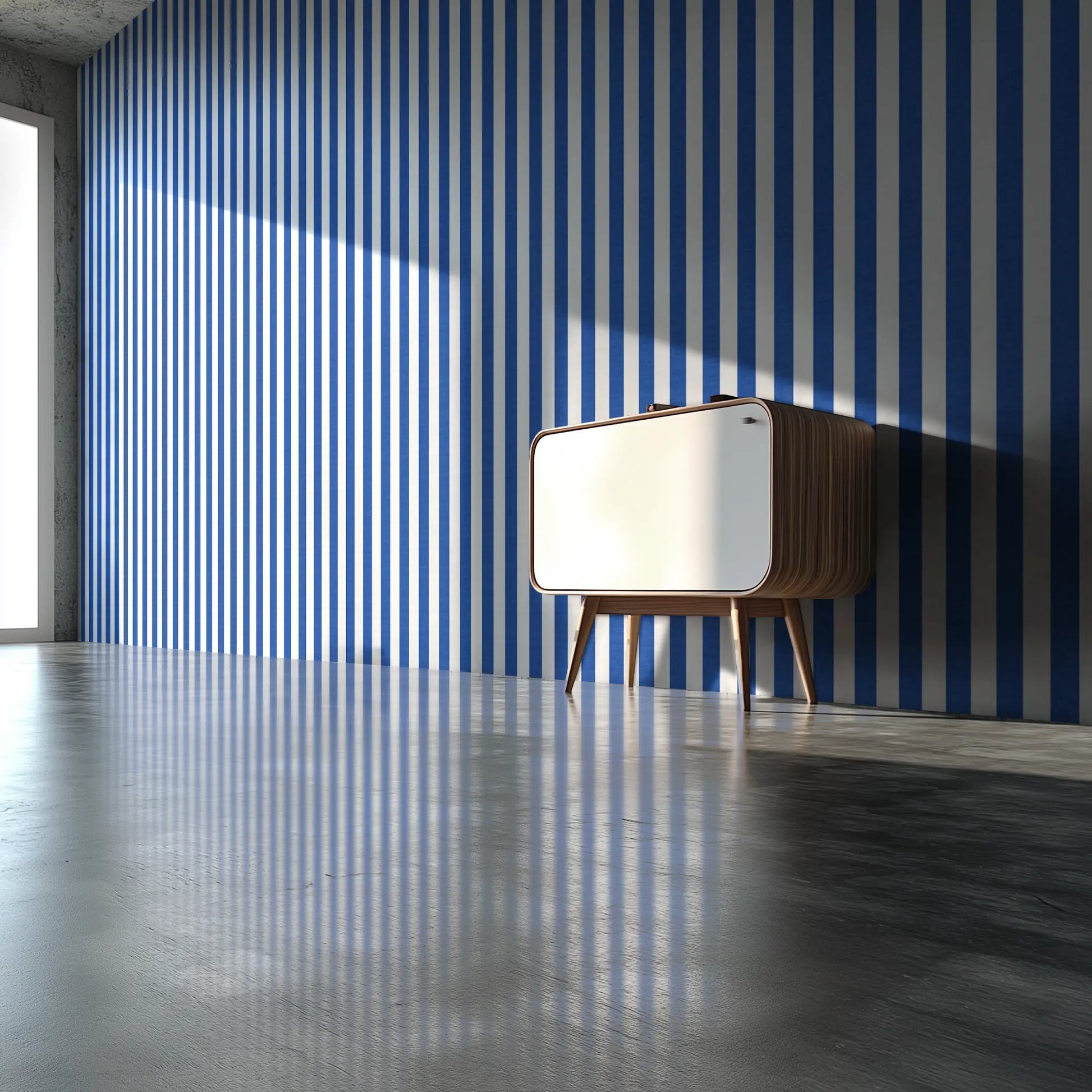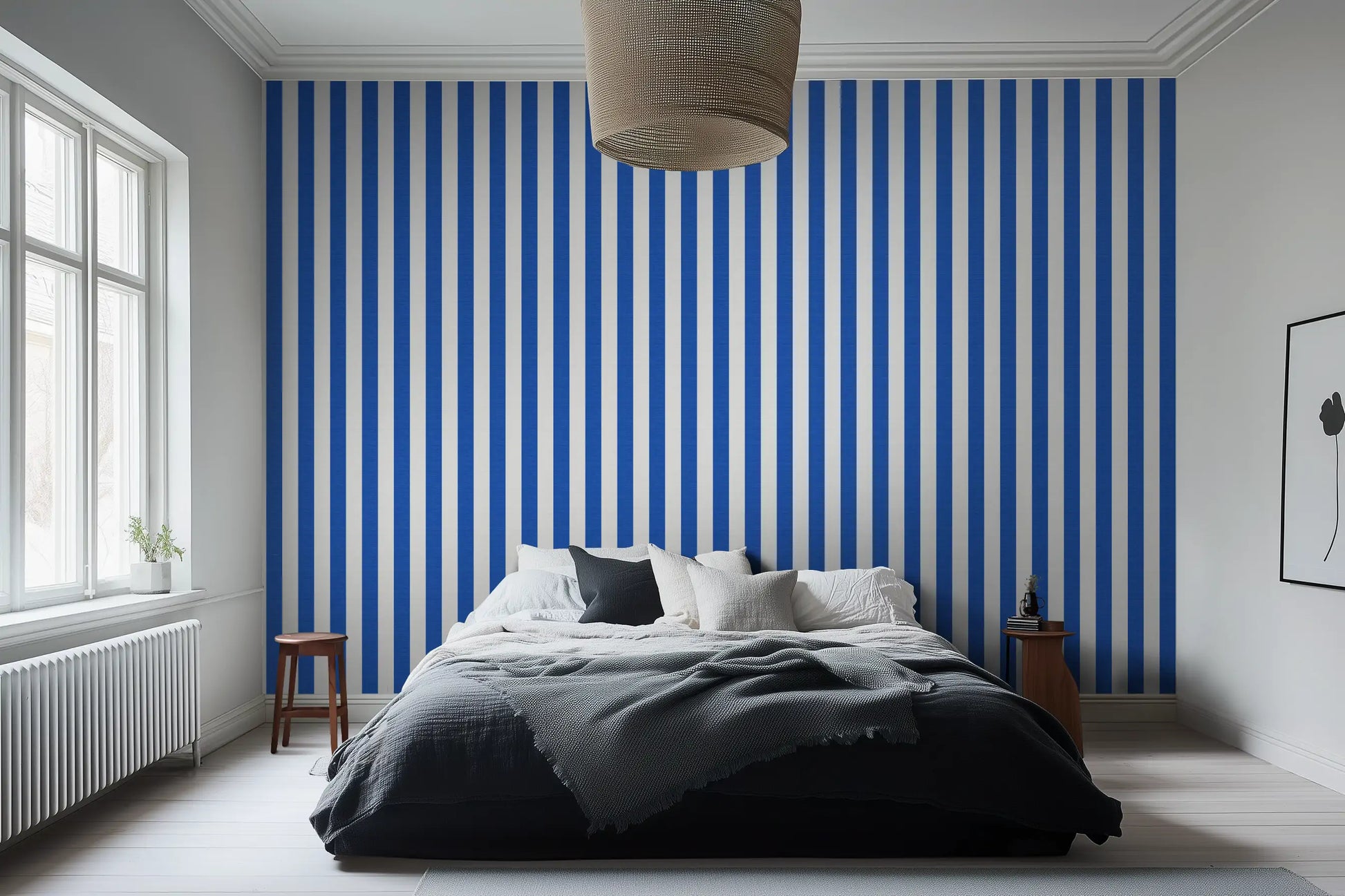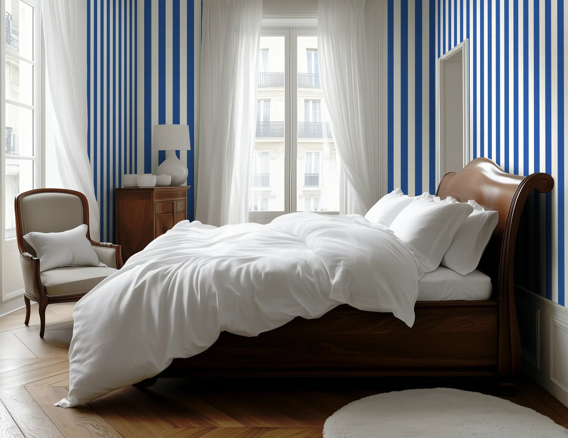 Perfect for coastal interiors, minimalist spaces, or breezy Mediterranean-inspired rooms, this Greek striped wallpaper pairs beautifully with textured linen, whitewashed wood, and deep indigo ceramics, creating an interior that feels sunlit, airy, and endlessly inviting.