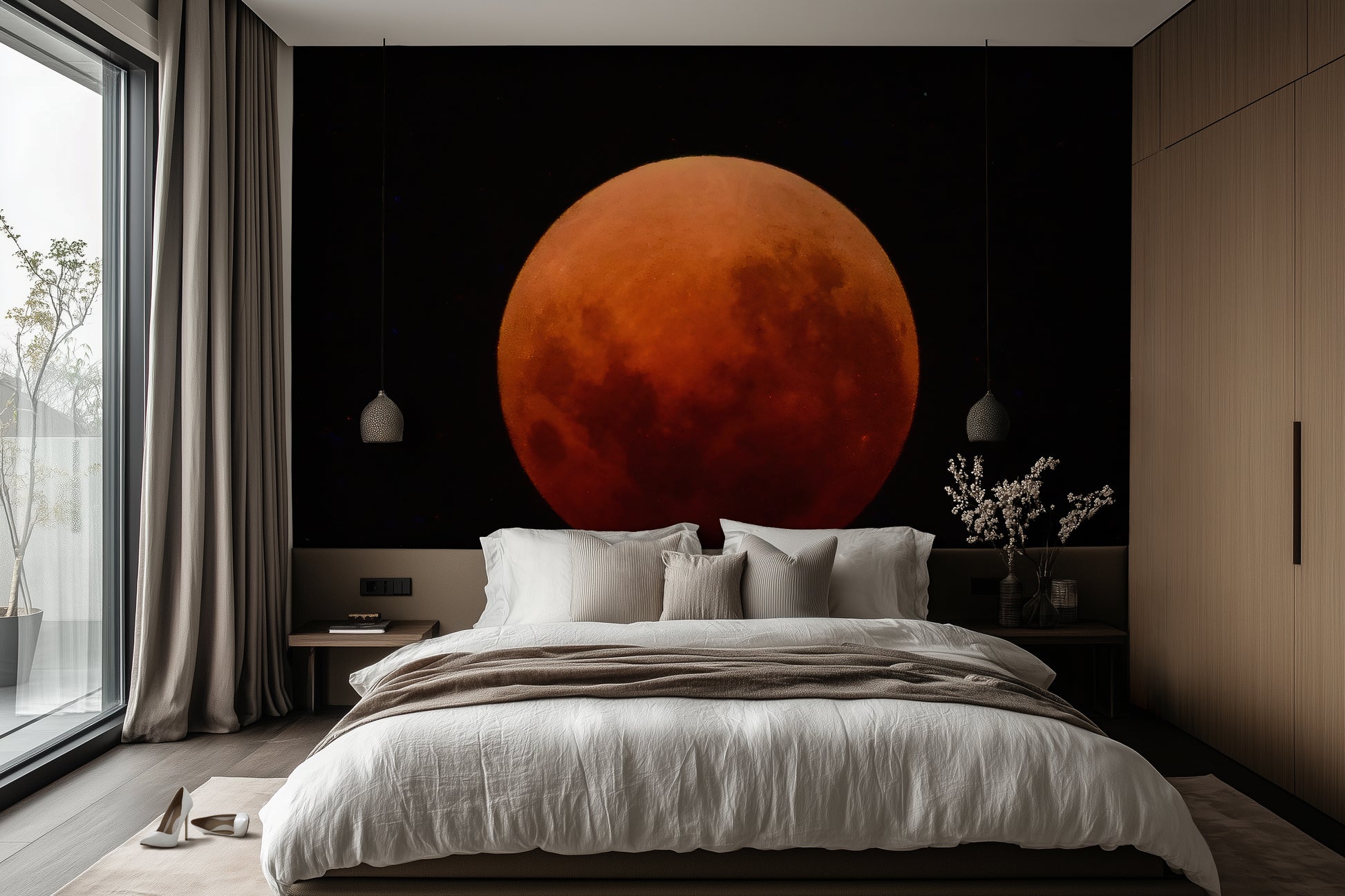 How it fits into current design trends: Lunar eclipse imagery and red-toned moon murals are rising in gothic, surreal, and mystic-forward decor. Aphelion is a celestial moment suspended in shadow and fire.