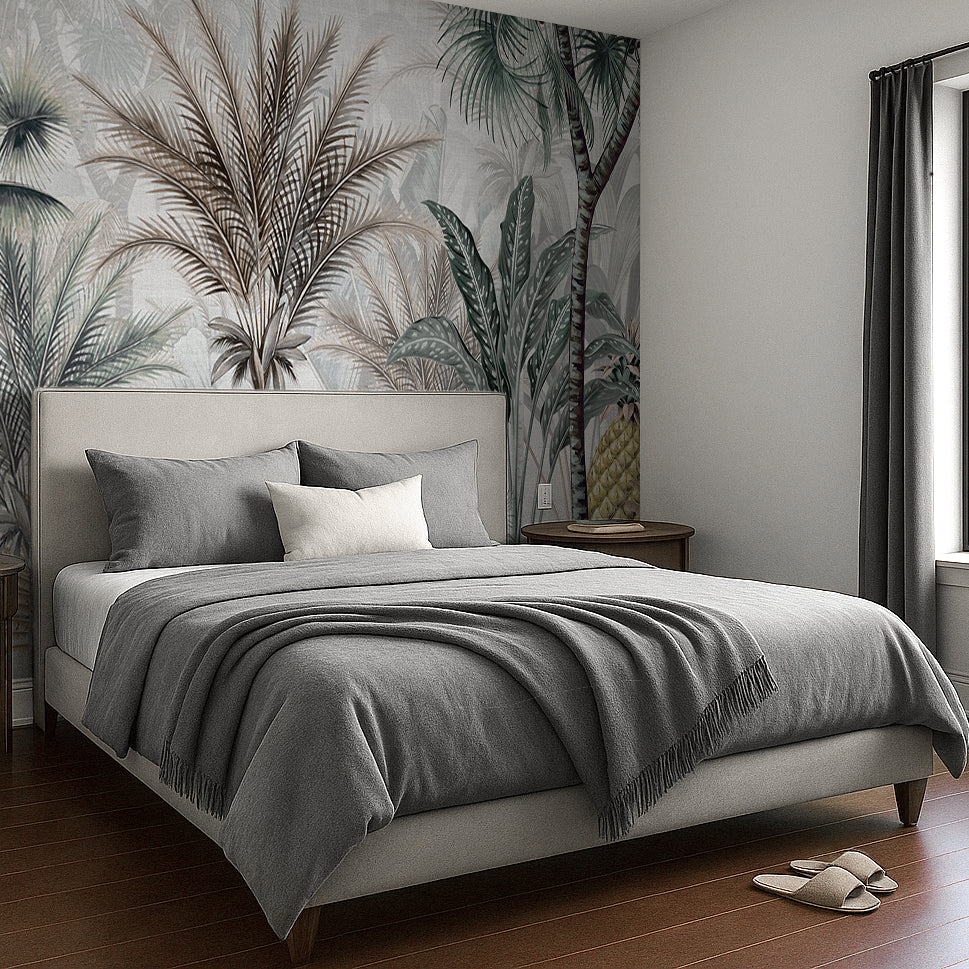 Eden Mirage embodies the growing love for botanical and jungle-themed wallpapers that blend natural beauty with artistic composition. As a jungle botanical wallpaper mural, it’s perfect for homeowners seeking tropical interior design that feels curated, elevated, and unique—transforming ordinary walls into extraordinary focal points.
