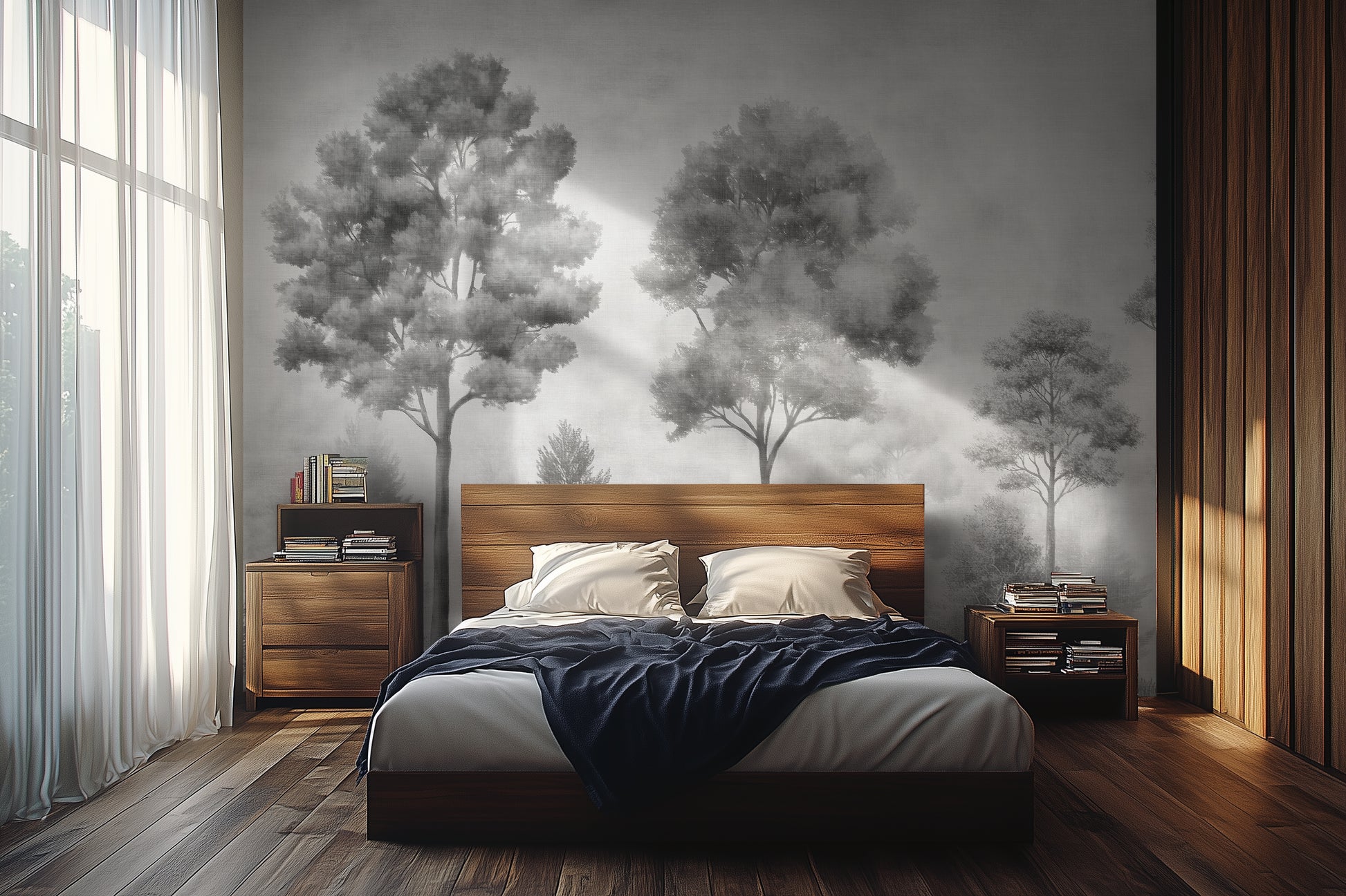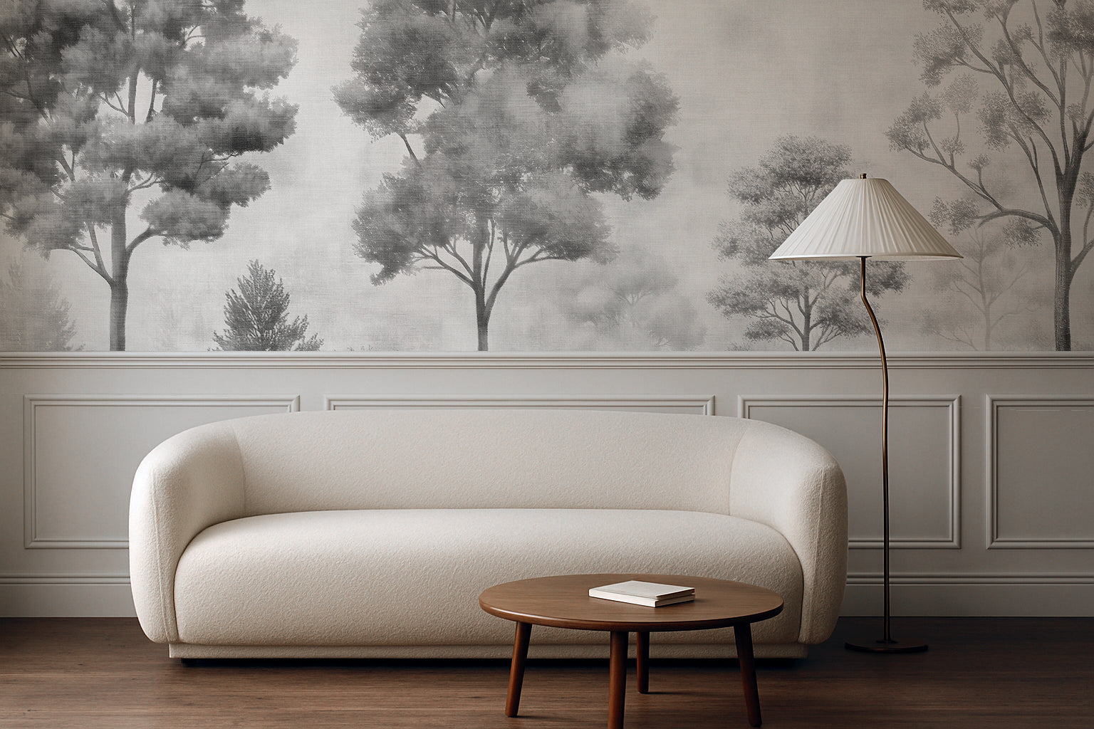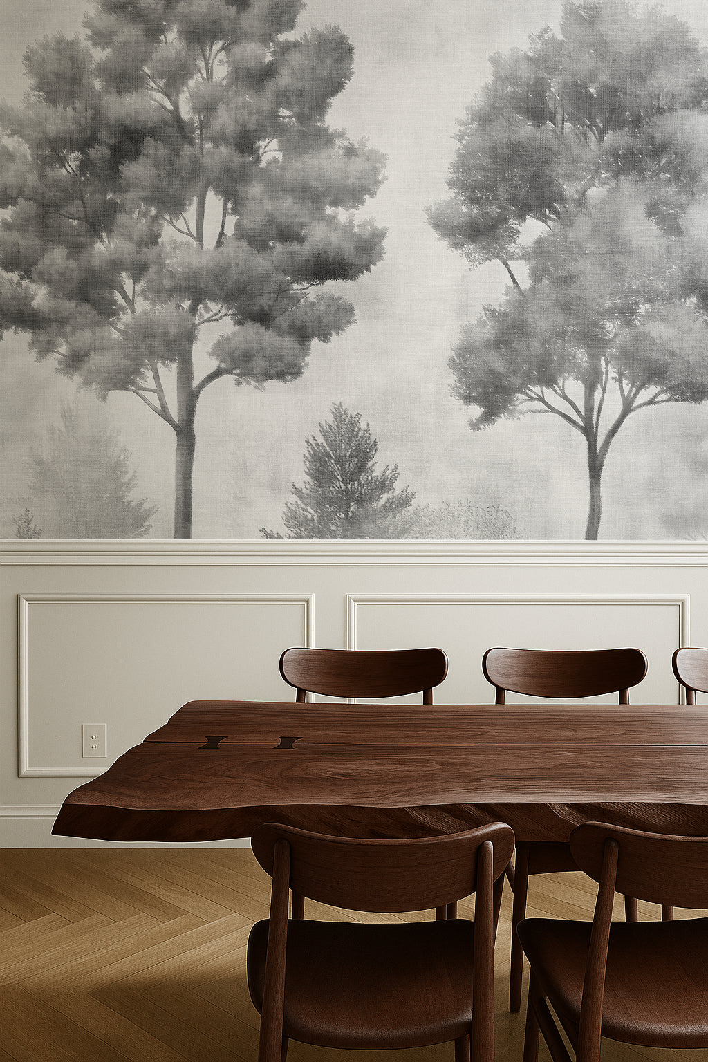 Some forests feel like echoes of the past—timeless, unchanging, etched into memory like an old photograph. Monochrome Grove channels that sentiment, capturing a delicate treeline in shades of silver and charcoal, as if plucked from a vintage landscape sketch. A refined addition to the Vintage Forest Collection, this wallpaper merges classical artistry with a modern monochrome aesthetic, creating a look that’s both elegant and effortlessly bold.