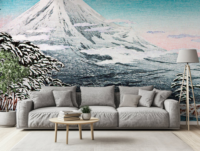 Mt. Fuji from Tagonoura – Hiroaki Takahashi (early 20th century) | Vintage Japanese Coastal Wallpaper