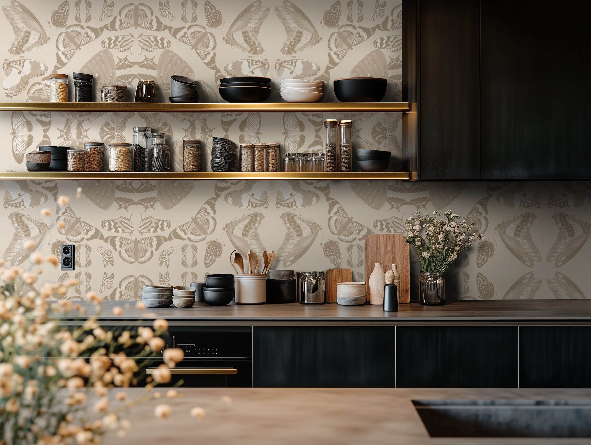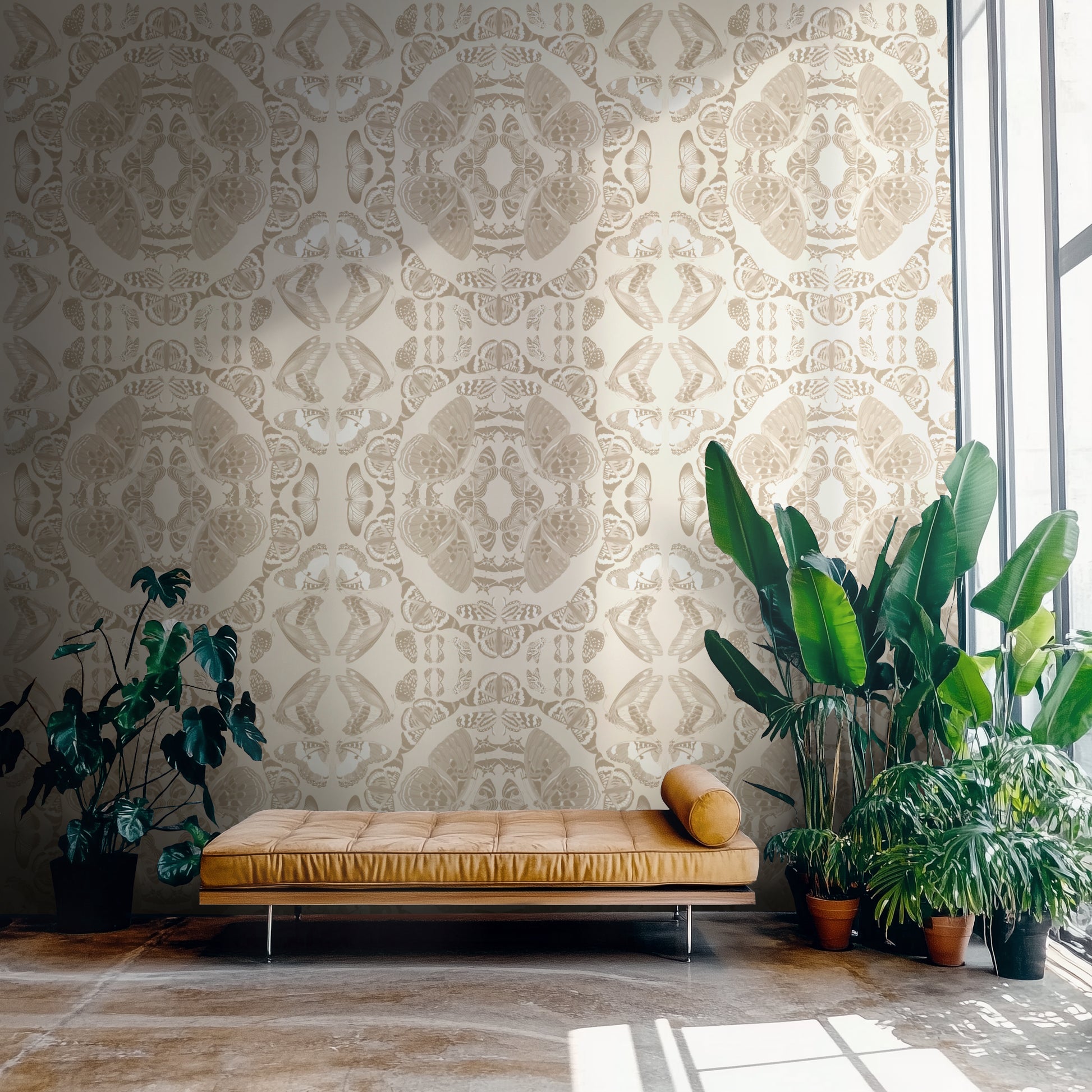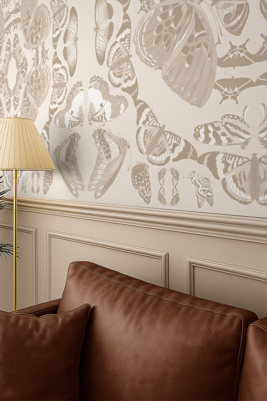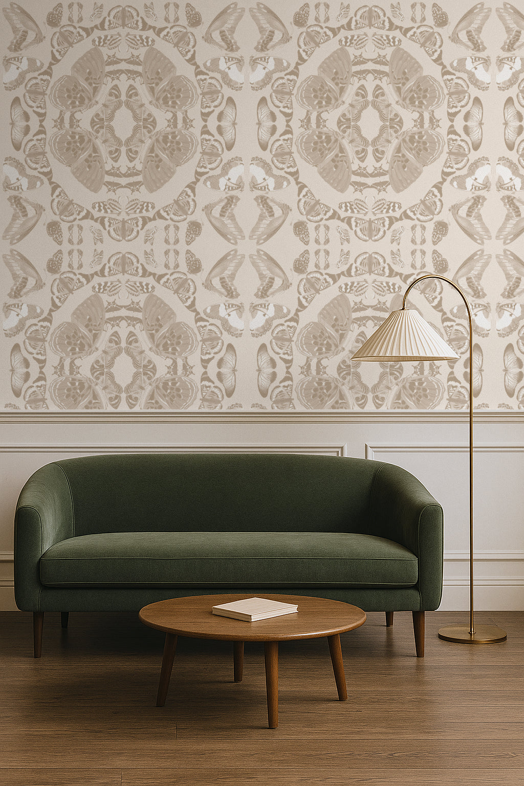Warm, balanced, and exquisitely symmetrical—Papillon Reverie – Mocha Moth brings the grace of natural history into modern interiors. The soft mocha tones and butterfly motifs create an atmosphere of quiet refinement, like a sepia-toned print brought to life.