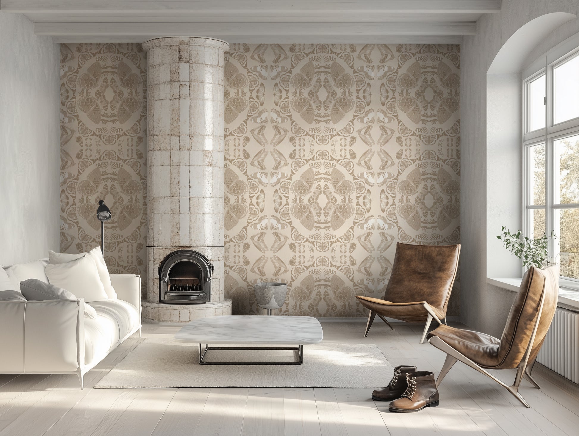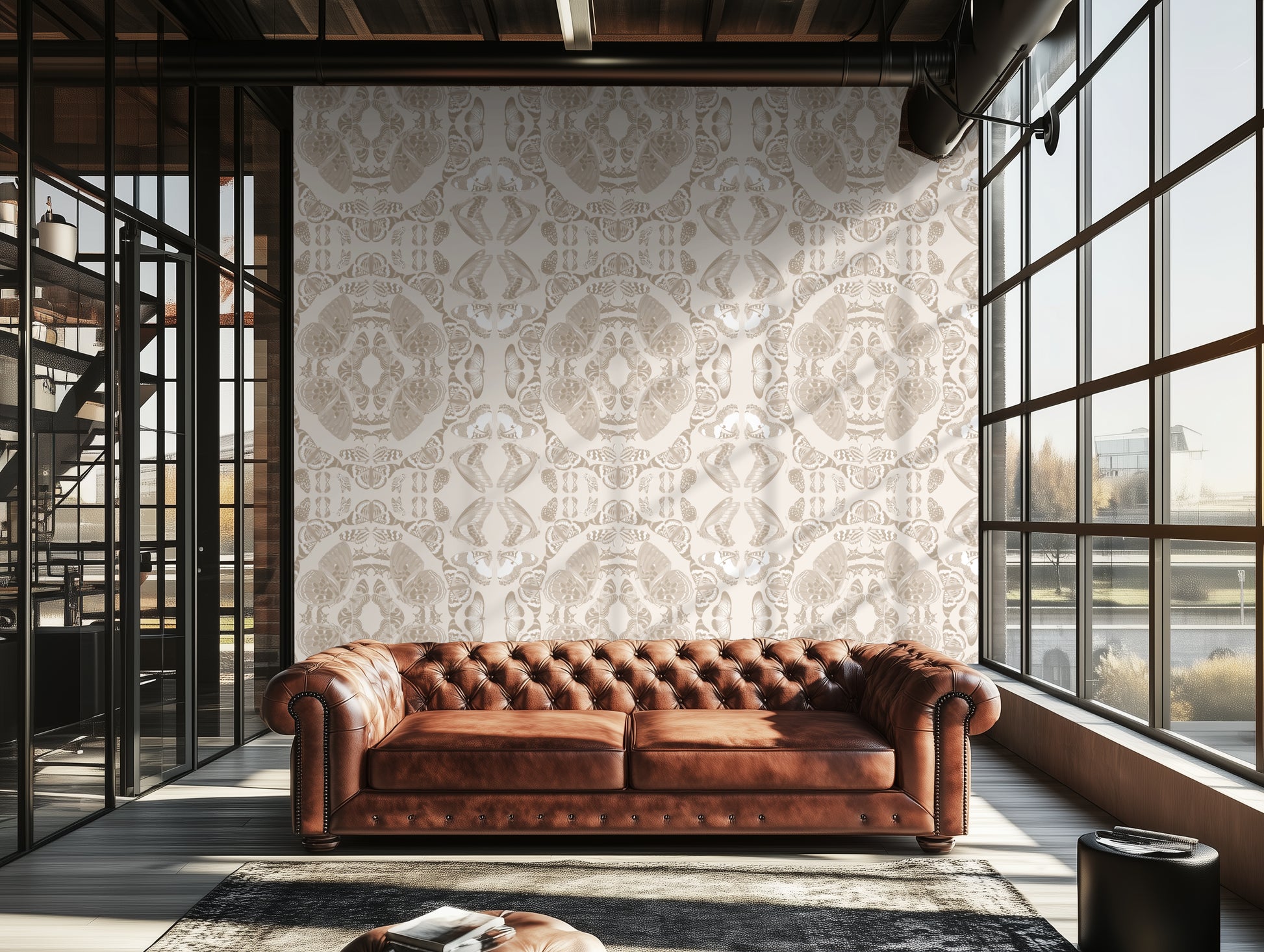 This wallpaper suits lounges, dining rooms, home libraries, bedrooms, and interiors with a natural elegance. Its warm neutral palette complements rich woods, linen upholstery, and soft lighting, offering a sense of structure and calm in any space.