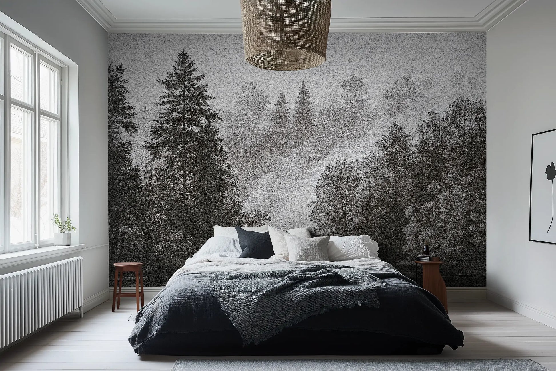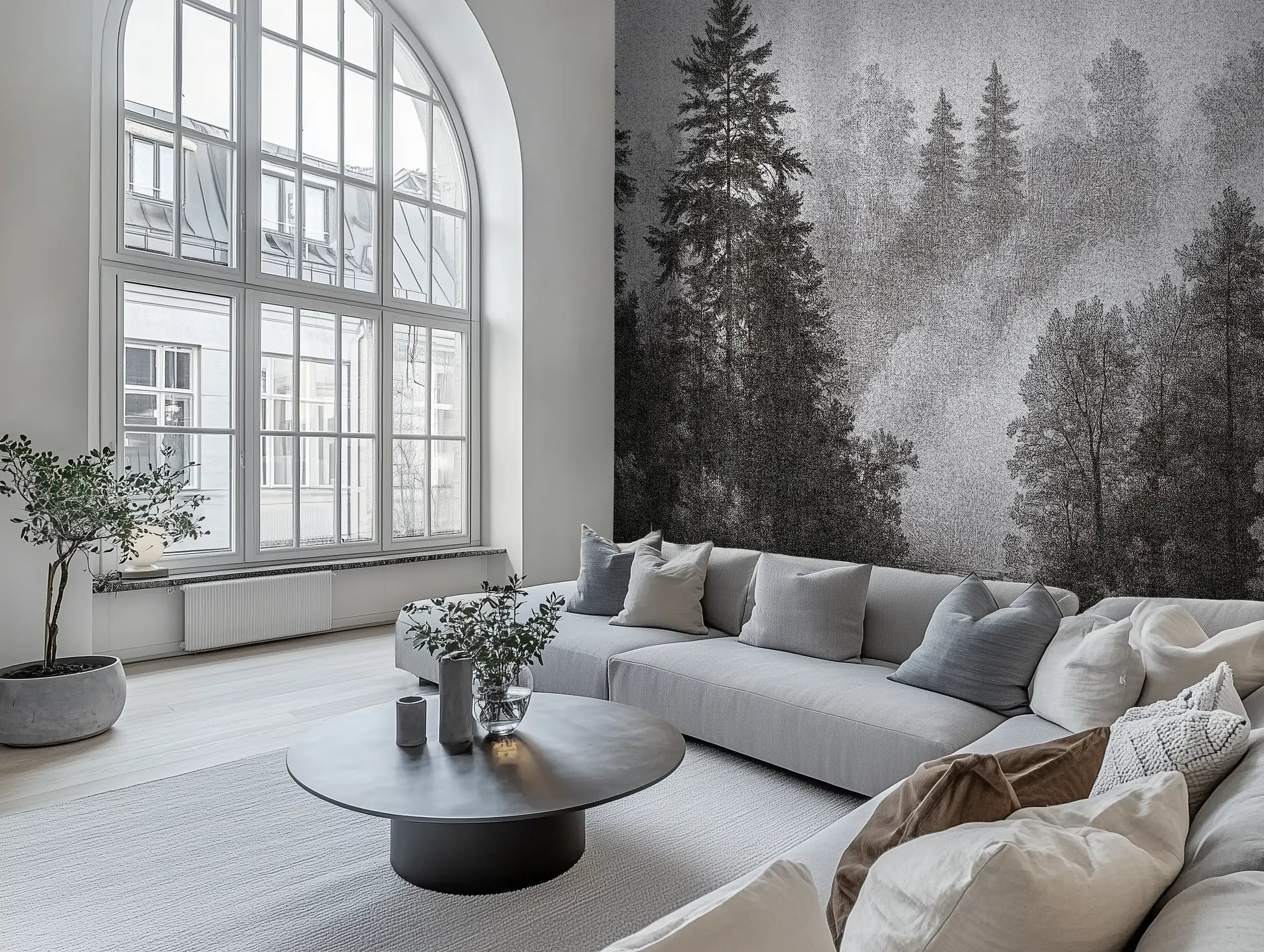 Why it’s great: The soft grayscale gradients create a deep, atmospheric feel, making this an ideal choice for sophisticated, nature-inspired interiors.