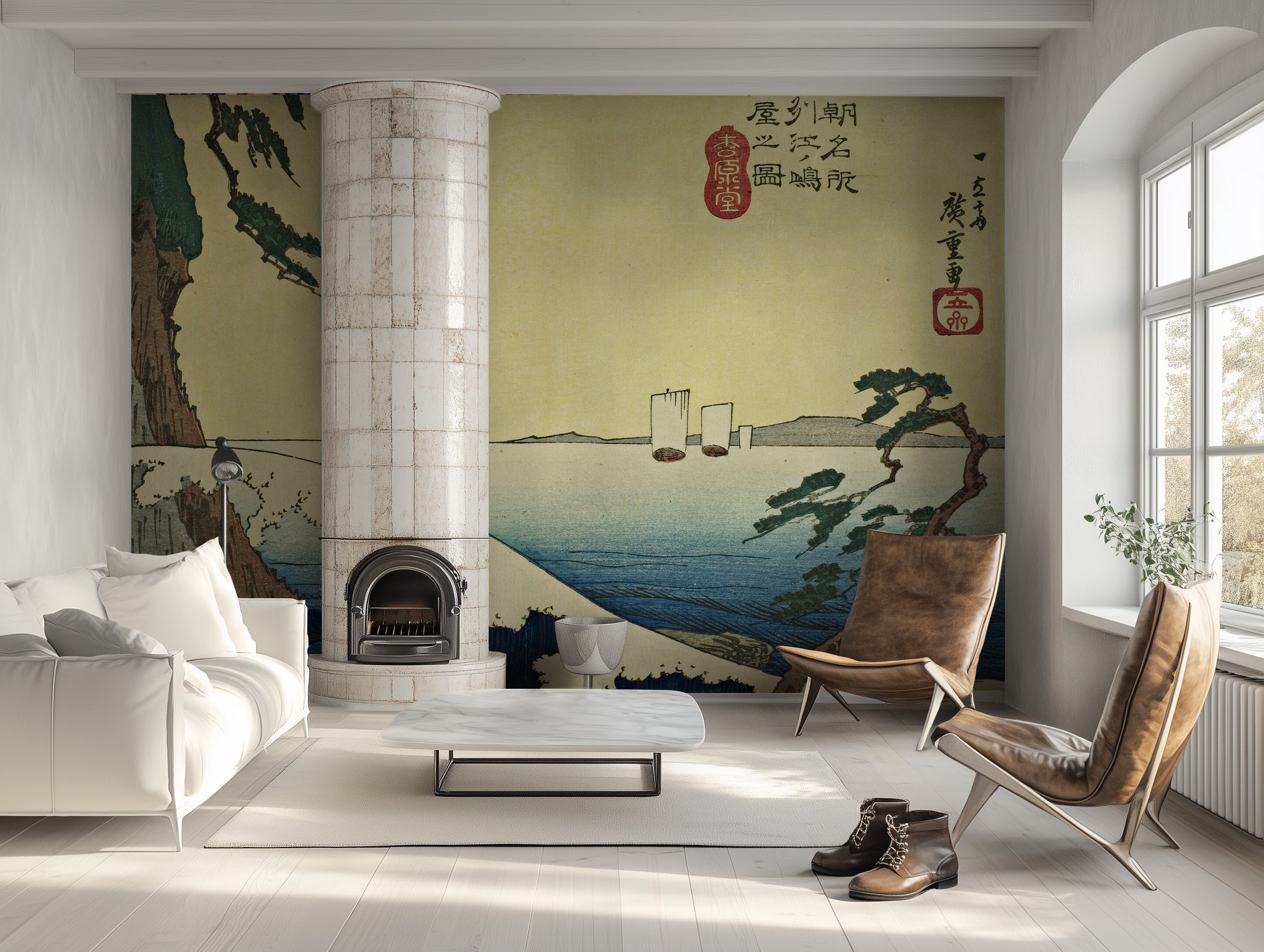 This wallpaper is adapted from the original artwork by Utagawa Hiroshige, now in the public domain. It has been respectfully upscaled and adapted for large-scale wall display under a public domain license.