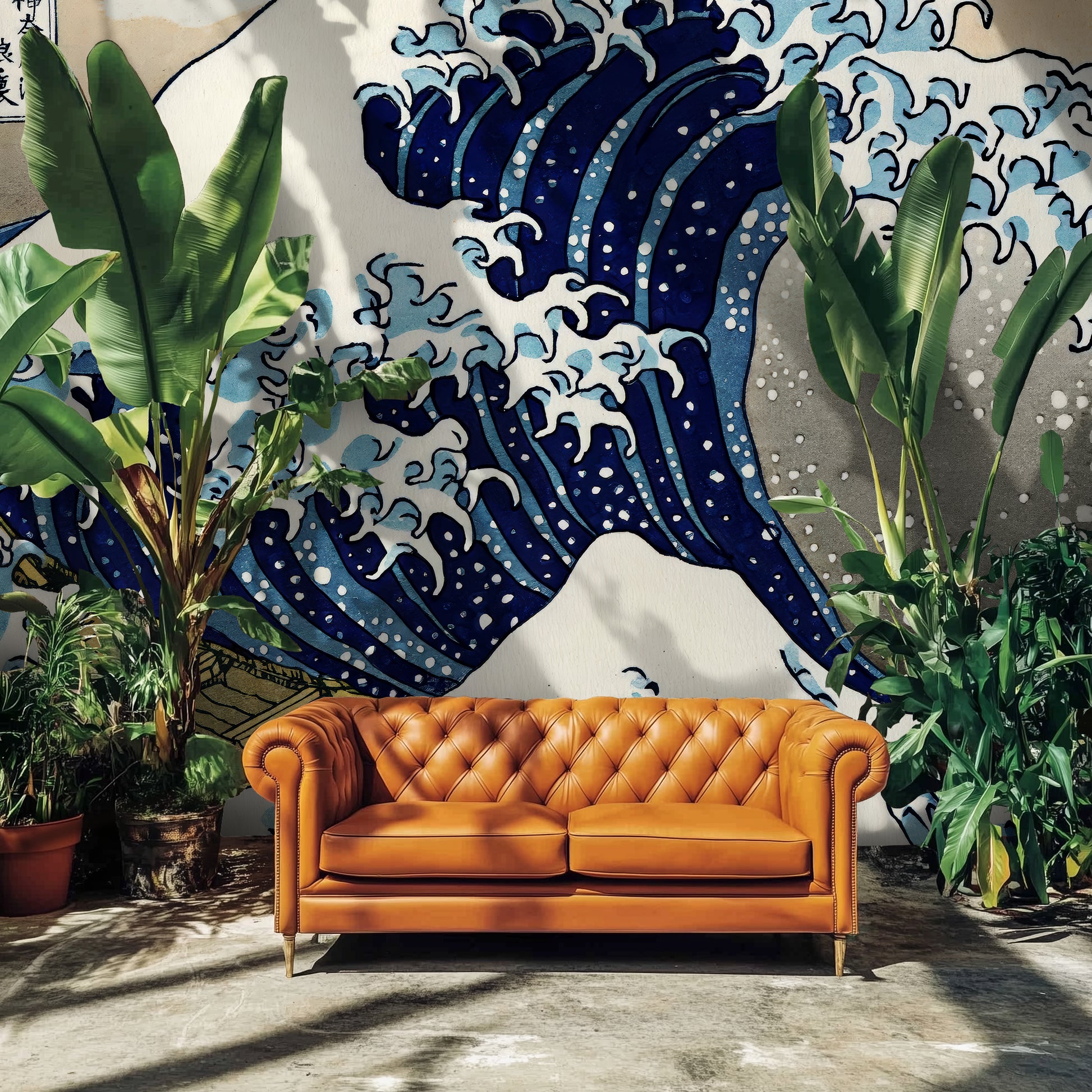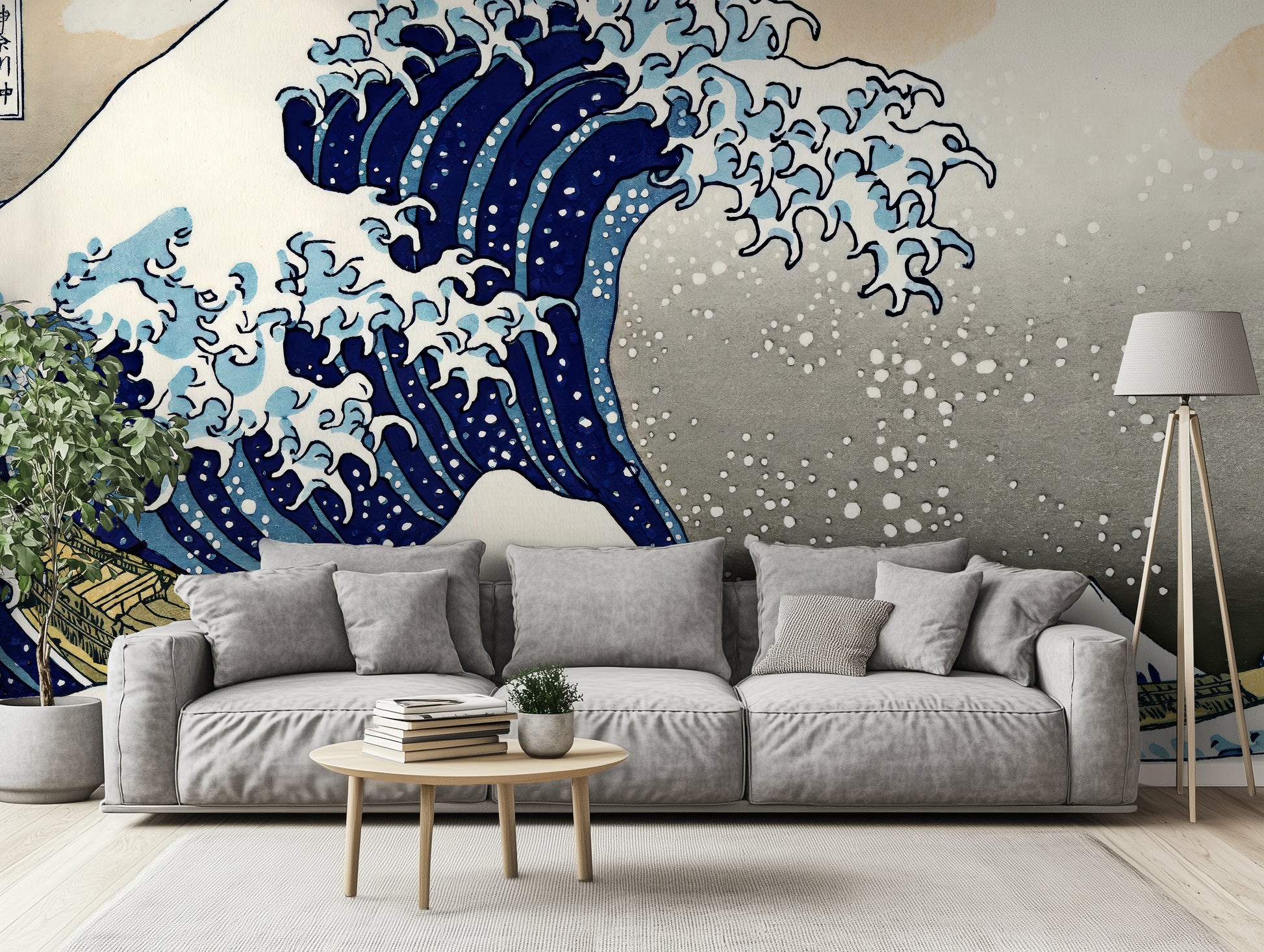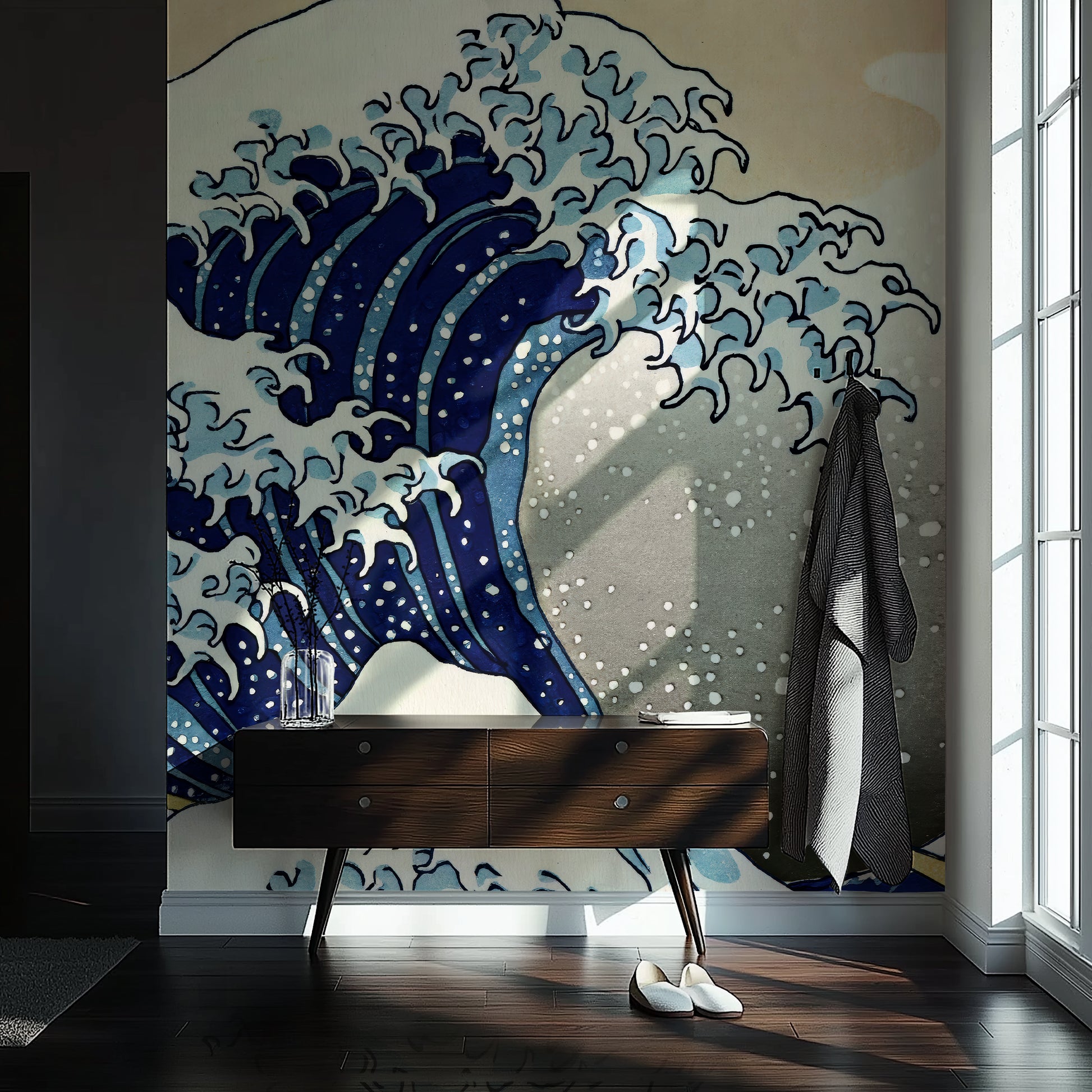 This wallpaper is adapted from the original artwork by Katsushika Hokusai, which is in the public domain. It has been respectfully restored and formatted for large-scale interiors under a public domain license.