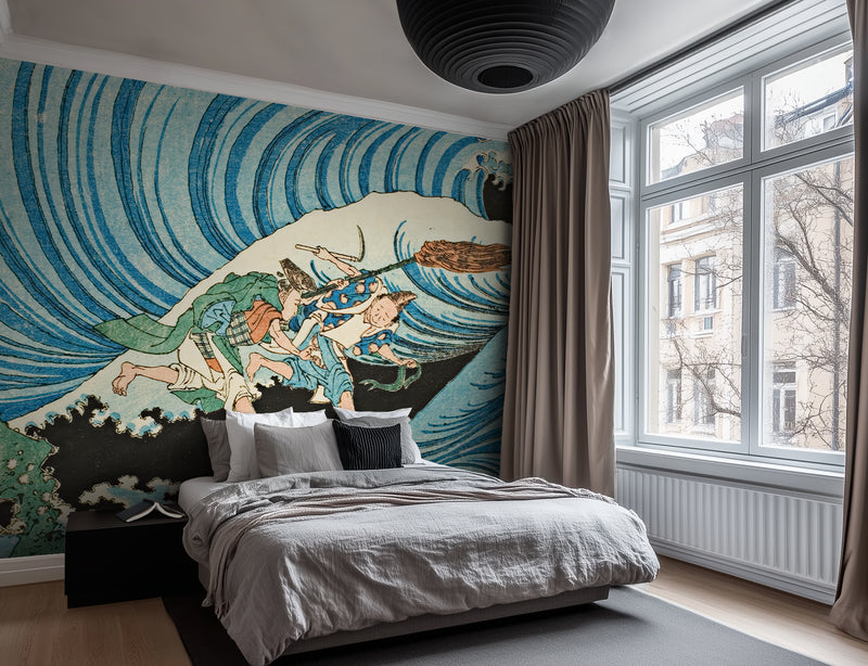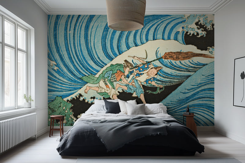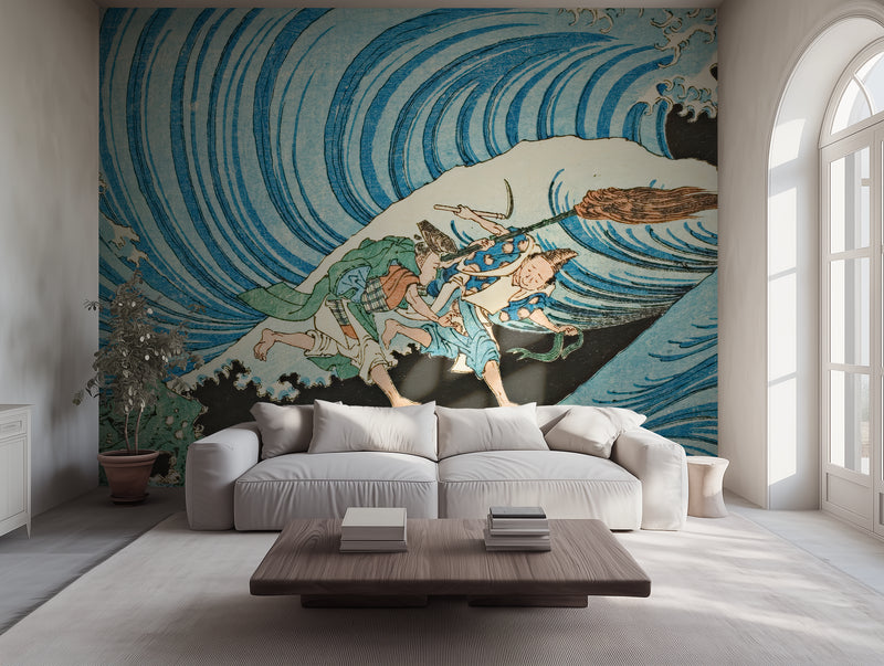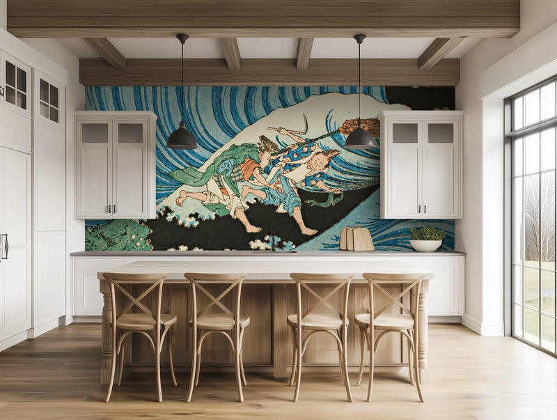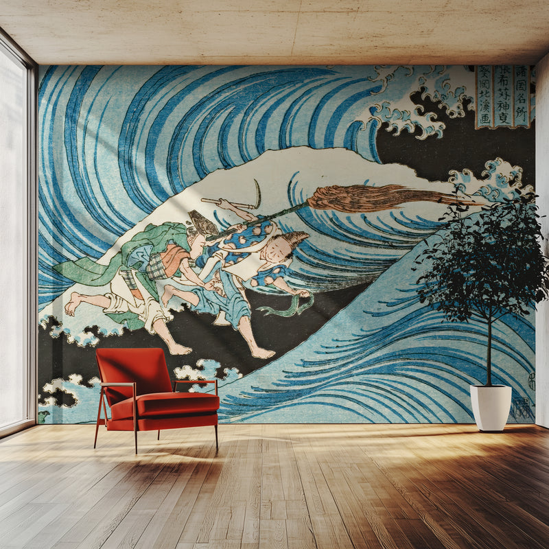This wallpaper is adapted from the original artwork by Totoya Hokkei, now in the public domain. It has been respectfully upscaled and adapted for large-scale wall display under a public domain license.