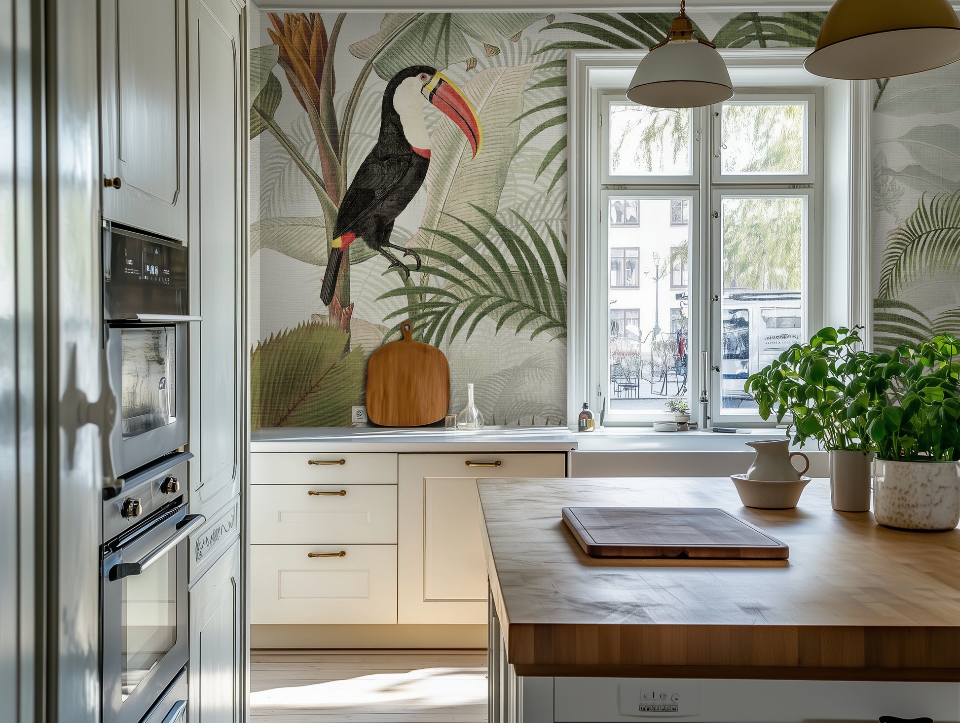 How it fits trends: With the rise of biophilic interiors and the enduring love for tropical prints, this design brings a softer, more sophisticated take on jungle maximalism, ideal for modern homes and boutique spaces.