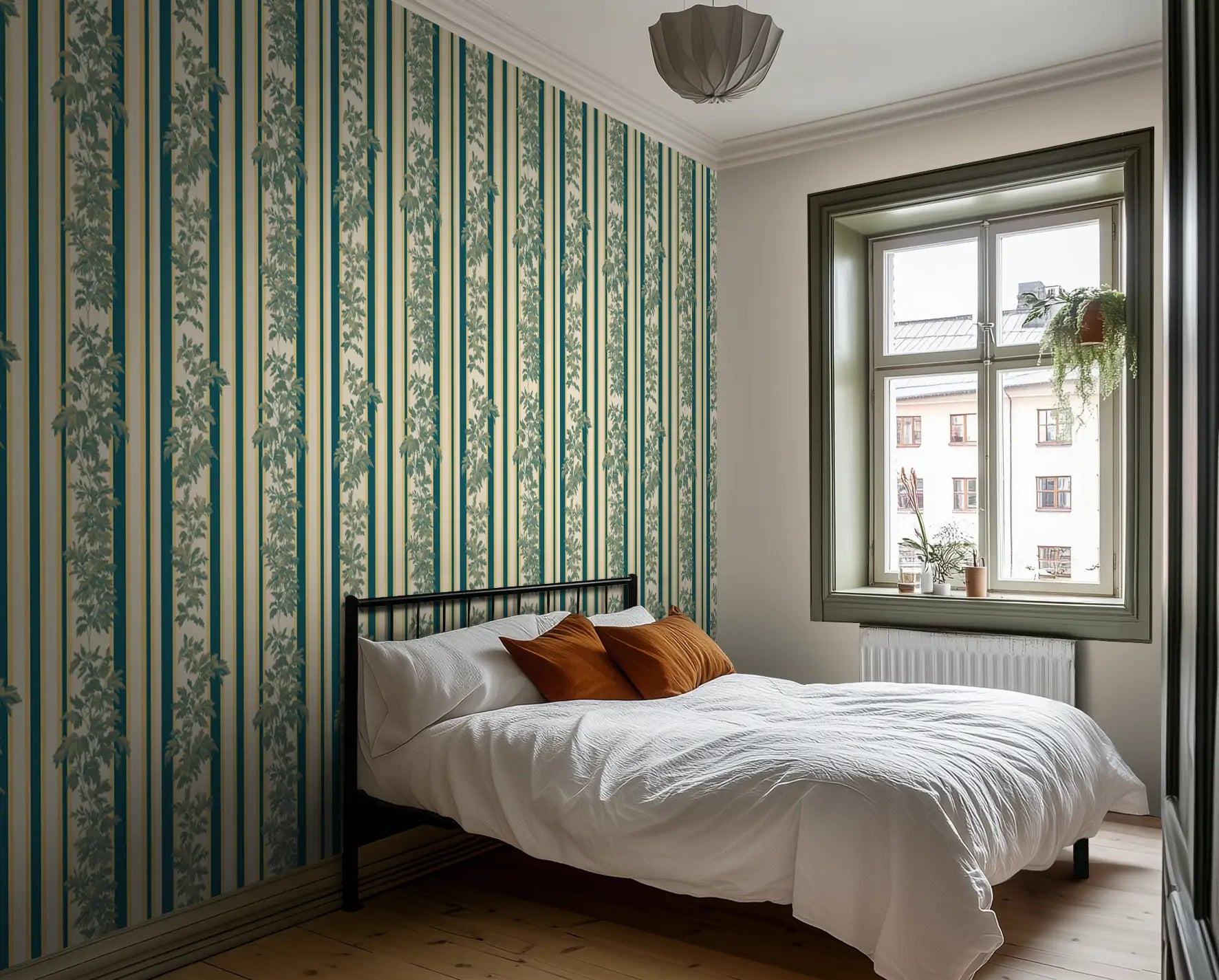 Designed for heritage-inspired spaces, cozy reading nooks, or sophisticated entryways, this Grecian botanical wallpaper pairs beautifully with aged wood, stone textures, and linen drapery, bringing a historical depth to modern interiors.