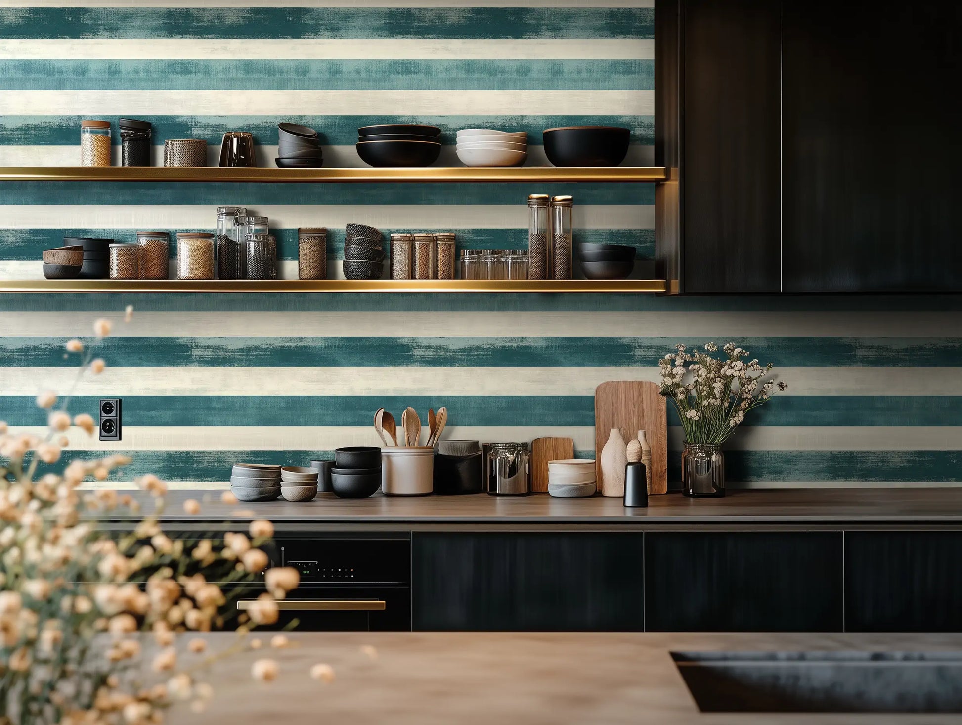 Designed for coastal retreats, minimalist interiors, or Mediterranean-inspired living rooms, this blue and white striped wallpaper pairs effortlessly with raw stone, wicker accents, and breezy linen curtains, creating an atmosphere that feels timeless, fresh, and sun-drenched.