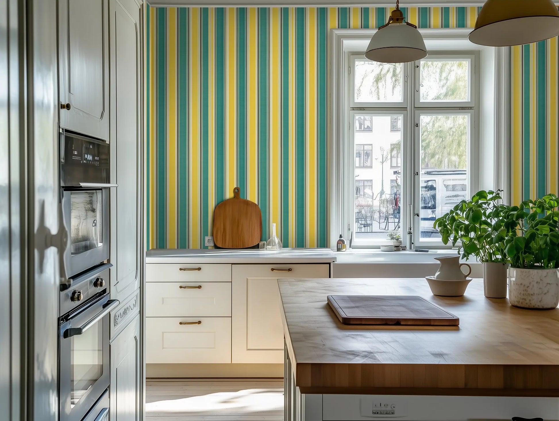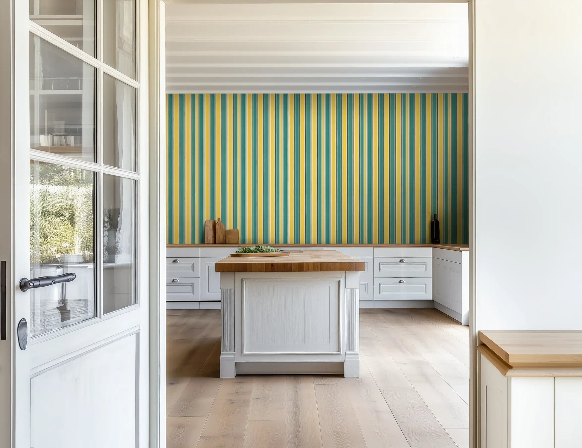 Ideal for luxurious coastal retreats, spa-inspired bathrooms, or statement walls, this Mediterranean striped wallpaper pairs effortlessly with whitewashed stone, textured linen, and natural elements, creating a look that feels sunlit and endless.