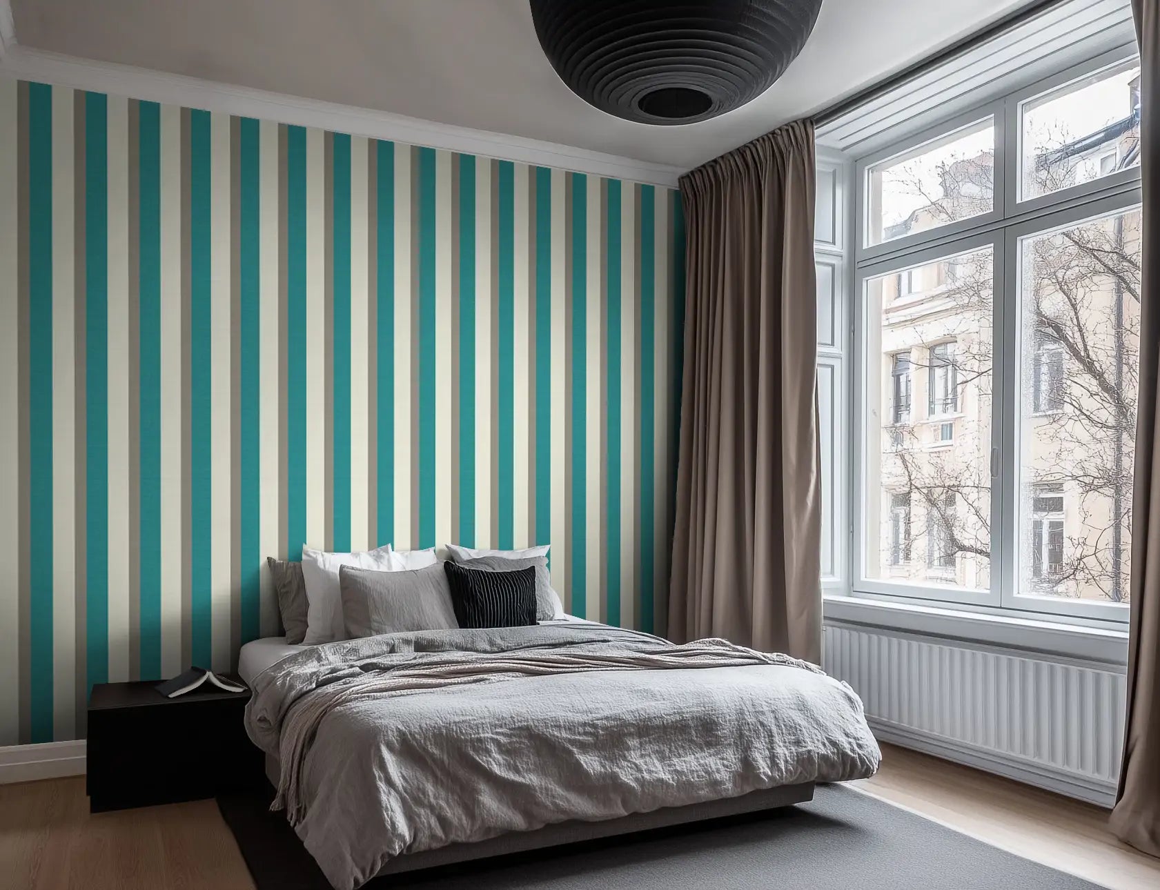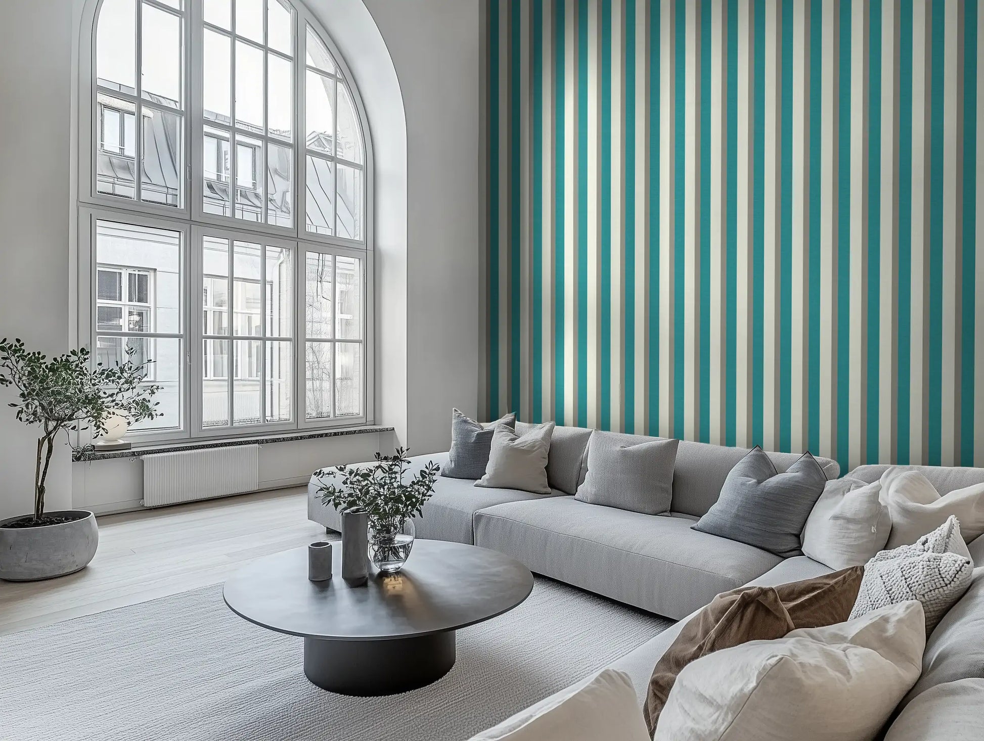 The waters of Santorini shimmer in shades of blue and turquoise, their colors shifting with the changing light. Santorini Serenity captures this coastal tranquility, blending soft aquas, misty blues, and warm ivory stripes into a design that feels airy, calm, and endlessly serene.