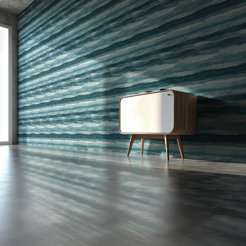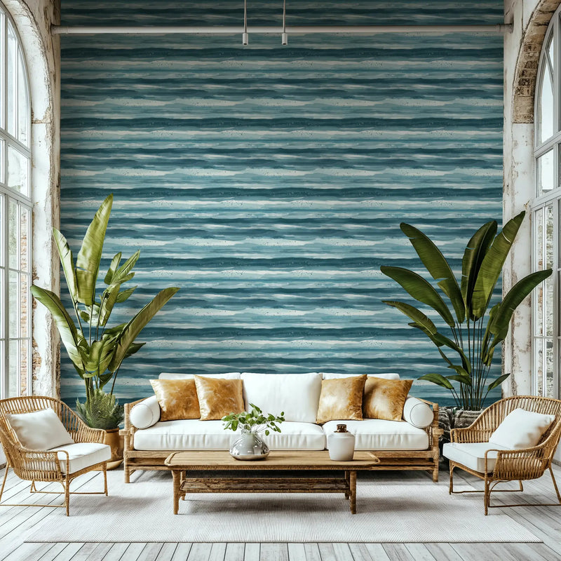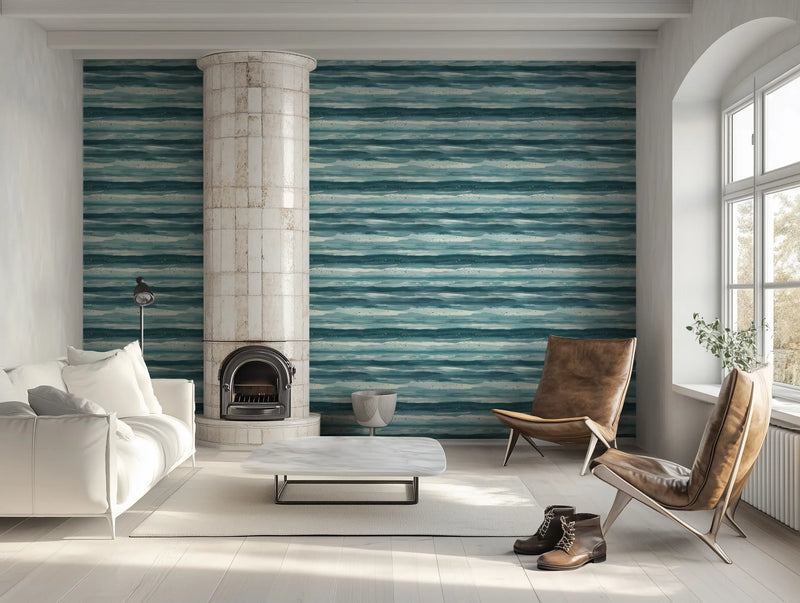 A bold statement in Ocean Palettes, this wallpaper channels the power of a restless sea, bringing movement and contrast into modern interiors.