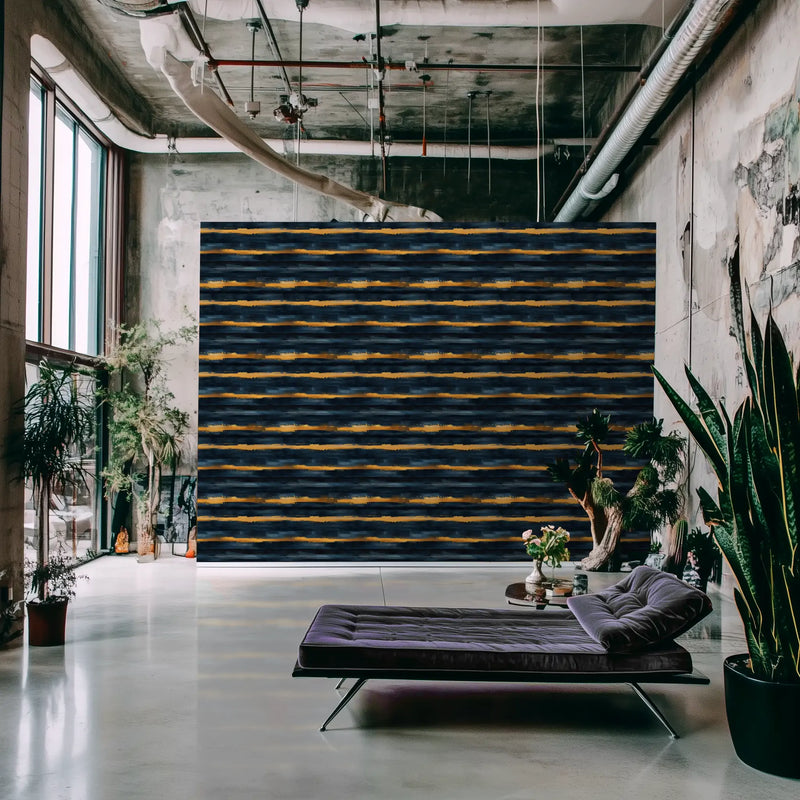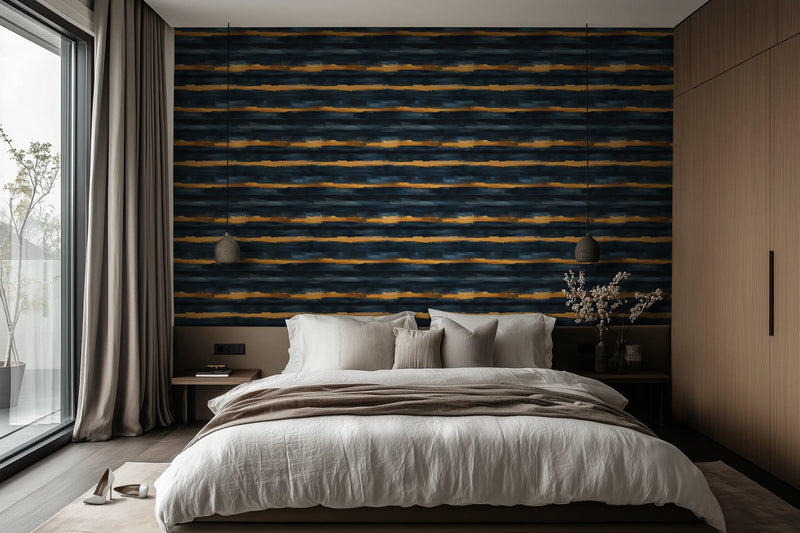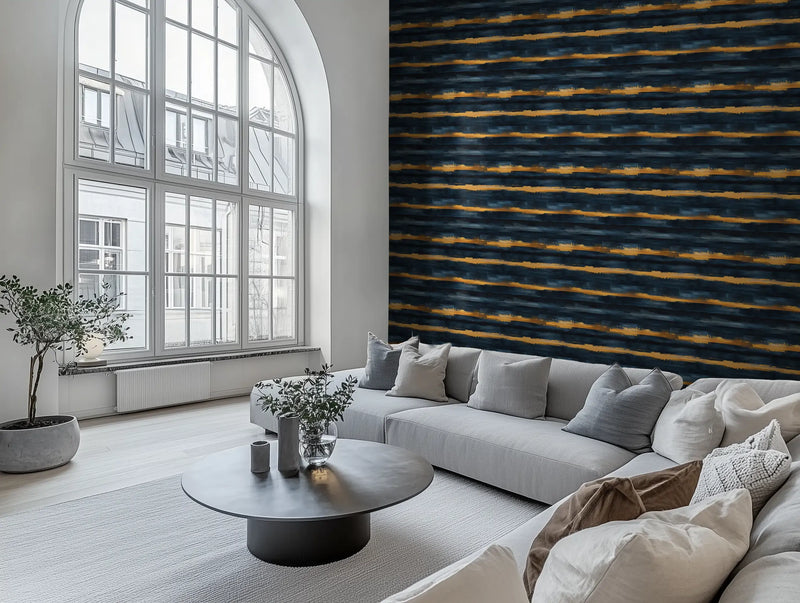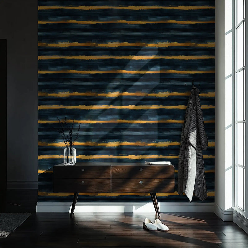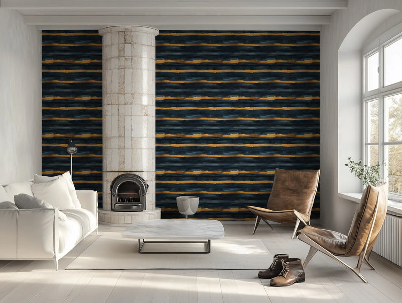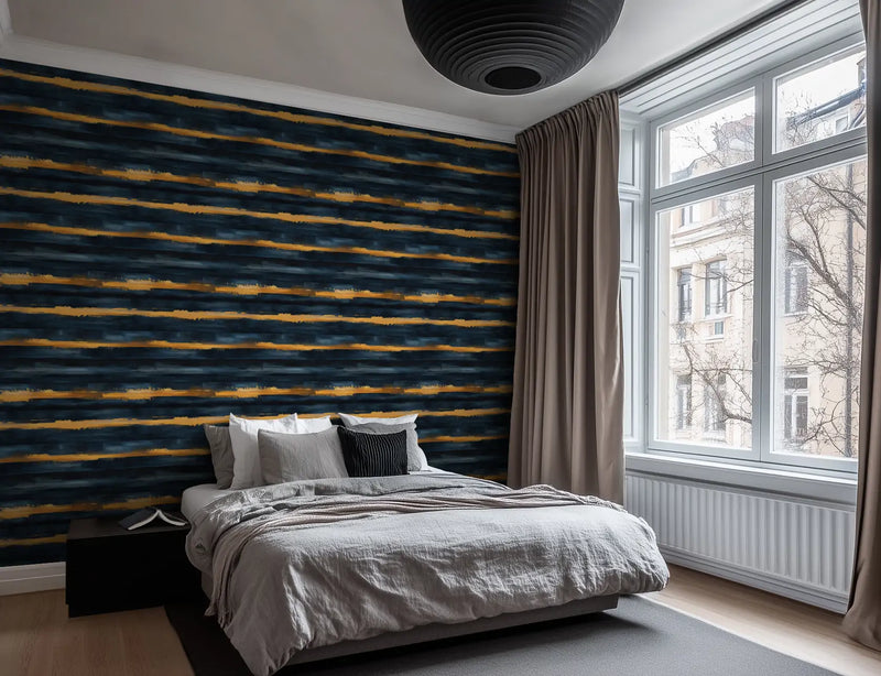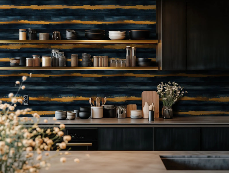 Why it’s great: The bold interplay of gold, deep blue, and soft glow makes this wallpaper a striking focal point, perfect for spaces that embrace drama and elegance.
