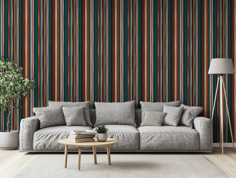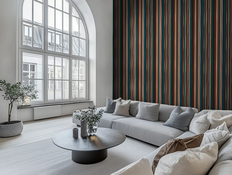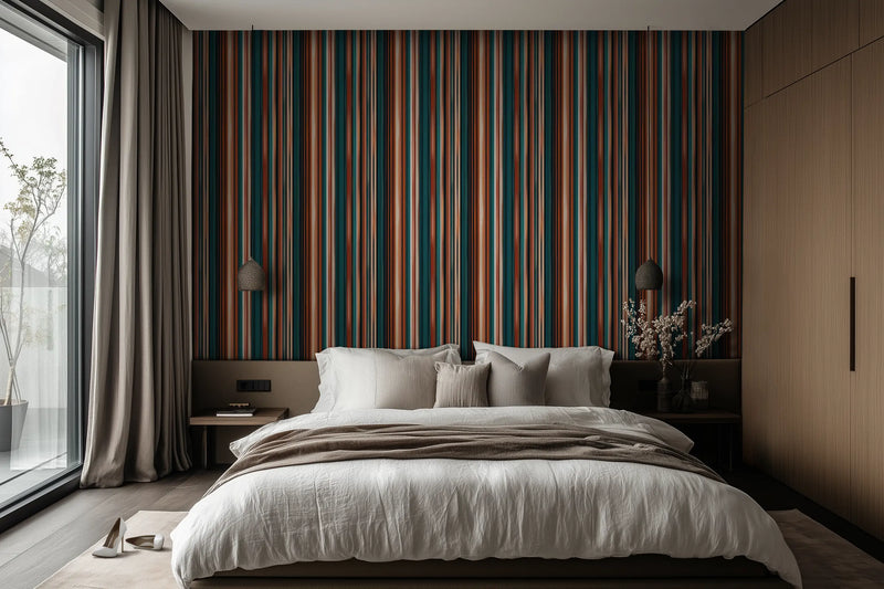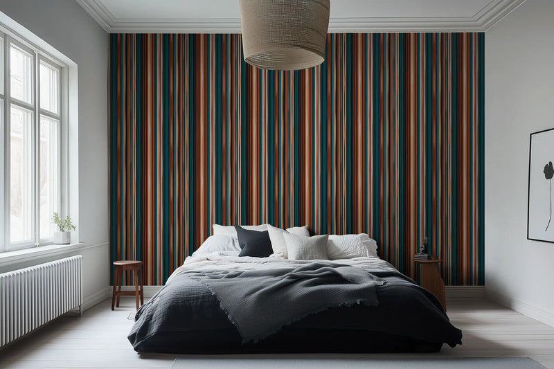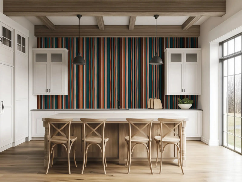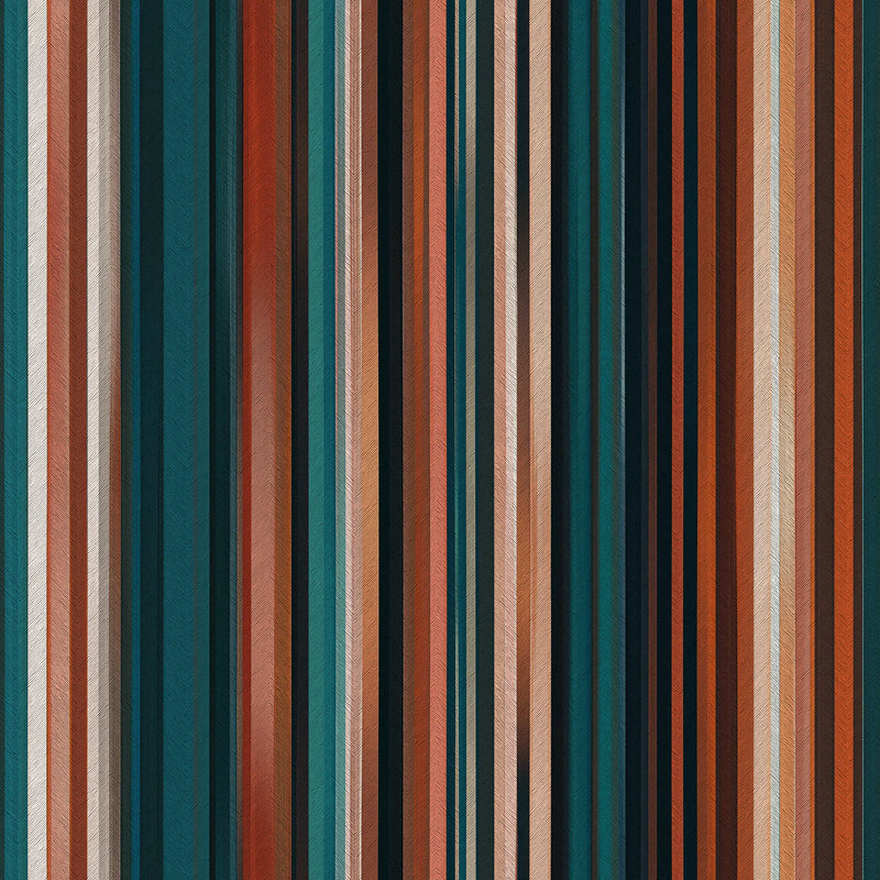 A journey along the ancient spice routes, where merchants traded silk, saffron, and hand-dyed textiles. Spice Trail is a layered, painterly stripe wallpaper, blending deep turmeric, midnight blue, and warm clay tones into a rhythmic, free-flowing pattern.