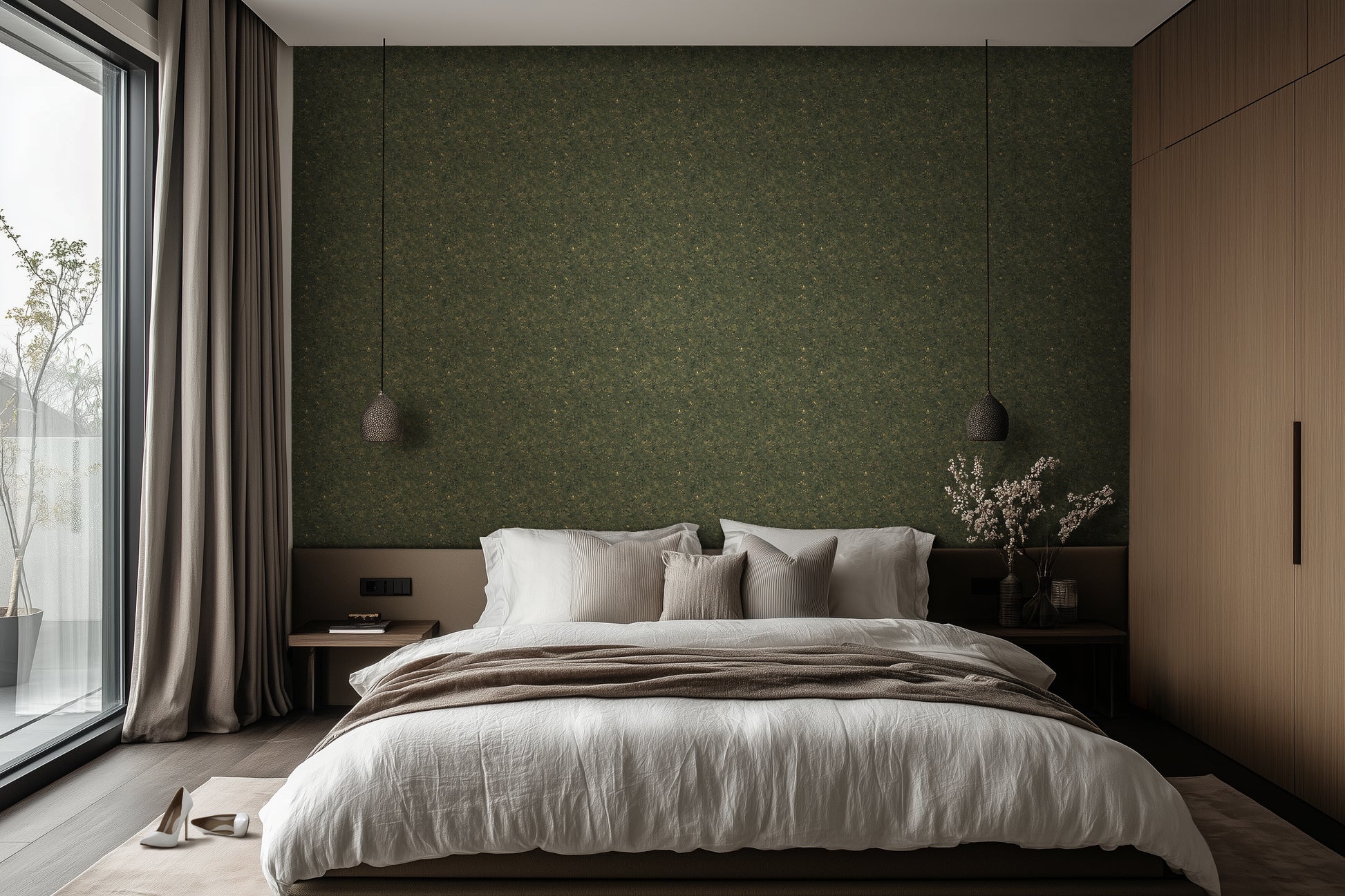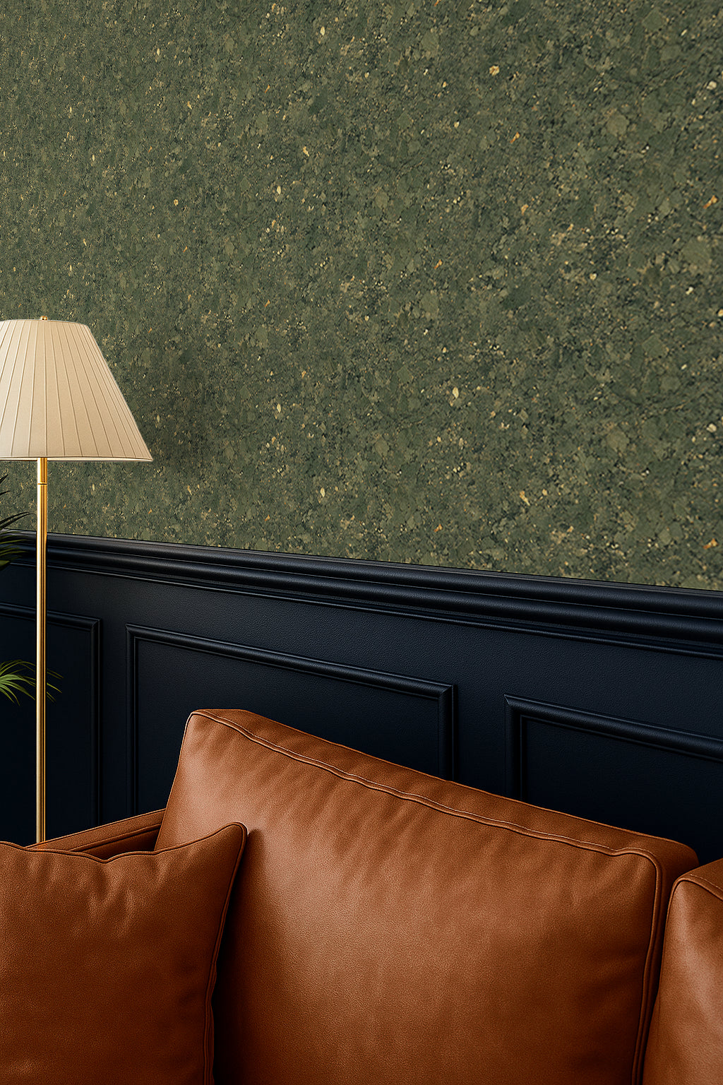 Mossbound Cork – Lichen Green with Pale Ochre Flecks brings the earthy depth of moss and stone to your walls — a deep green surface flecked with warm ochre for subtle movement and texture. It feels grounded, organic, and quietly luxurious, perfect for accent walls that want nature’s calm without losing sophistication.