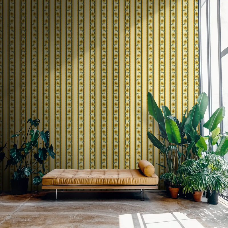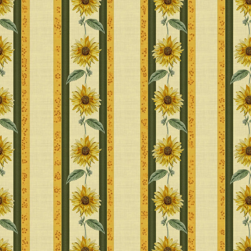 Baskets overflowing with freshly cut sunflowers, the hum of bees in the distance, the scent of warm earth underfoot—Fleur de Soleil embodies the easy elegance of Provence, featuring delicate sunflower motifs intertwined with classic golden and ivory stripes.