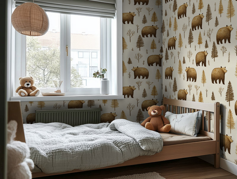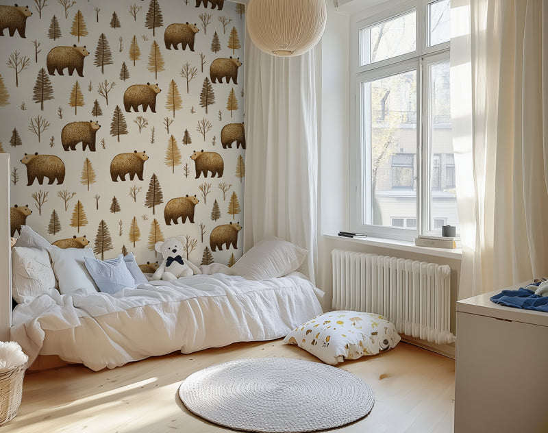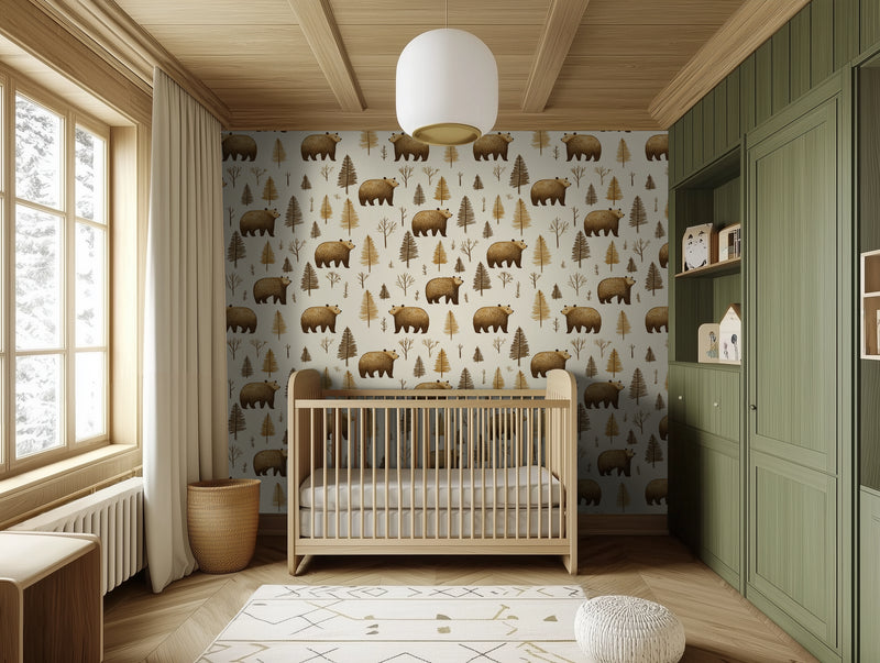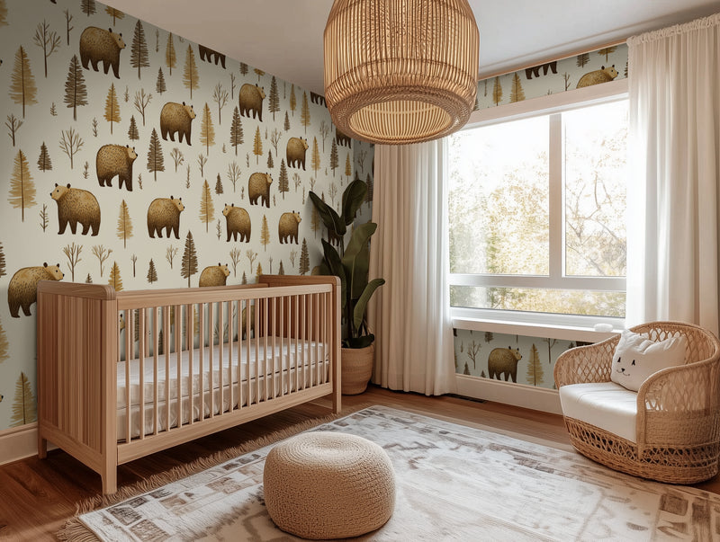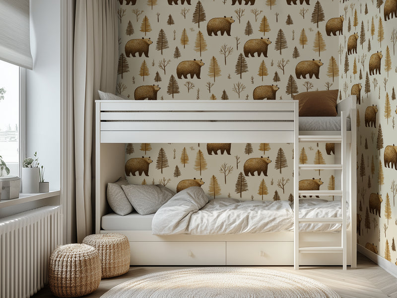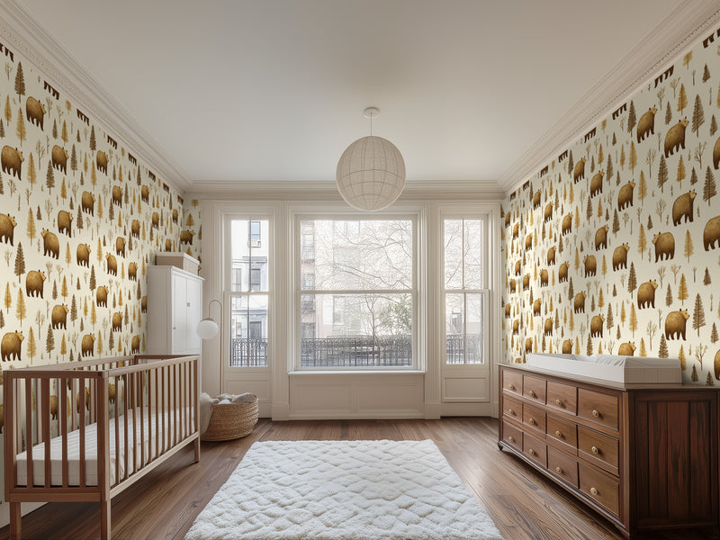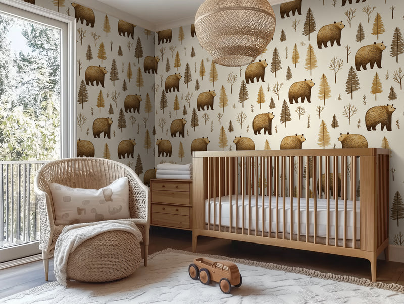 A golden forest full of soft-footed bears. Bear & Timber creates a cozy wilderness where earthy browns, sandy yellows, and warm neutrals come together in a design that feels like fall in the woods—all year round.