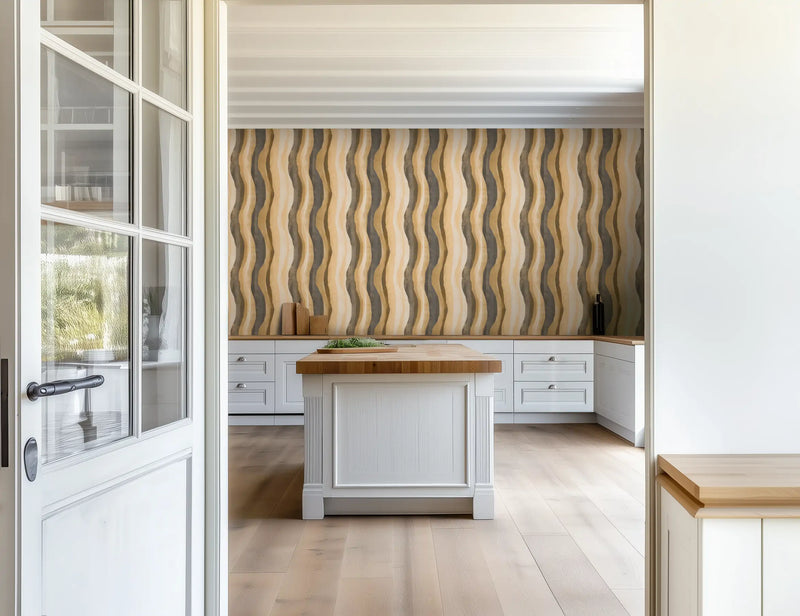 Why it’s great: The natural curvature and deep tonal contrasts make this wallpaper a striking choice for interiors that celebrate organic movement and geological depth.