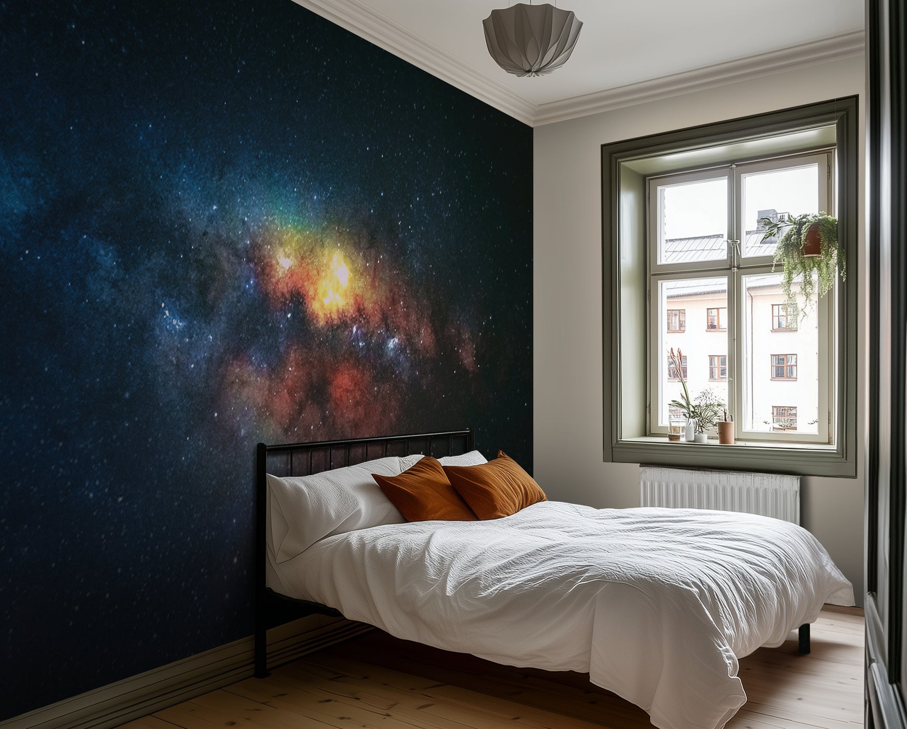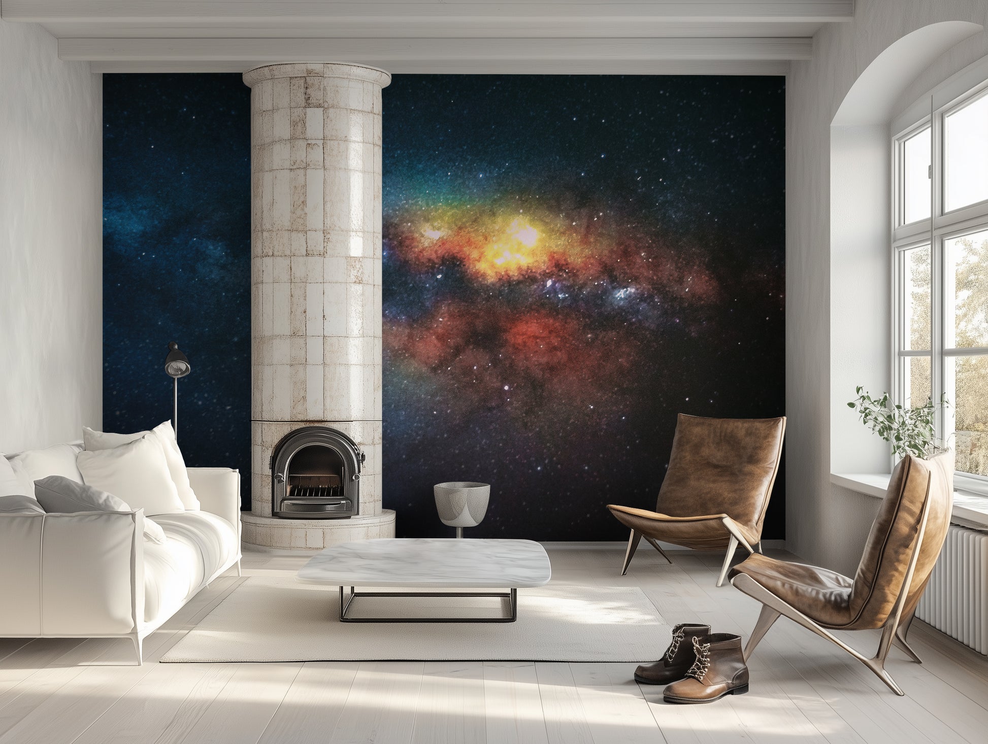 A band of glowing dust cuts through deep space, alive with color and shadow. Darklight Requiem feels like the soundtrack to a star system collapsing—dramatic, mythic, and eerily beautiful. This galaxy mural fills your space with gravity and story, like the opening crawl of your own sci-fi legend.