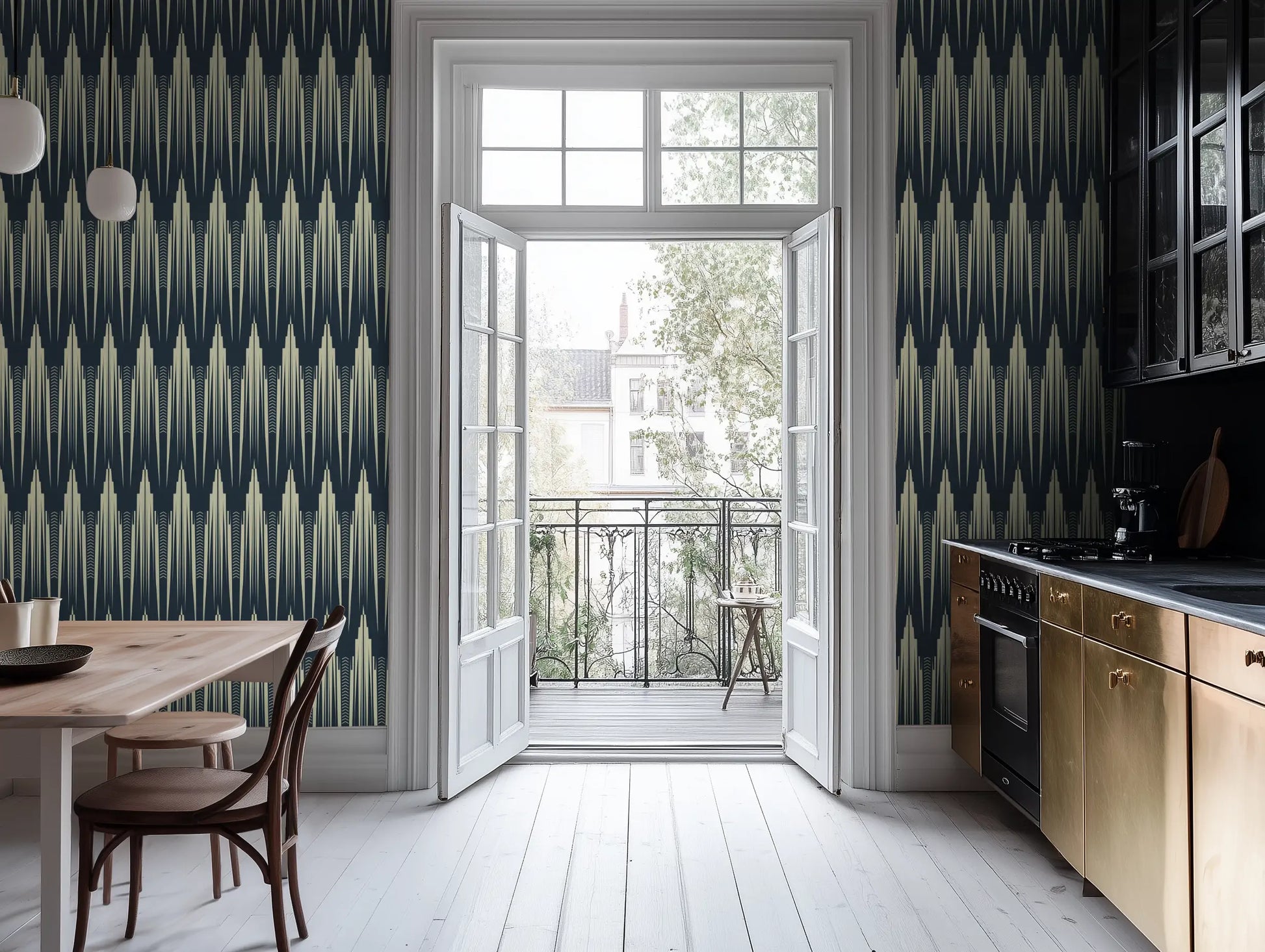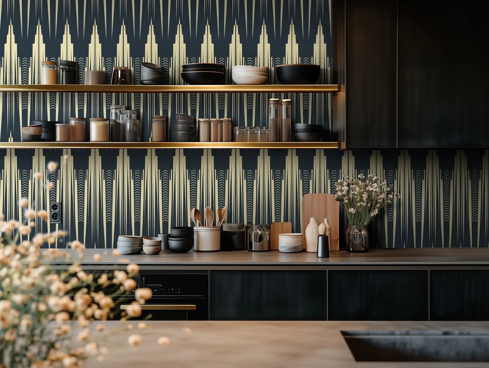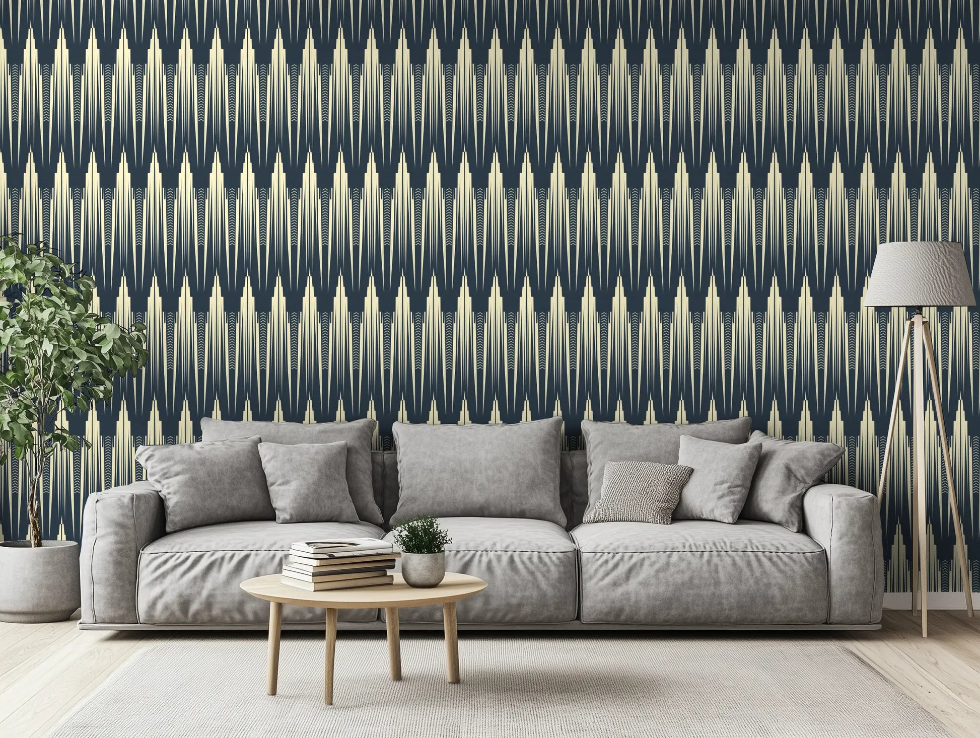 The deep ink-blue silhouettes rise from a warm ivory base, creating a sense of both height and depth, perfect for living rooms, entryways, dining spaces, or a bold, architectural bedroom feature wall. Whether paired with brass fixtures, smoked glass, or rich velvet accents, Empire Reverie brings a sense of grandeur and mystery—because some walls don’t just frame a space, they build a skyline.