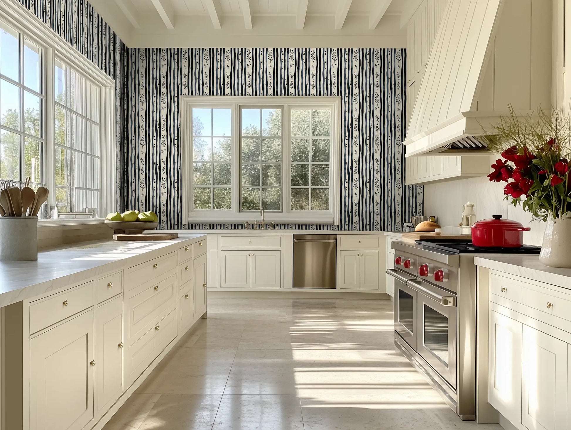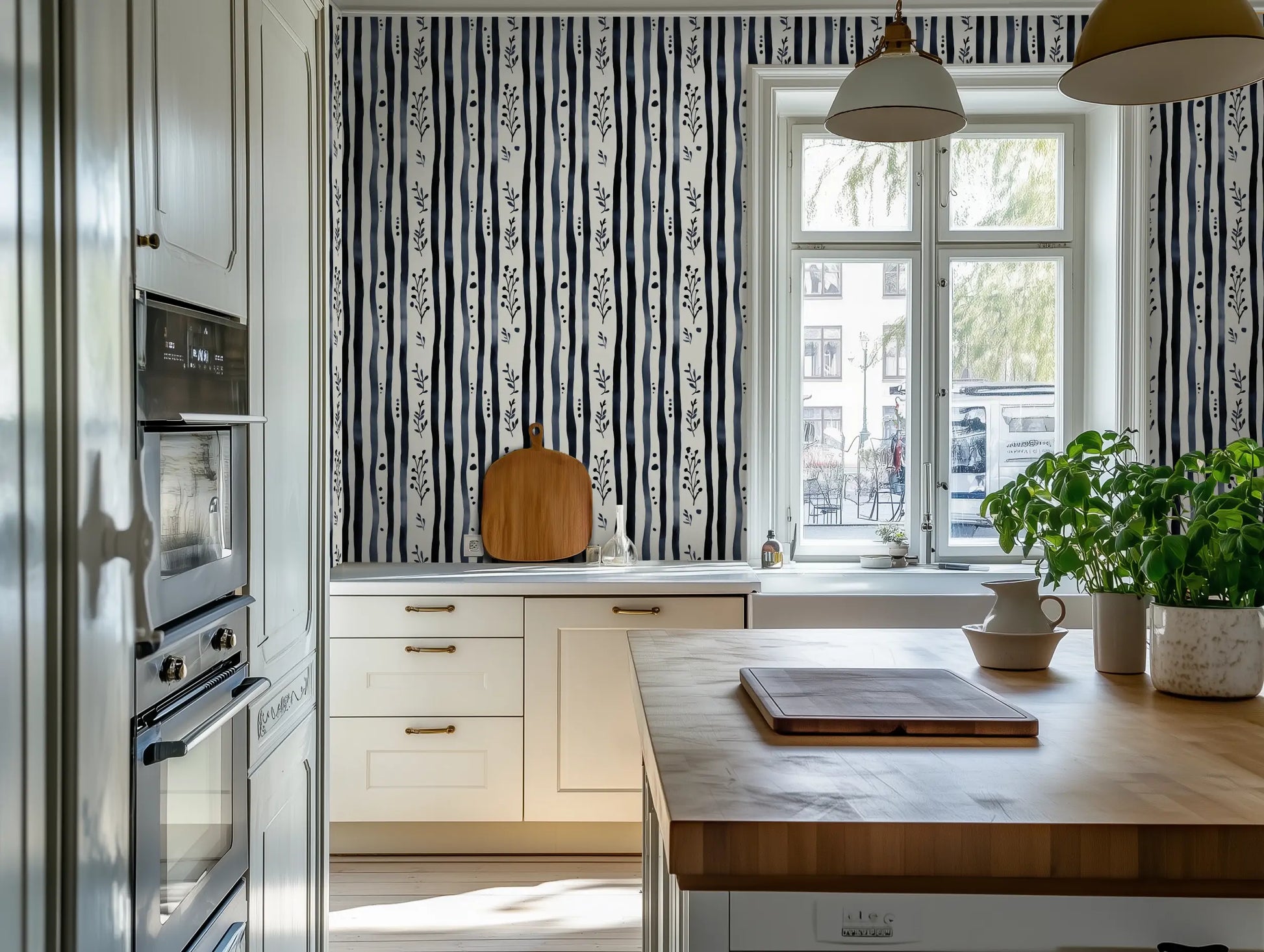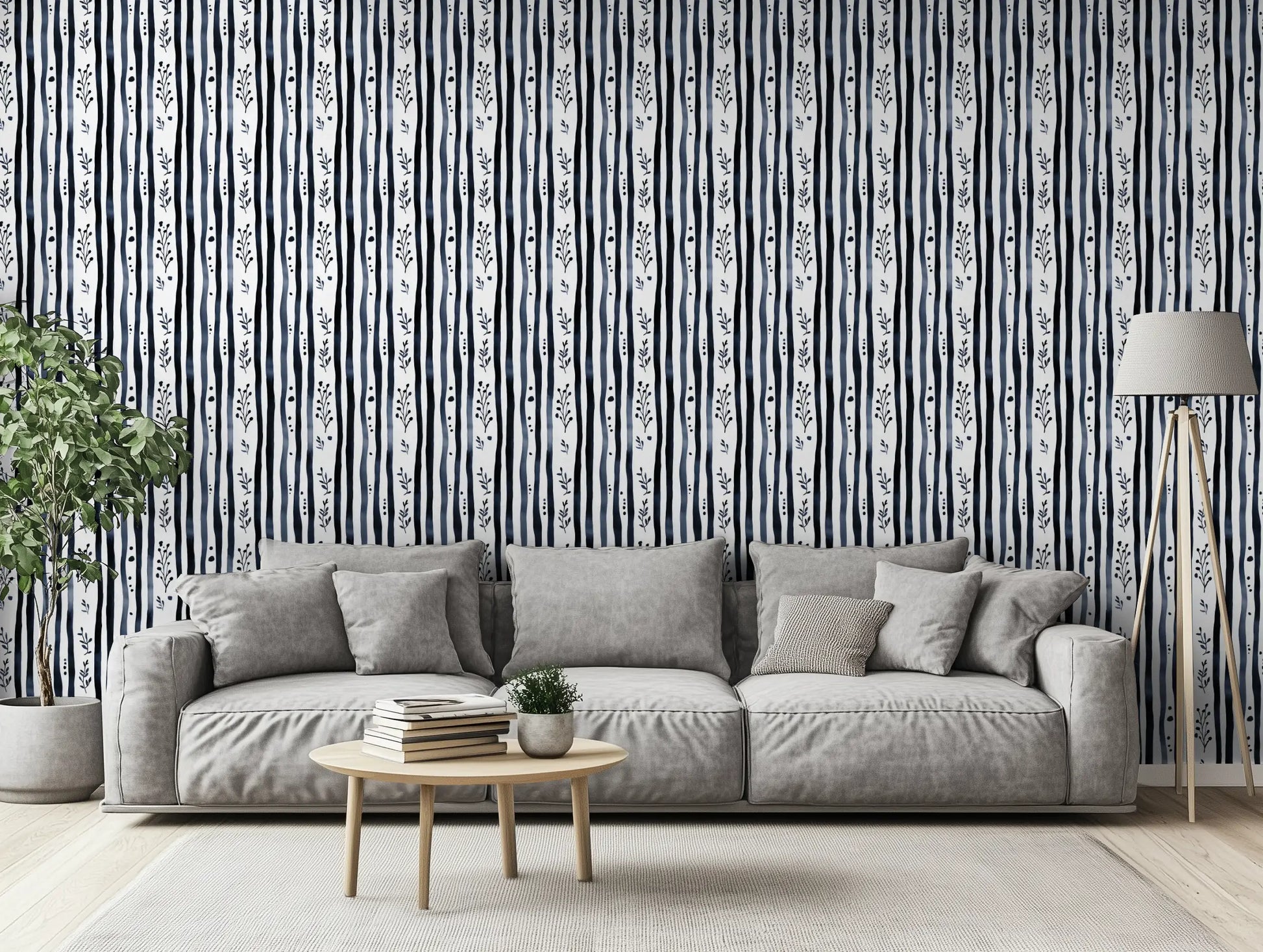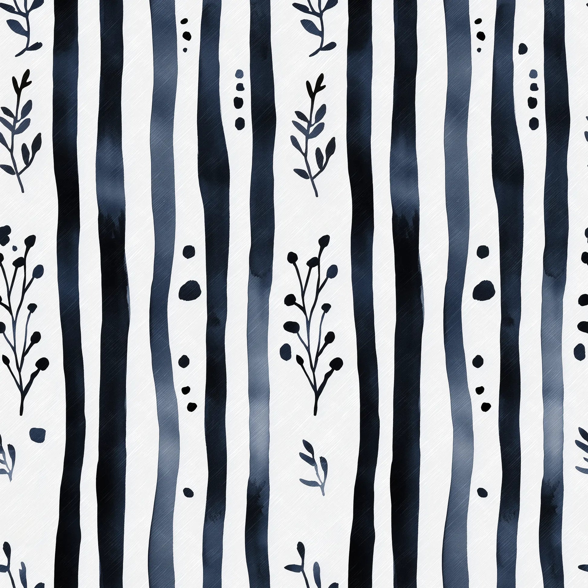 Like the rippling reflection of trees on a still Scandinavian lake, Fjord Whisper blends fluid, hand-painted stripes with delicate botanical details, creating a pattern that feels both serene and alive. The deep indigo brushstrokes dance across a crisp white backdrop, evoking the rhythm of the Nordic wilderness—where nature is both untamed and effortlessly elegant.