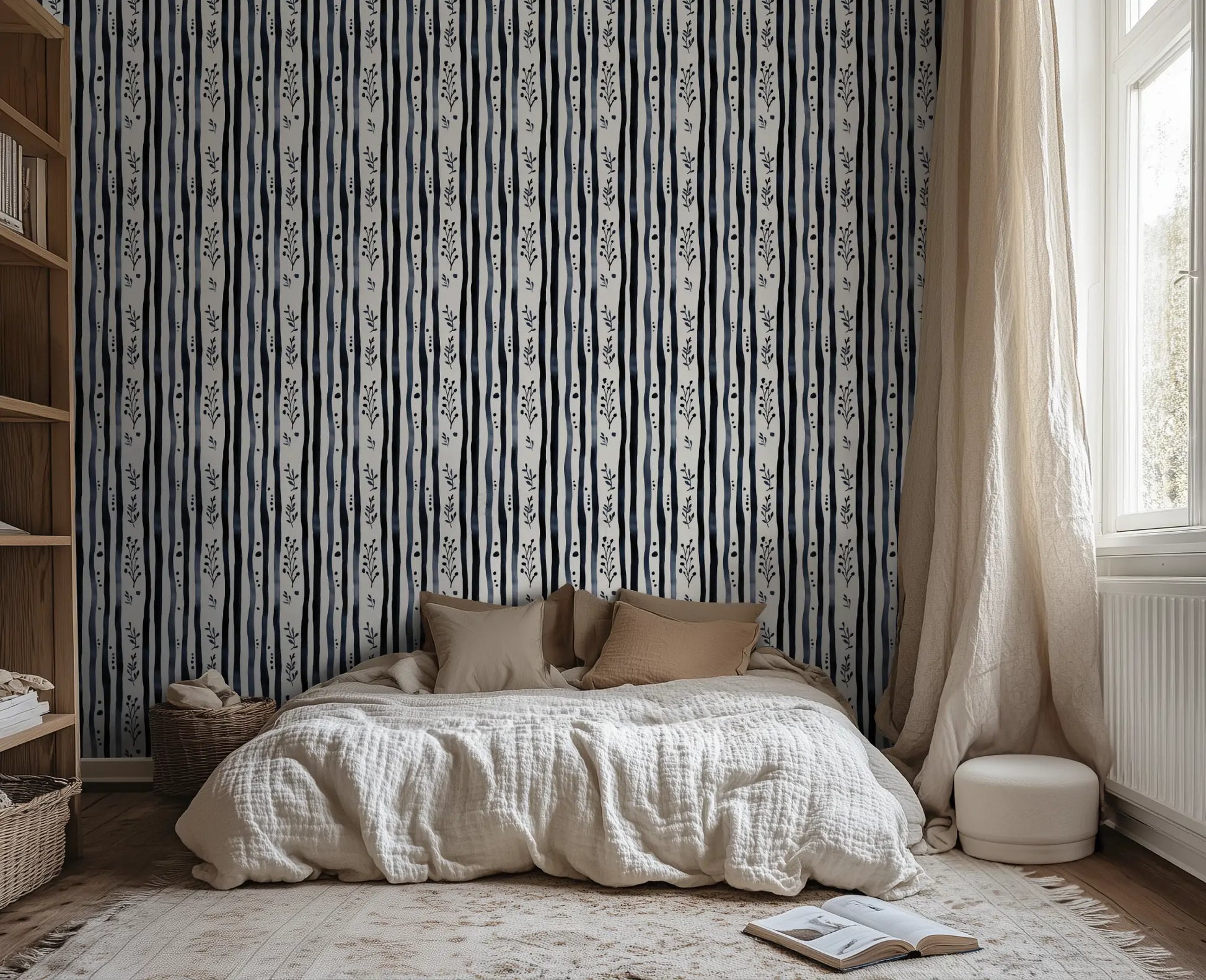 Perfect for bedrooms, cozy reading nooks, or minimalist living spaces, this wallpaper adds a touch of organic movement and subtle storytelling to any room. Pair it with light wood, soft textiles, and ceramic accents for a look that channels modern Scandinavian charm with a whisper of the wild.