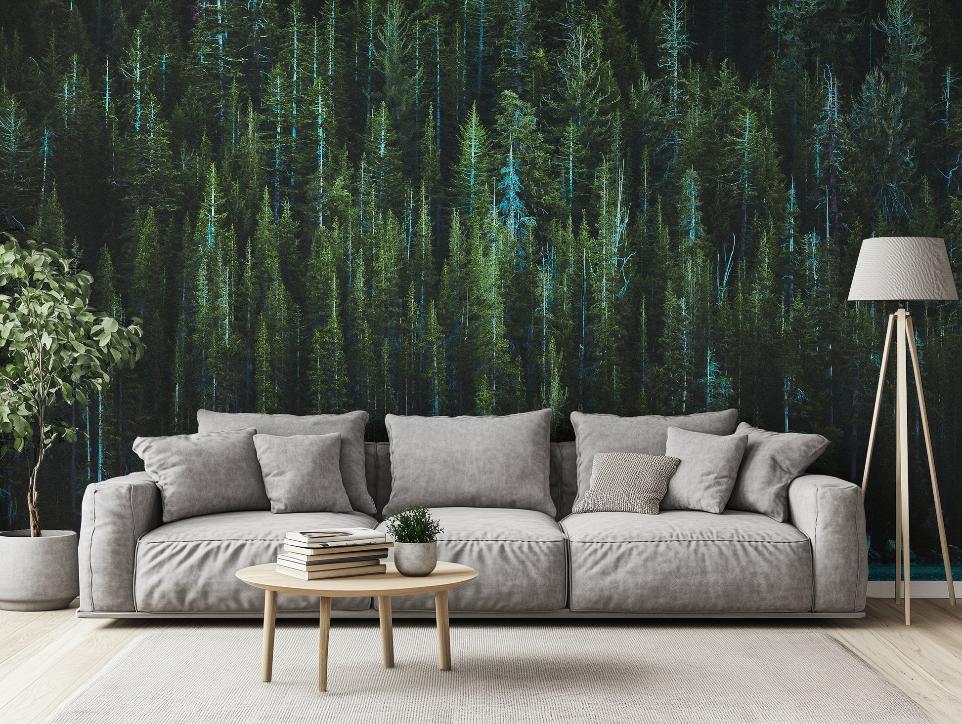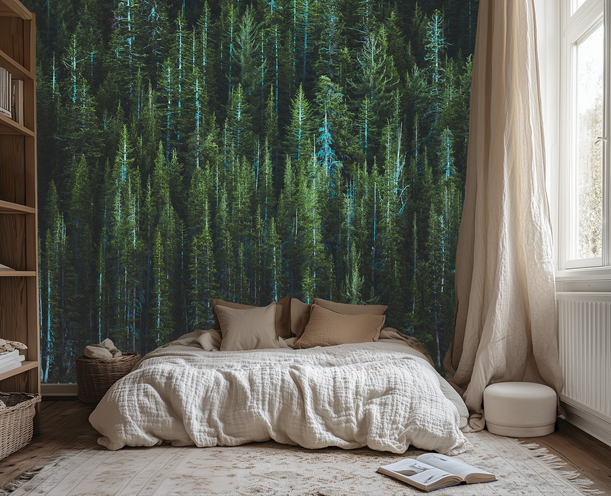 Why it’s great: This immersive tree wallpaper brings verticality and depth to tall walls, staircases, or cozy corners wrapped in wood and tone.