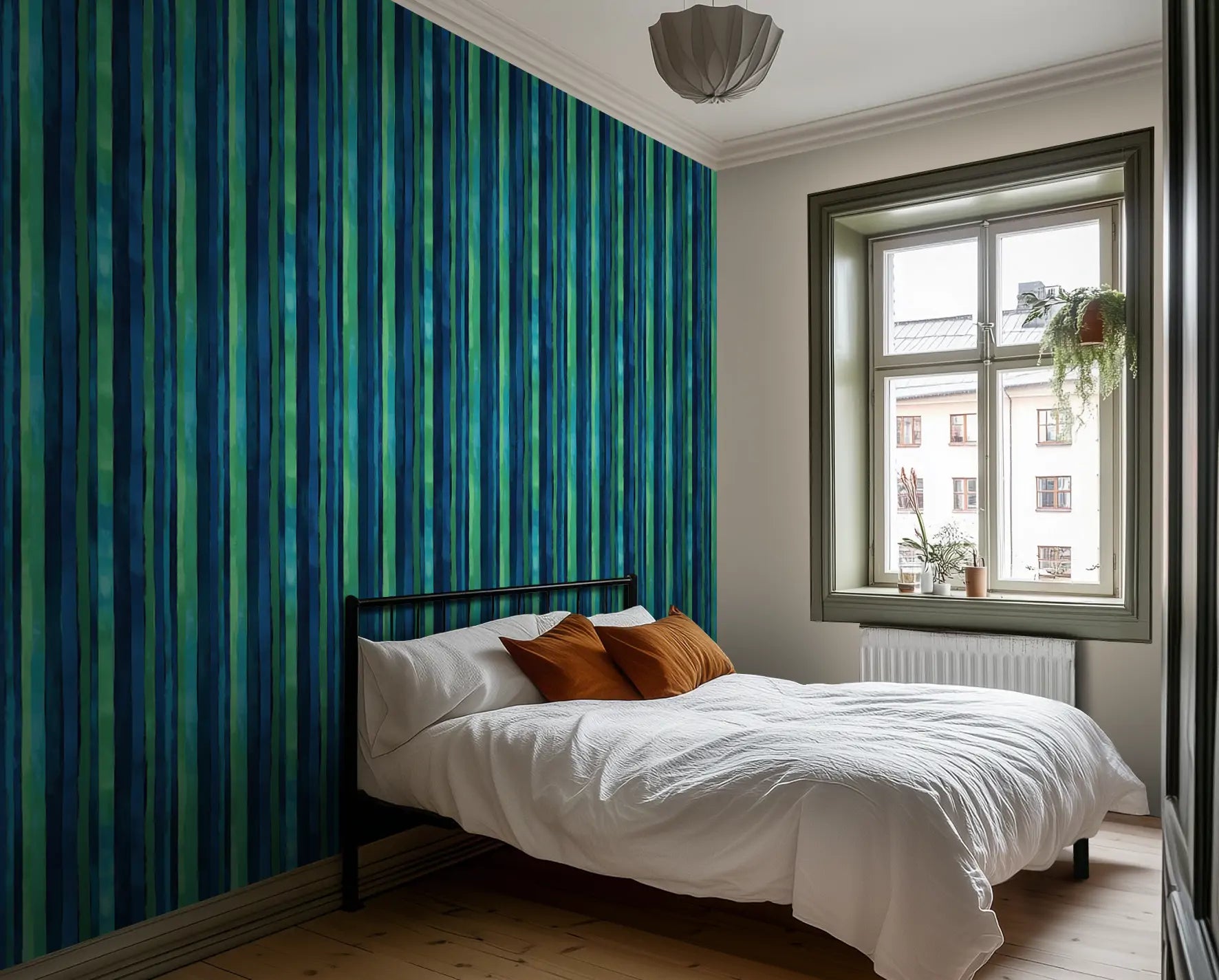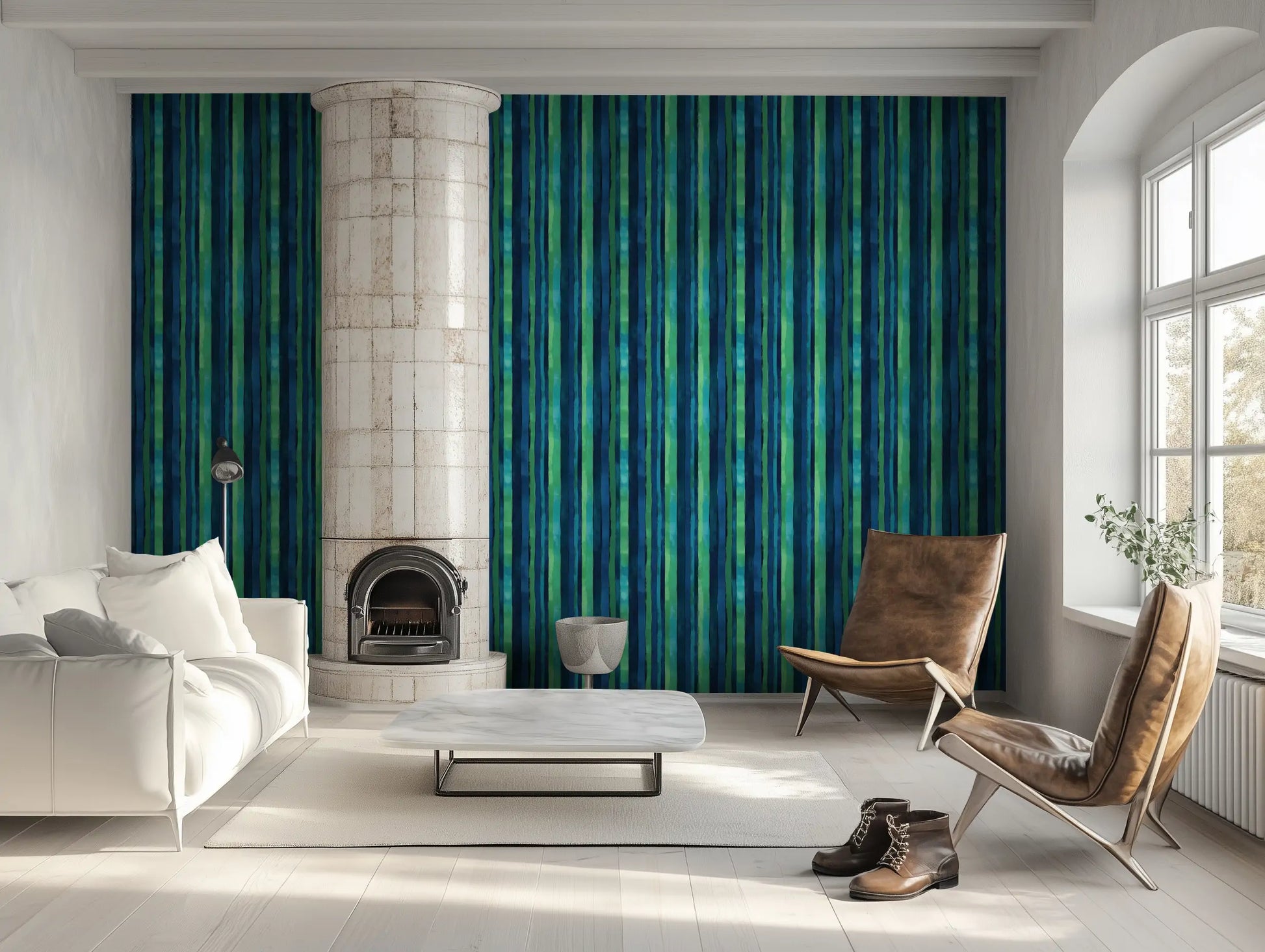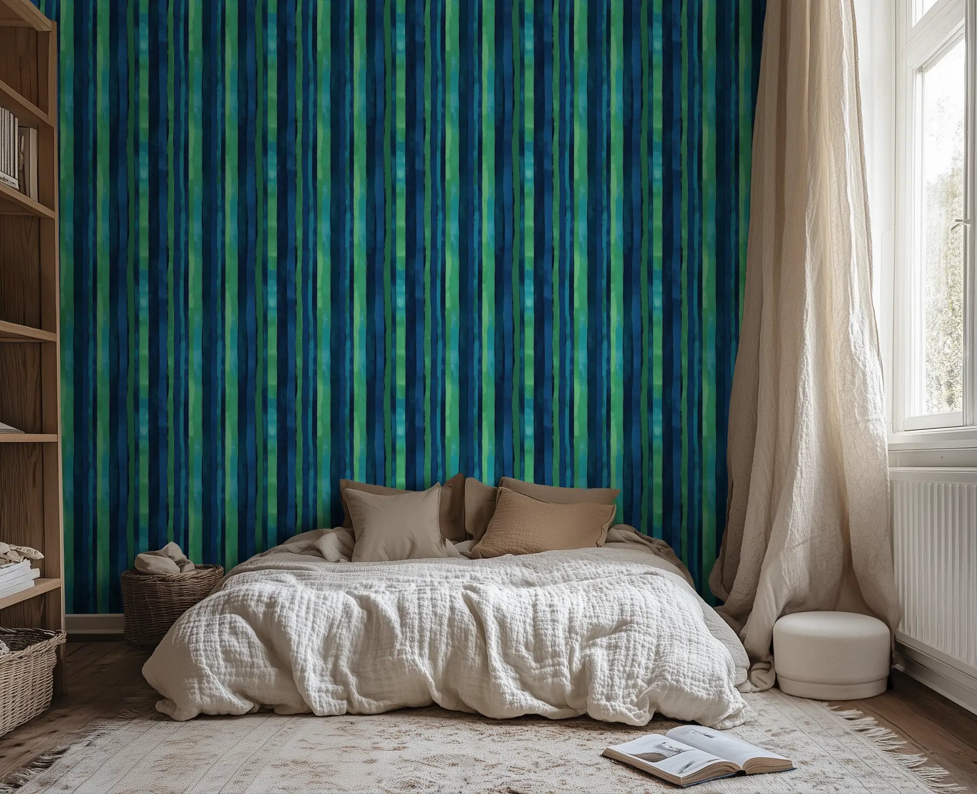 Why it’s great: The organic variation in stripe width and the interplay of bold and diffused tones create a balance of structure and fluidity, making this wallpaper both bold and meditative.