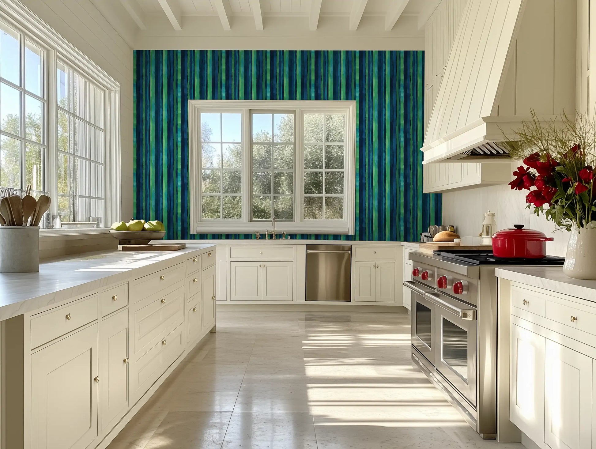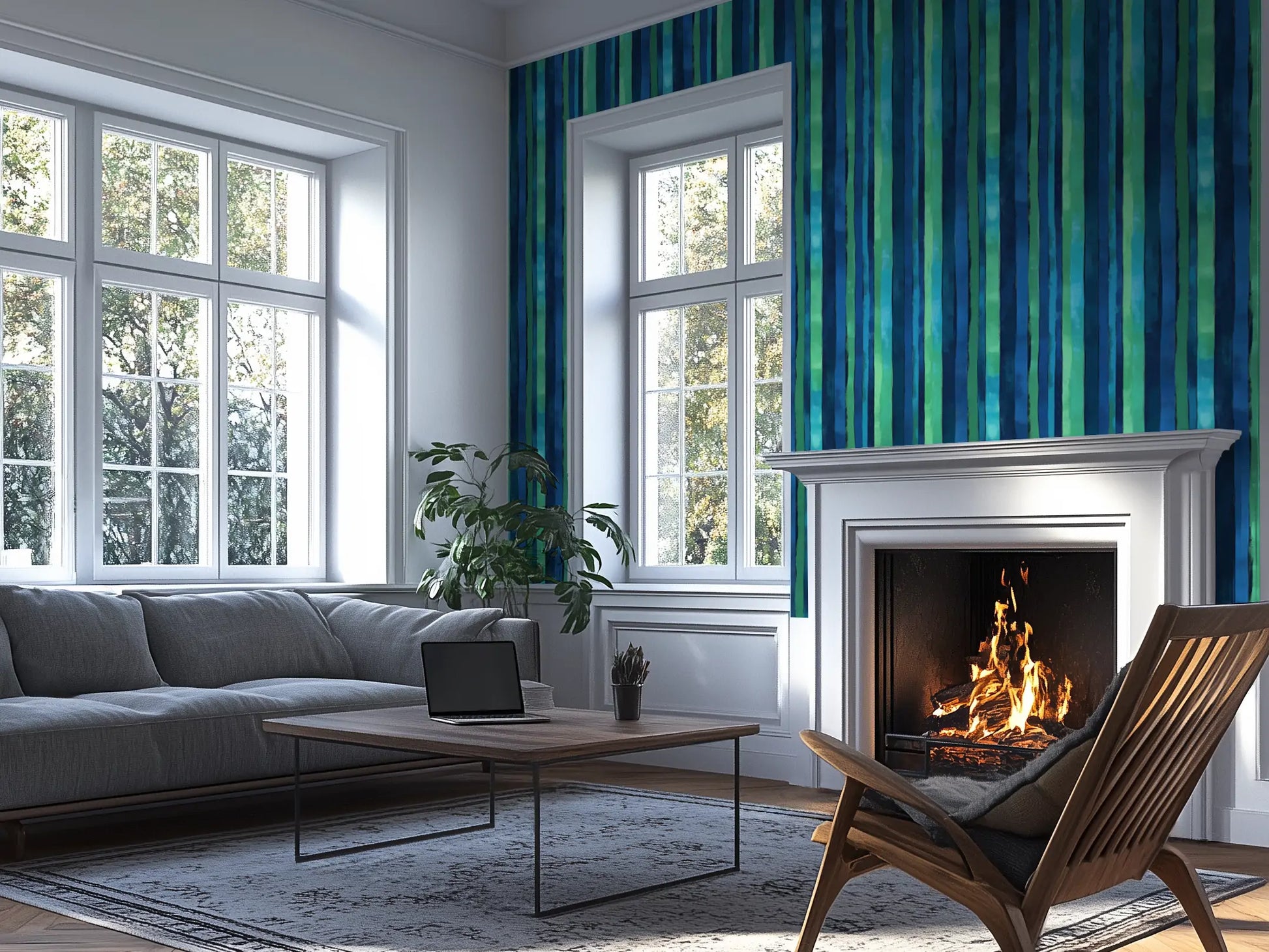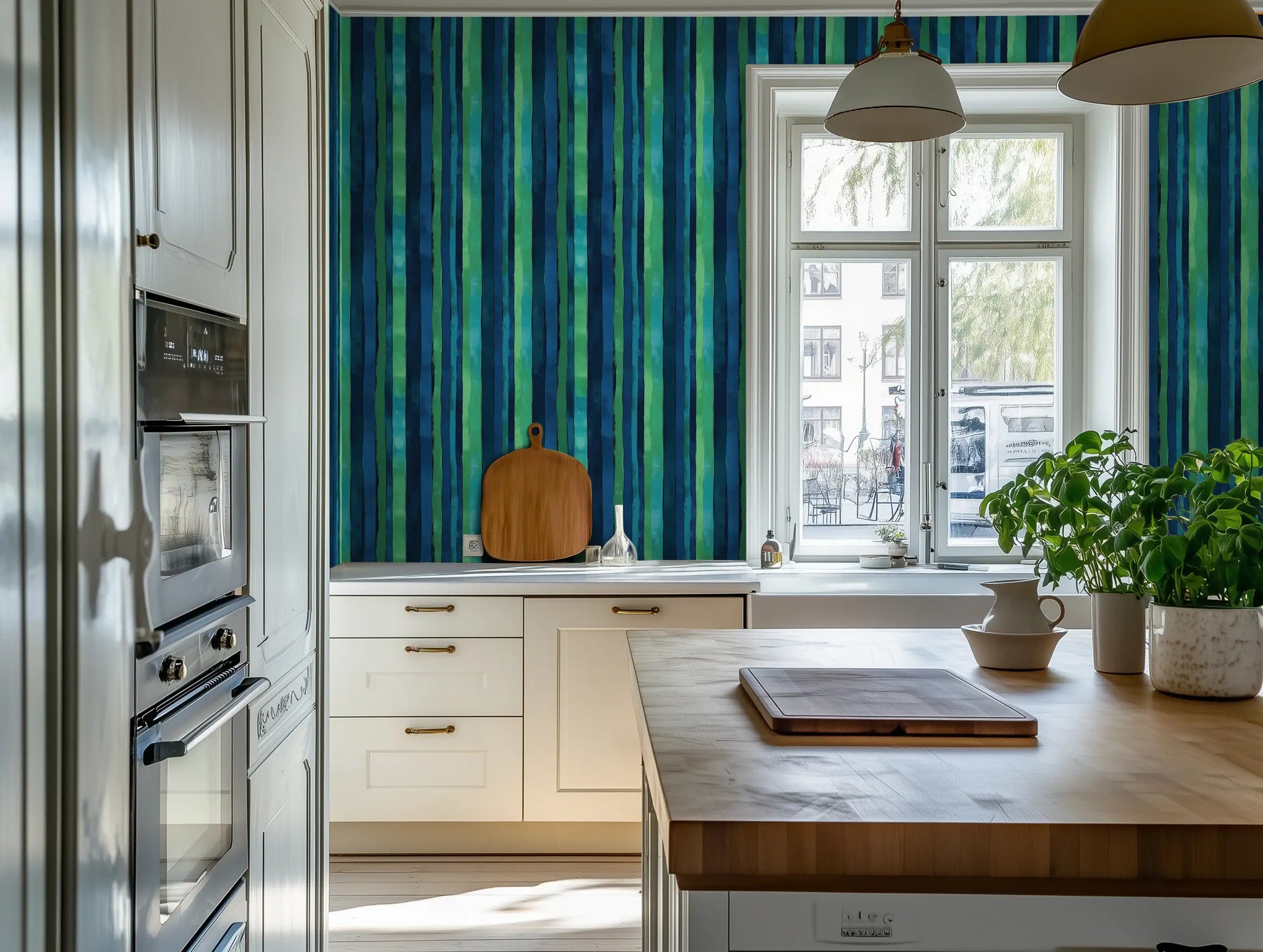 Why it’s great: The organic variation in stripe width and the interplay of bold and diffused tones create a balance of structure and fluidity, making this wallpaper both bold and meditative.