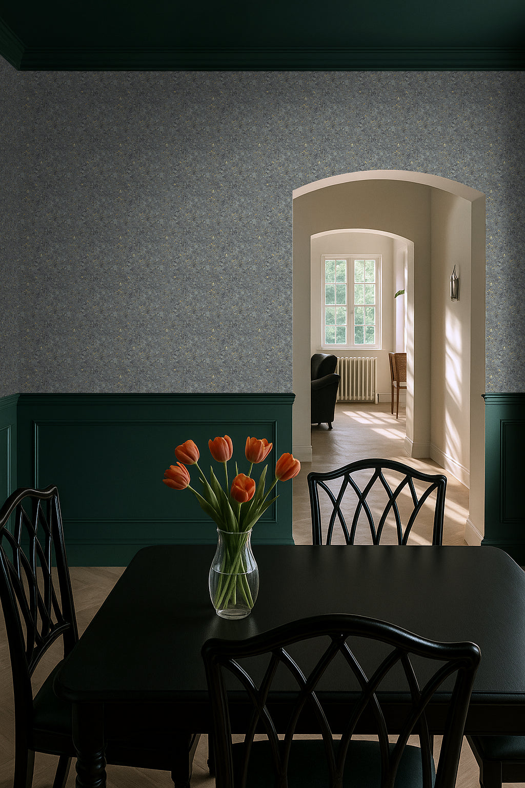 Mossbound Cork – Slate Grey Stone with Gold Fleck combines a deep slate-grey base with muted gold accents, evoking the feel of weathered stone with a whisper of refinement. It’s moody but versatile — perfect for grounding modern interiors in natural calm.