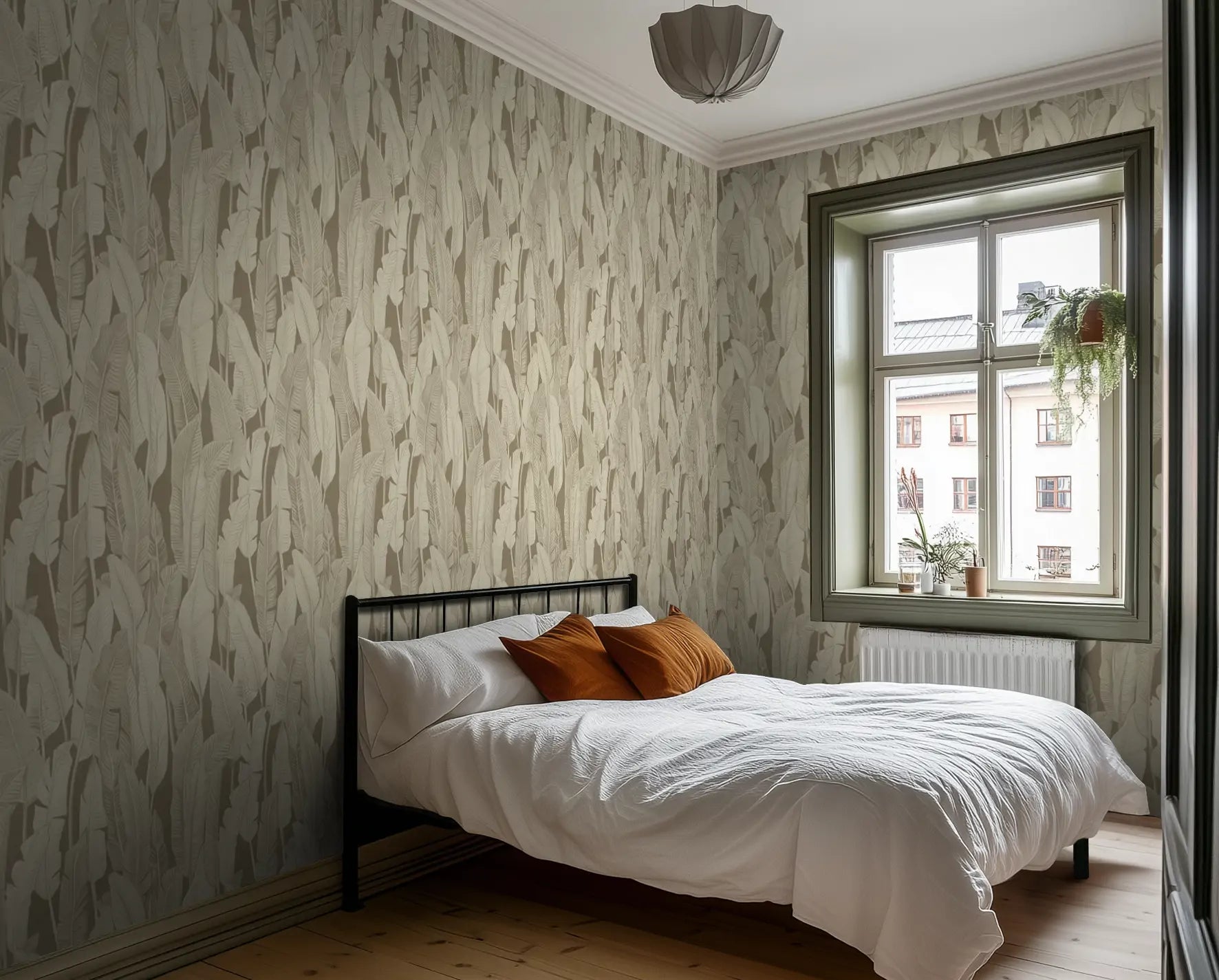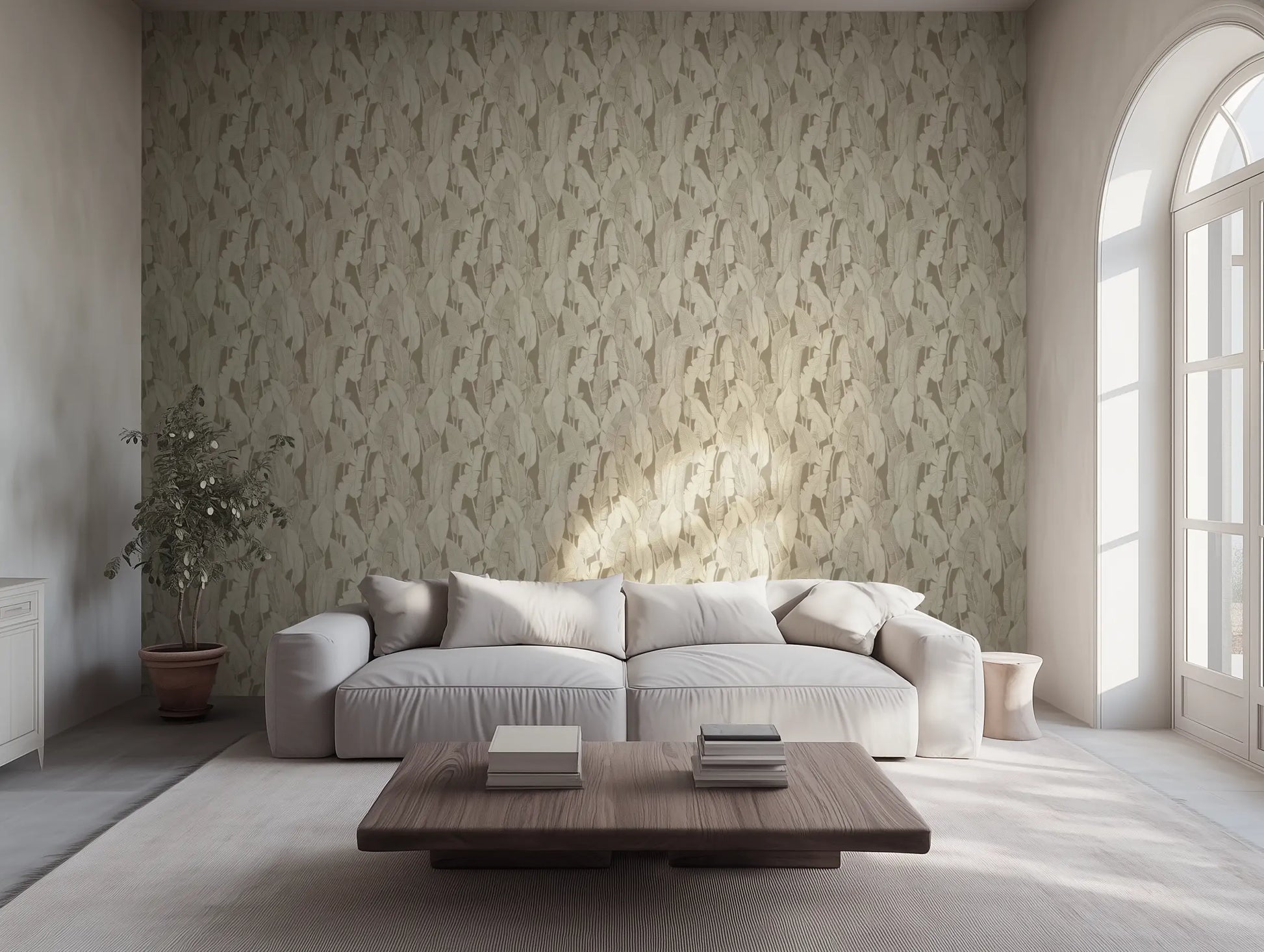 Soft-spoken but impossible to ignore, Palm Whispers is a study in effortless elegance. Delicate banana leaves unfurl in layered tonal neutrals, creating a design that feels like a quiet breeze through a hidden tropical sanctuary. No loud contrasts, no bold statements—just a gentle, organic rhythm that brings depth, texture, and serenity to any space.