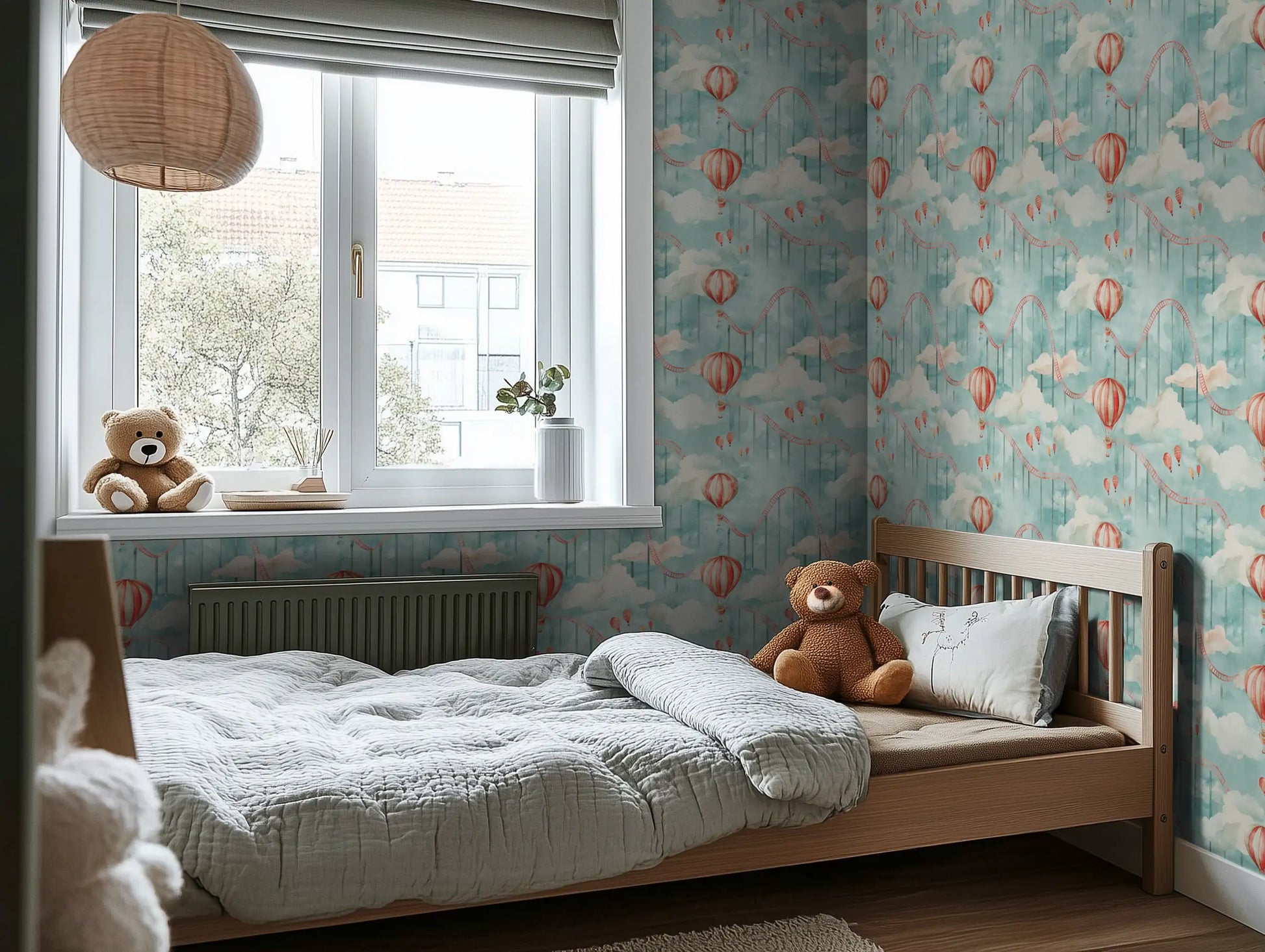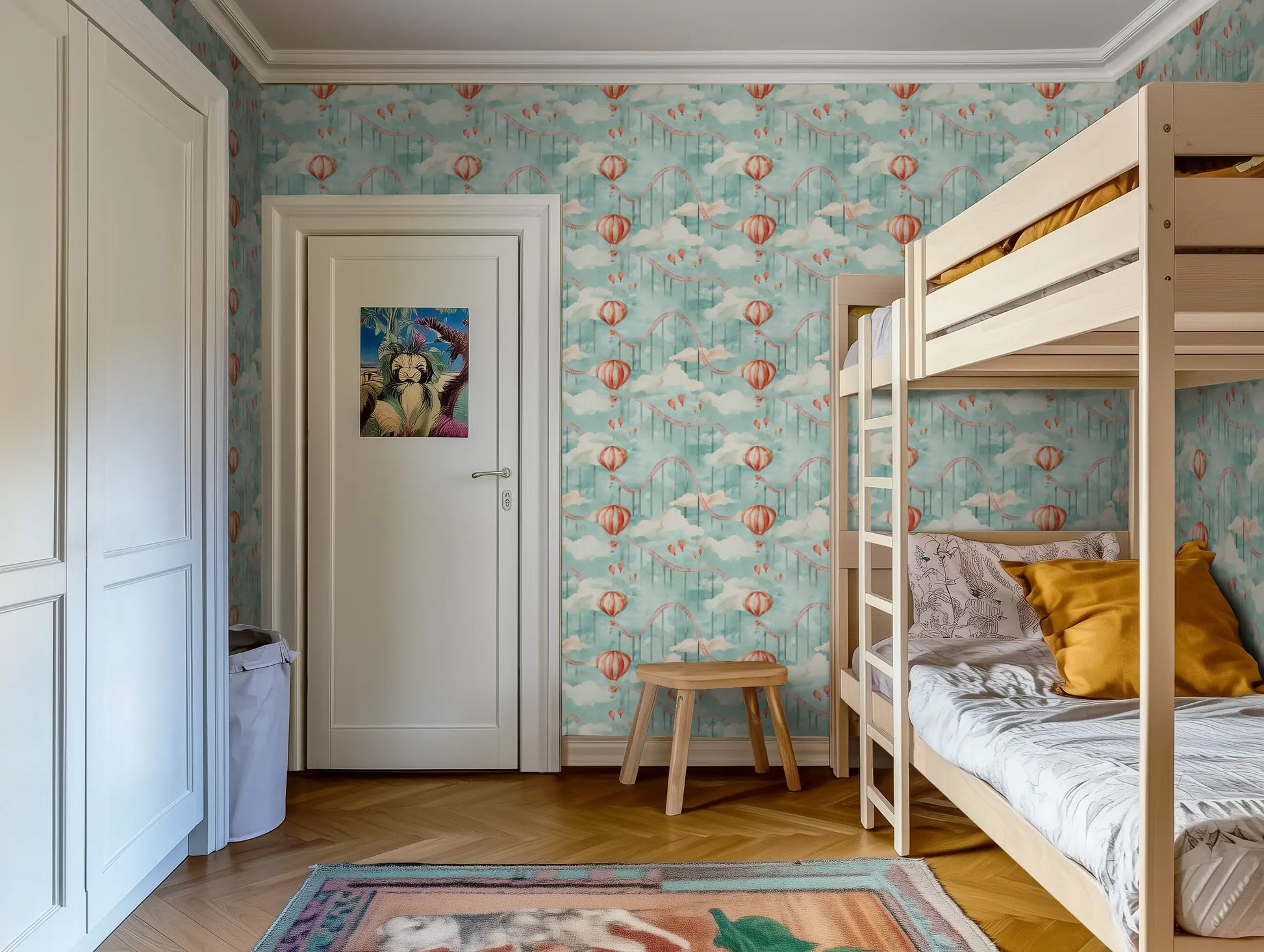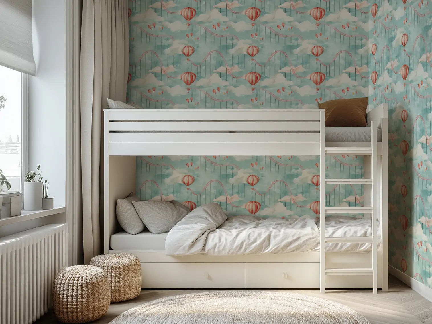 Ideal for kids’ bedrooms, creative play spaces, or nursery walls, this storybook carnival wallpaper pairs effortlessly with soft blues, pastel accents, and vintage-inspired decor, creating a space that feels like the first rush of a rollercoaster ride.