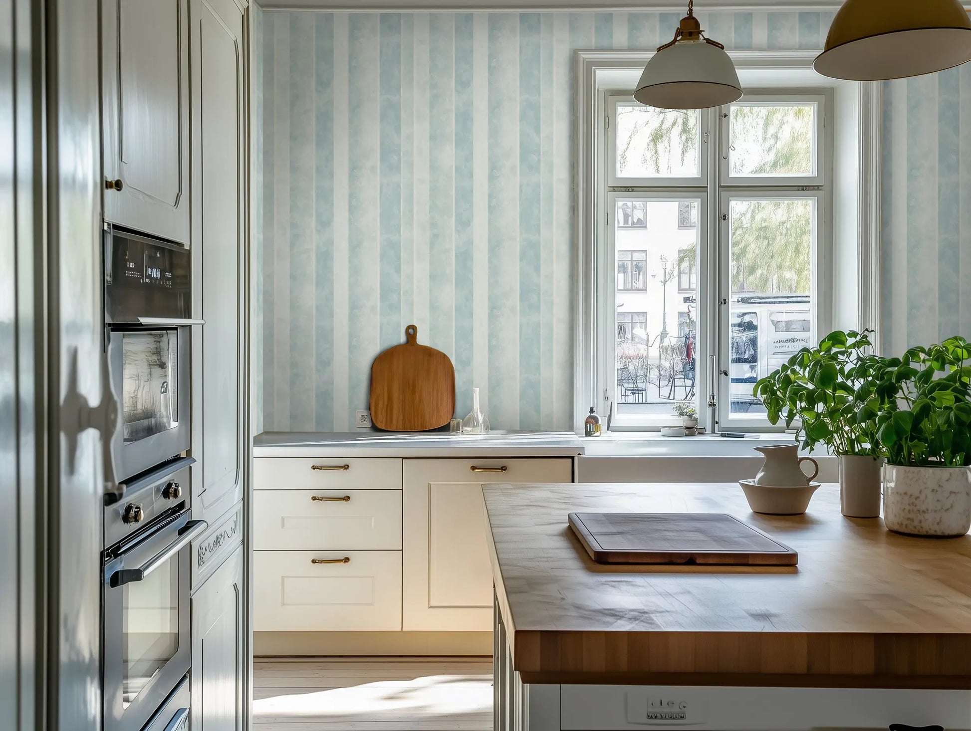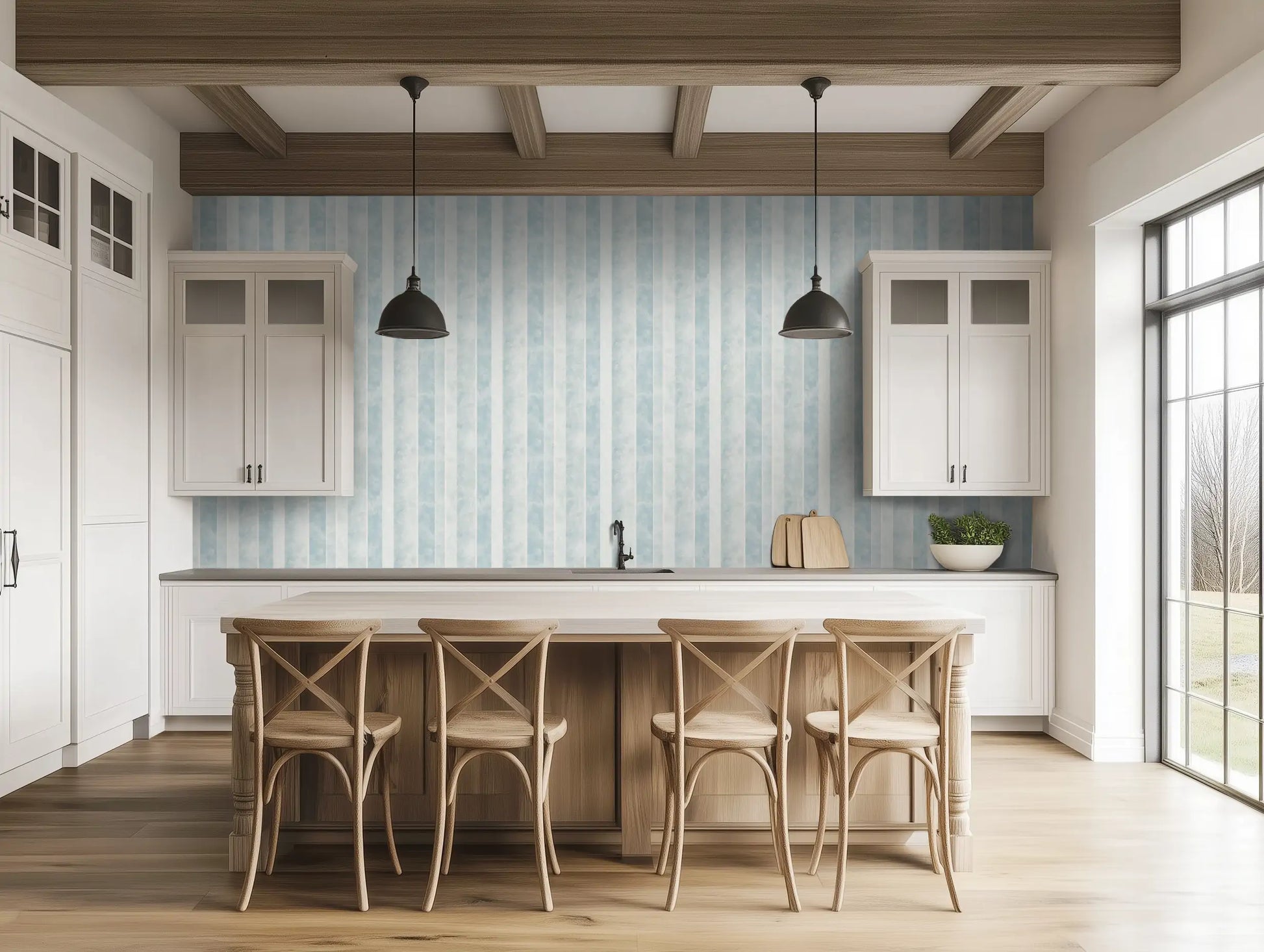 Why it’s great: The airy blend of soft blues and misty whites creates a wallpaper that evokes calm, making it perfect for bedrooms, serene living spaces, and spa environments.