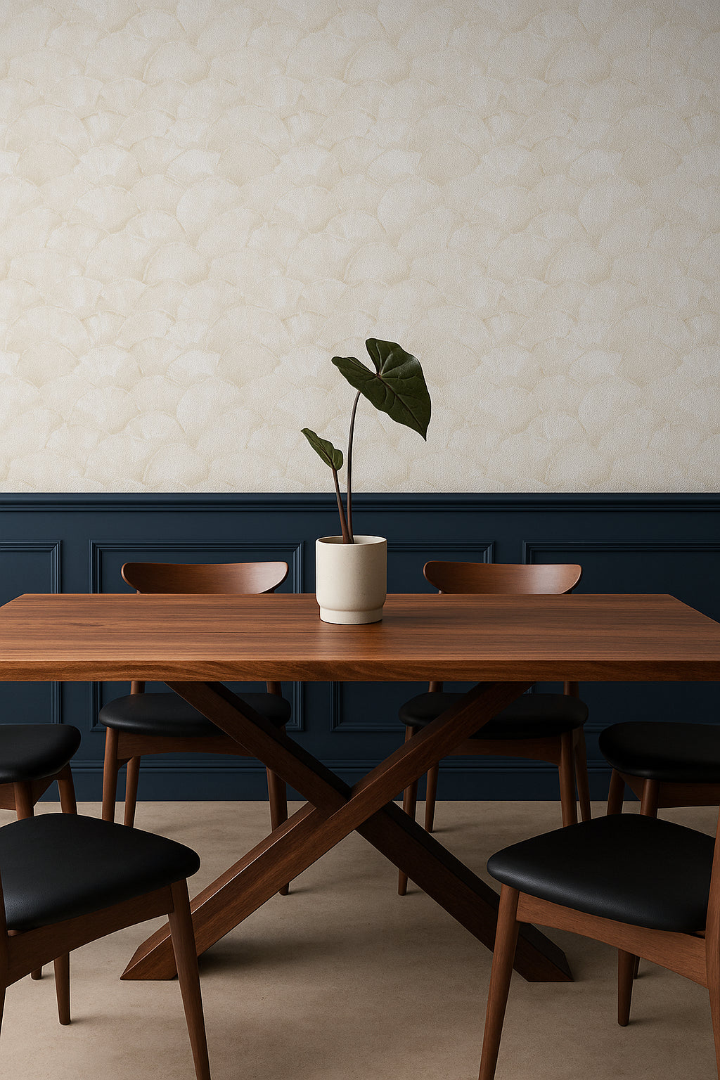 Neutral palettes with organic forms are driving design trends, bridging minimalism and coastal influences. Champagne Shell on Almond Cream delivers that balance of warmth and refinement for modern interiors.