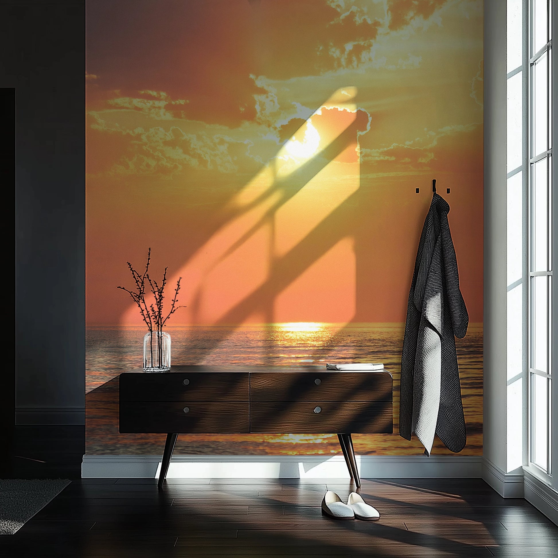 How it fits into current design trends: Sunset romance is a growing aesthetic—this piece taps into emotional minimalism and natural beauty with rich, warm light.