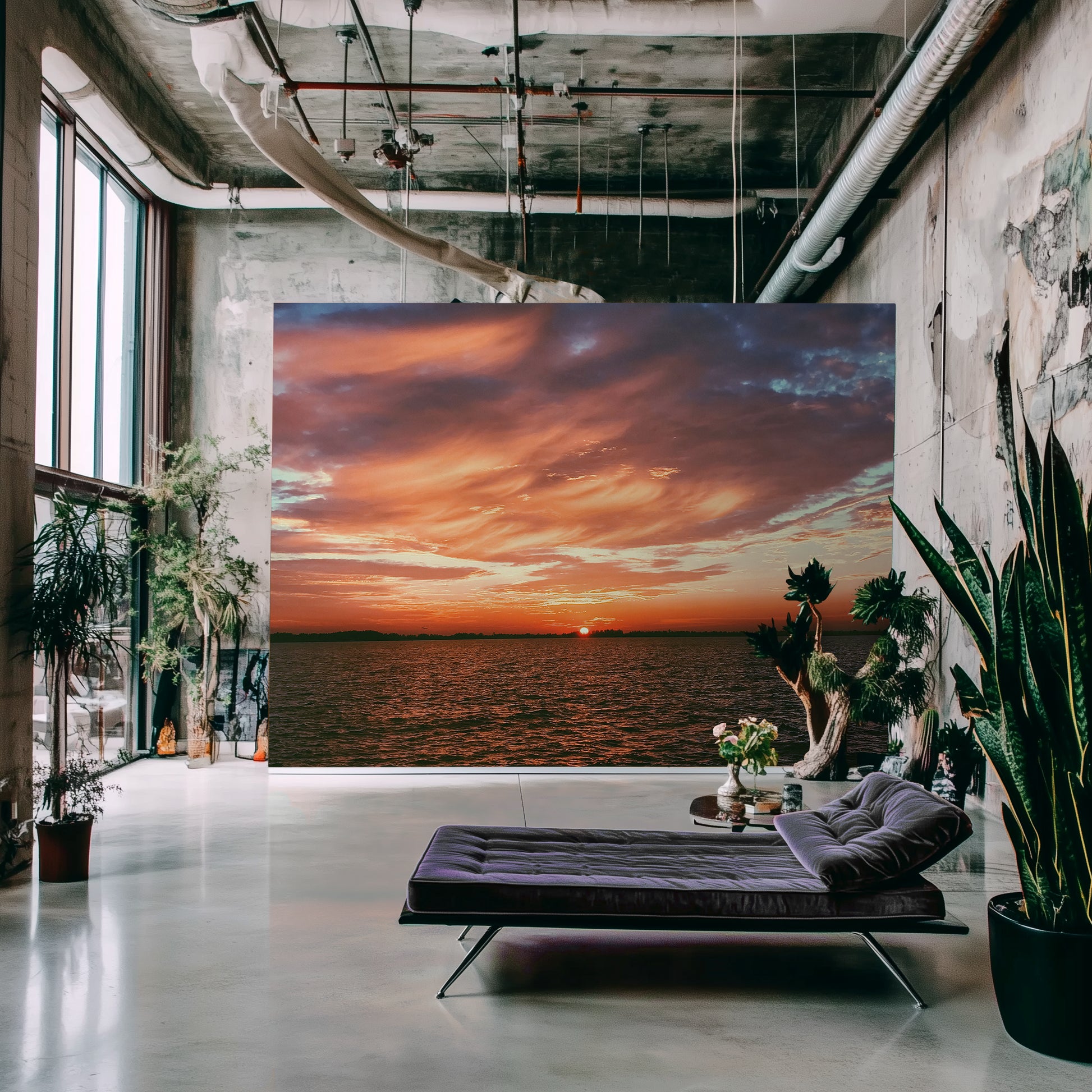 Clouds twist like smoke across a burning sky, and the sea below glows with the memory of day. The Sky Caught Fire Slowly is a sunset at its most dramatic—full of movement, mood, and molten light.